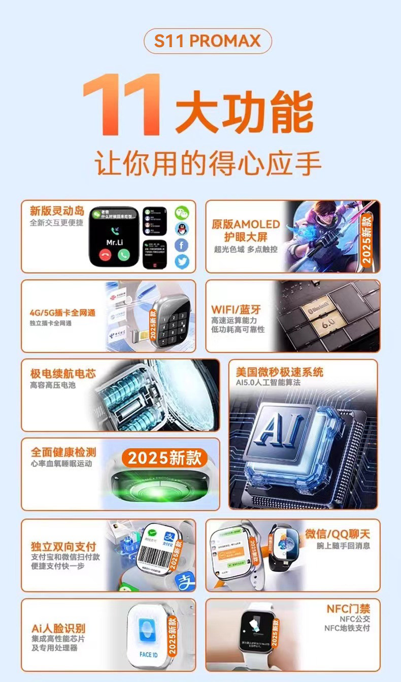 [Huaqiangbei Official Flagship] 2025 New S11 Watch Smartwatch with Phone Function, Card Slot, Downloadable Apps, S10 Ultra Top-End Cellular Sports Edition, S9 for Middle and High School Students, Adults, Men's and Women's Models