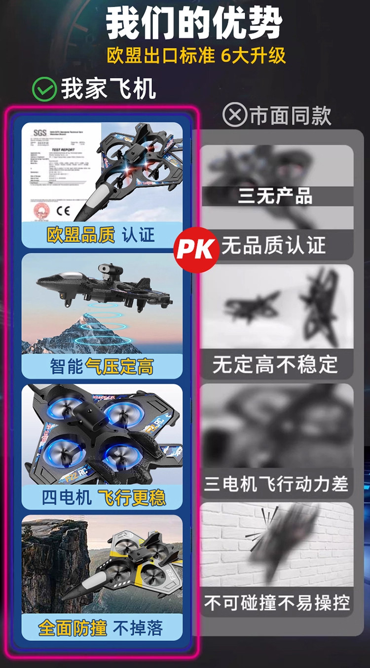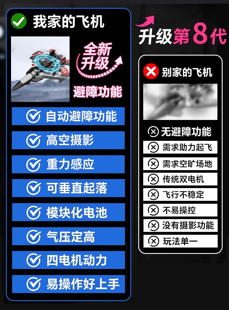 | Color Classification | Enhanced Motor - Blue - Large Wheelbase 6Th Generation Fighter Jet [Six-Axis Gyroscope + Air Pressure Altitude Hold + Dazzling Lights + Stunt Rolls],Increase [Enhanced Motor Red - Large Wheelbase 6Th Generation Fighter [Six-Axis Gyroscope + Air Pressure Height Setting + Cool Lights + Stunt Tumbling],Watch Dual Remote Control [Enlarged and Enhanced] Blue - Large Wheelbase 6Th Generation Fighter [Air Pressure Height Setting + Cool Lights + Stunt Tumbling],Watch Dual Remote Control [Enlarged and Enhanced] Red - Large Wheelbase 6Th Generation Fighter [Air Pressure Height Setting + Cool Lights + Stunt Tumbling],Upgraded Aerial Photography Dual Control [8K High-Definition Single Camera] Large Wheelbase 6Th Generation Fighter Jet [Altitude Hold + Dazzling Lights + Stunt Rolls],Upgraded Aerial Photography Dual Control [8K Hd Dual Camera] Large Wheelbase 6Th Generation Fighter [Air Pressure Height Setting + Cool Lights + Stunt Rolls],Watch Three Remote Control [8K High-Definition Single Camera] Large Wheelbase 6Th Generation Fighter [Air Pressure Height Setting + Cool Lights + Stunt Rolling],Watch Three Remote Control [8K High-Definition Dual Camera] Large Wheelbase 6Th Generation Fighter [Air Pressure Height Setting + Cool Lights + Stunt Rolling],Upgraded Anti-Collision [Smart Obstacle Avoidance] Blue - Large Wheelbase 6Th Generation Fighter Jet [Air Pressure Altitude Hold + Dazzling Lights + Stunt Rolls],Upgraded Anti-Collision [Smart Obstacle Avoidance] Red - Large Wheelbase 6Th Generation Fighter Jet [Air Pressure Altitude Hold + Dazzling Lights + Stunt Rolls],Dual-Control Watch [Collision Avoidance + Smart Obstacle Avoidance] Blue - Large Wheelbase 6Th Generation Fighter Jet [Air Pressure Altitude Hold + Dazzling Lights + Stunt Rolls],Dual-Control Watch [Anti-Collision + Smart Obstacle Avoidance] Red - Large Wheelbase 6Th Generation Fighter Jet [Air Pressure Altitude Hold + Dazzling Lights + Stunt Rolls],8K High-Definition Single Camera Dual Control [Collision Avoidance + Intelligent Obstacle Avoidance] Large Wheelbase 6Th Generation Fighter Jet [Air Pressure Altitude Hold + Dazzling Lights + Stunt Rolls],8K Hd Dual Camera, Dual Control [Collision Avoidance + Smart Obstacle Avoidance] Long Wheelbase 6Th Generation Fighter Jet [Air Pressure Altitude Hold + Dazzling Lights + Stunt Rolls],Watch Three Controls - 8K High-Definition Single Camera [Anti-Collision + Intelligent Obstacle Avoidance] 6Th Generation Fighter [Air Pressure Height Setting + Cool Lights + Stunt Rolling,Watch Three Controls - 8K High-Definition Dual Camera [Anti-Collision + Intelligent Obstacle Avoidance] 6Th Generation Fighter [Air Pressure Height Setting + Cool Lights + Stunt Rolling] |