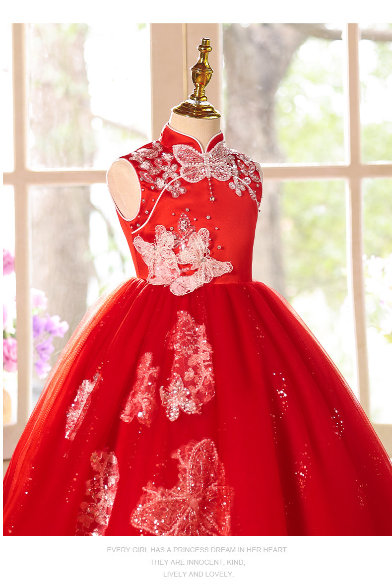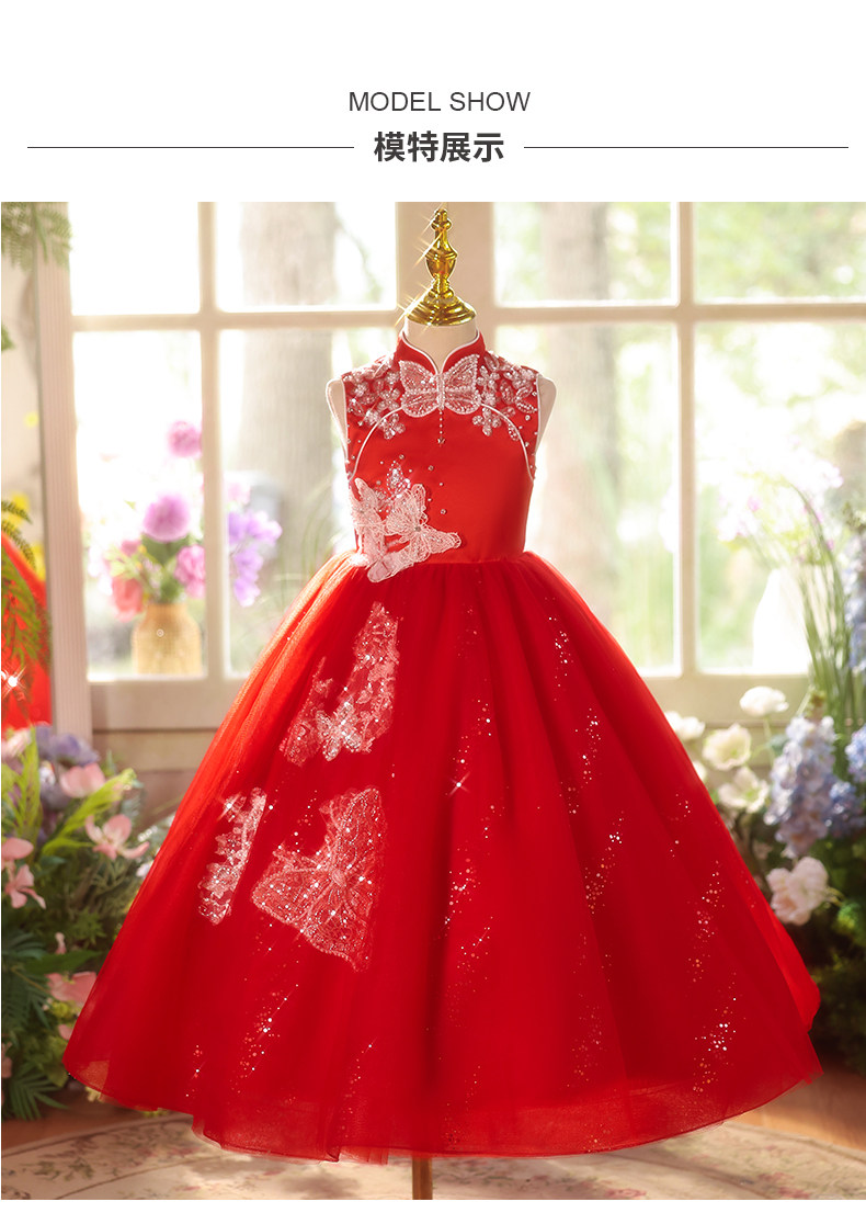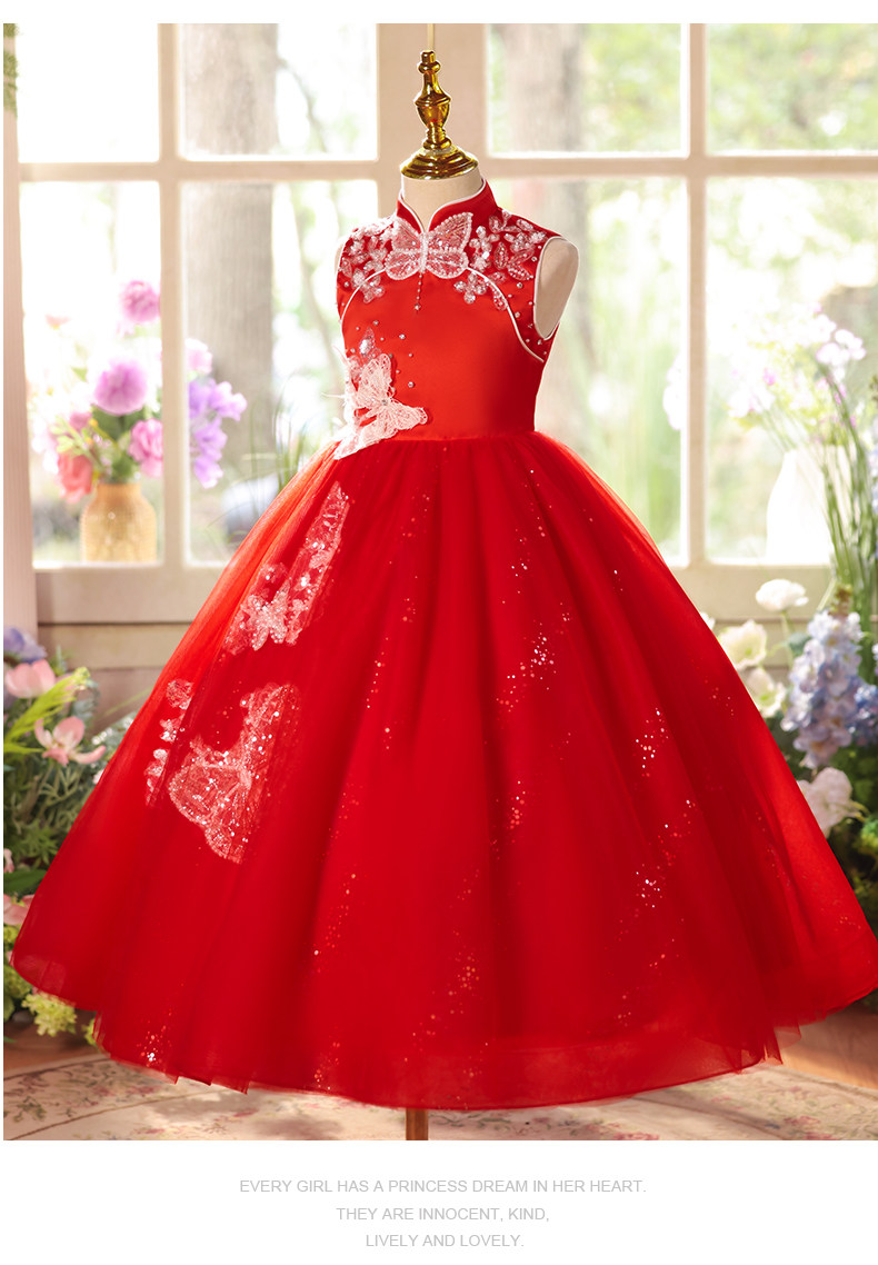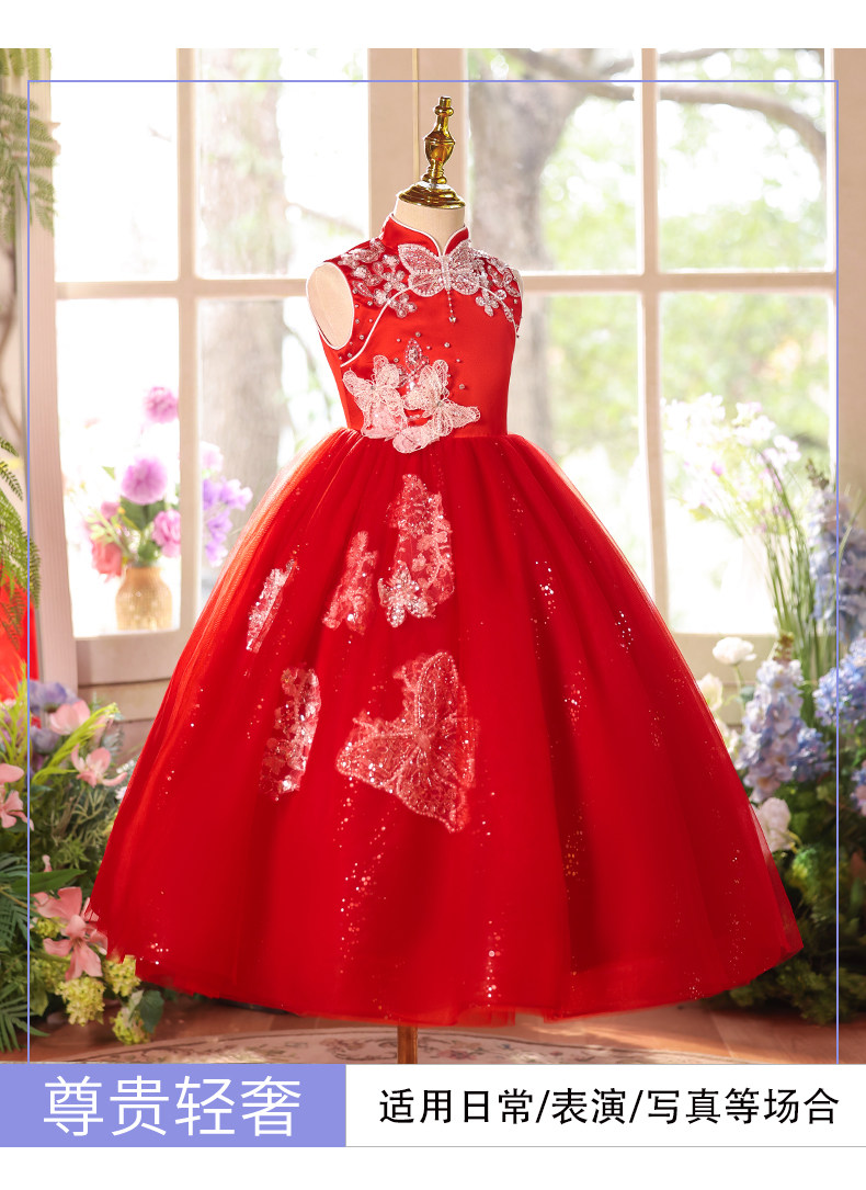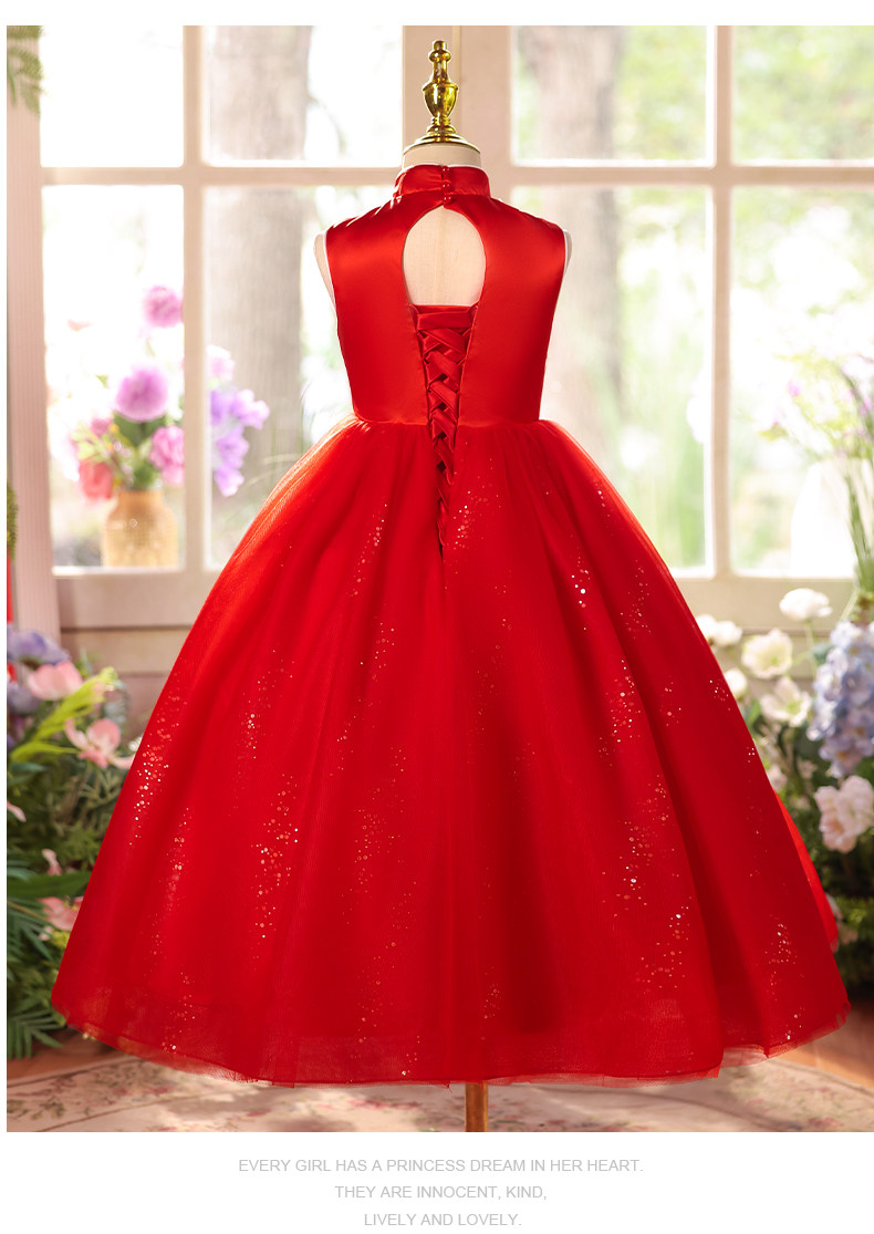 Yinmanqi Children's Dress New Style Girls' Heavy Embroidery Chinese Style Performance Dress Host Red Evening Dress