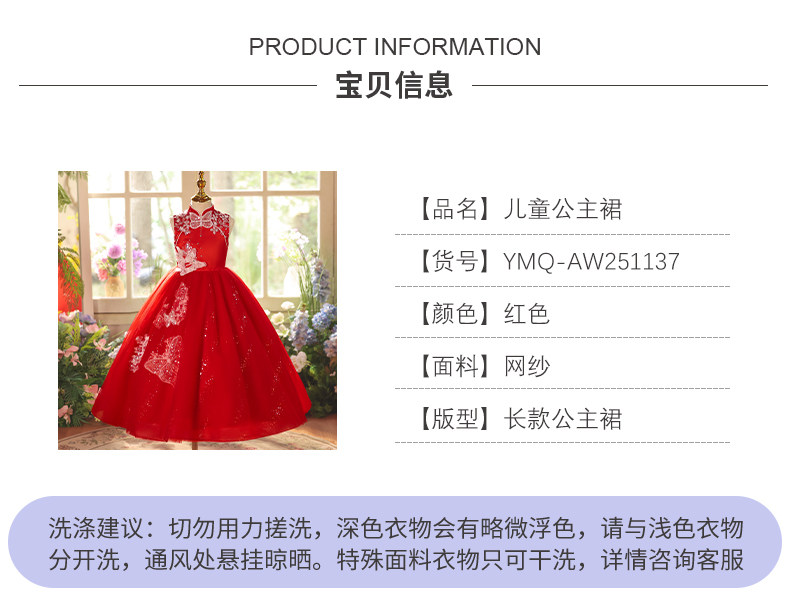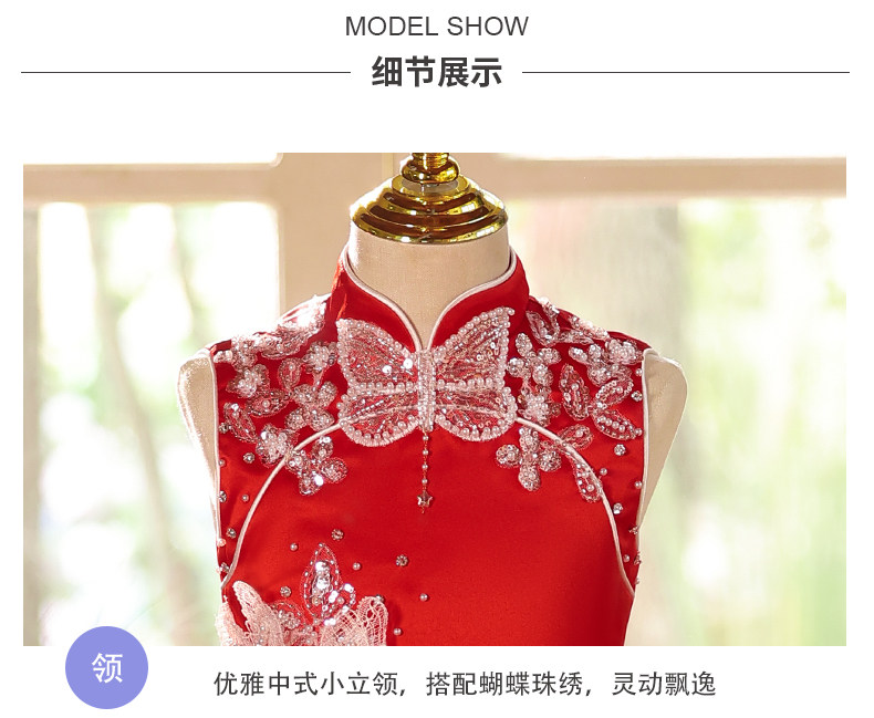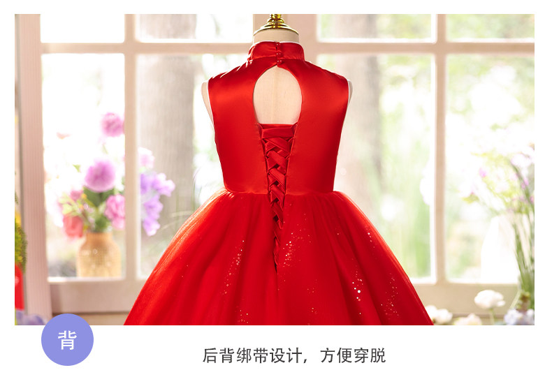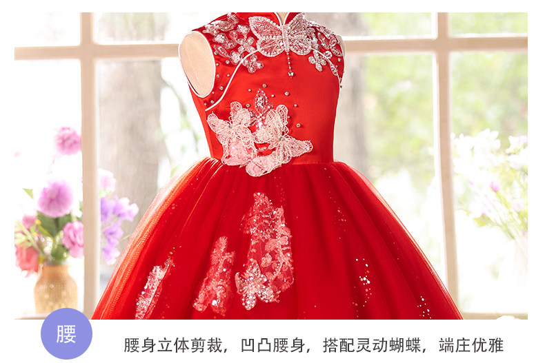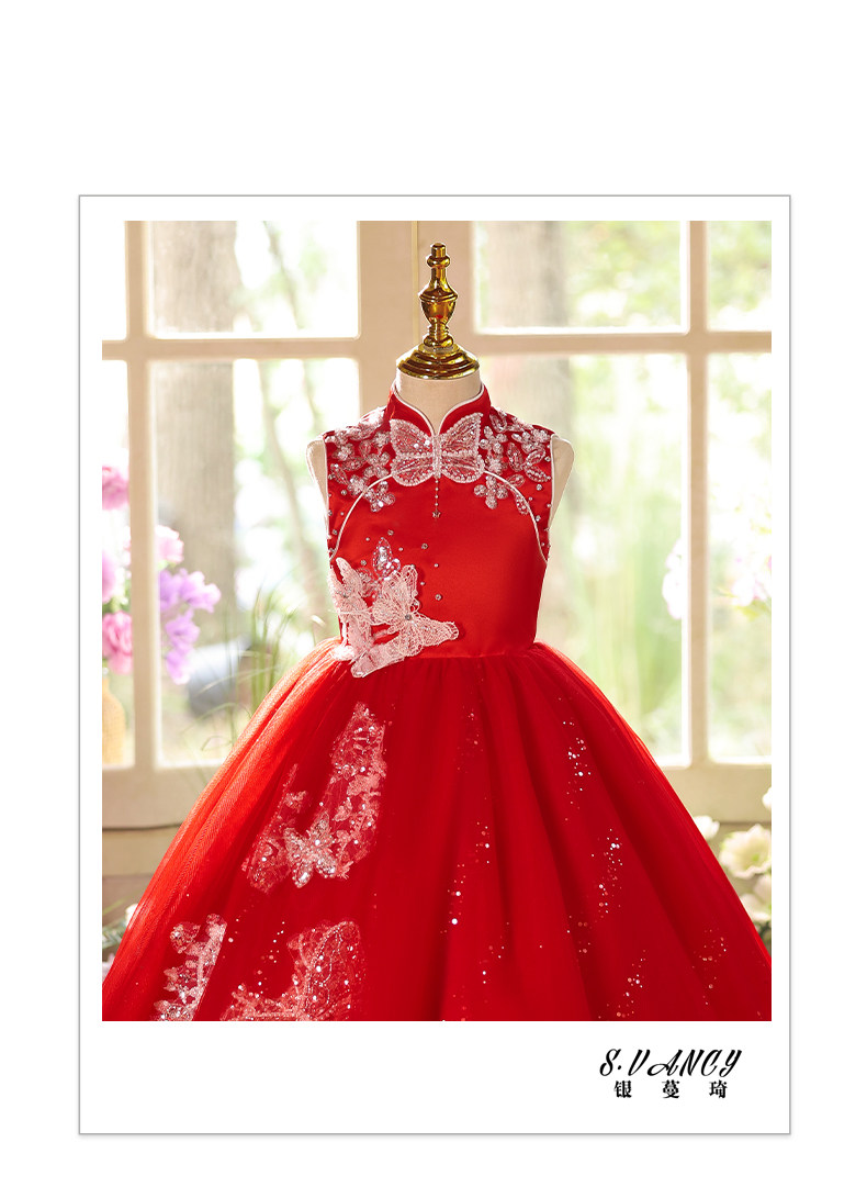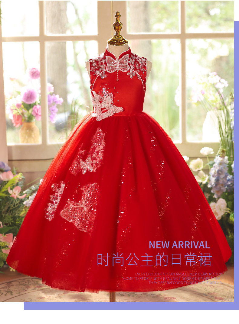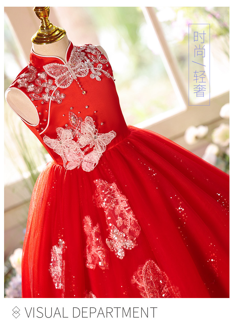 Yinmanqi Children's Dress New Style Girls' Heavy Embroidery Chinese Style Performance Dress Host Red Evening Dress