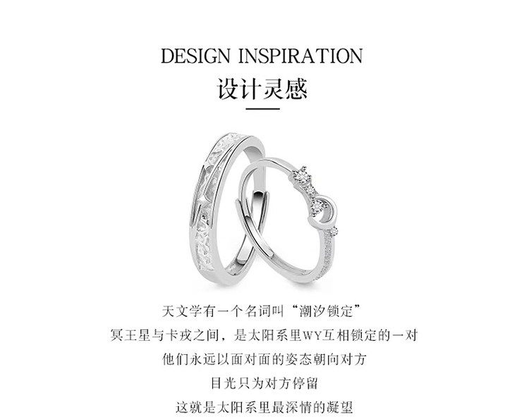 Pluto Charon Couple Rings Sterling Silver Pair Light Luxury Unisex Anniversary Valentine's Day Gift for Girlfriend