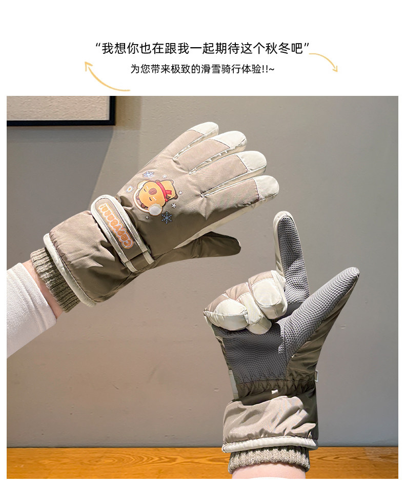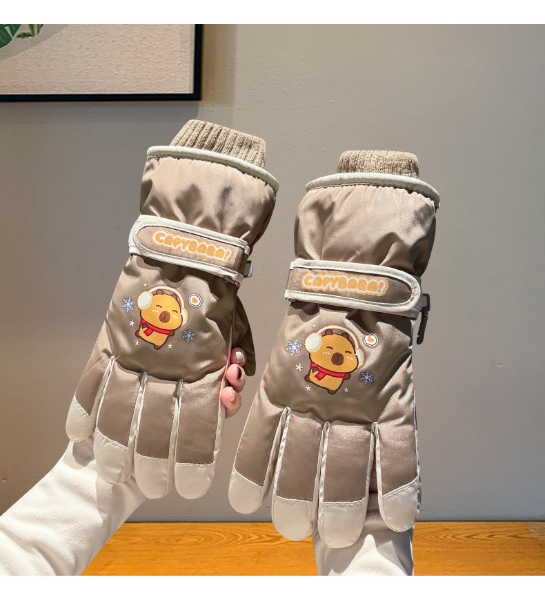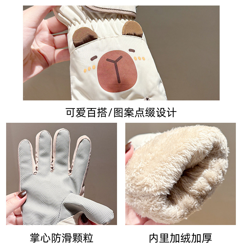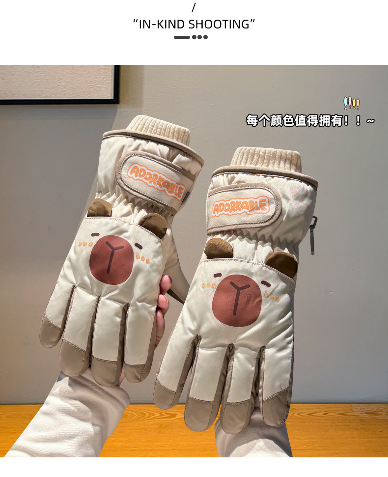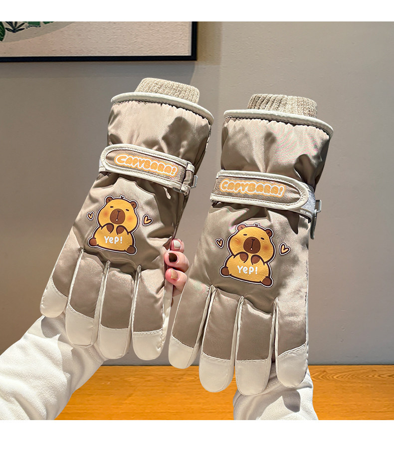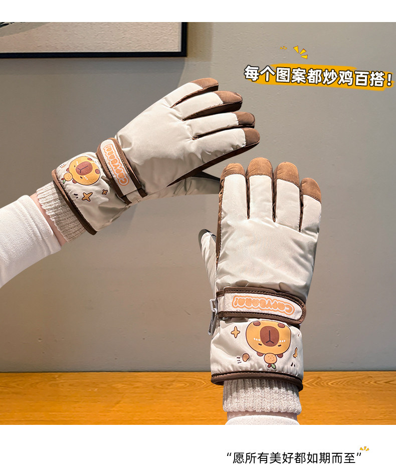 Cute Kapibara Ski Gloves for Women, Winter Cycling Electric Bike Gloves, Warm, Windproof, Fleece-Lined, Thickened, Touchscreen Compatible