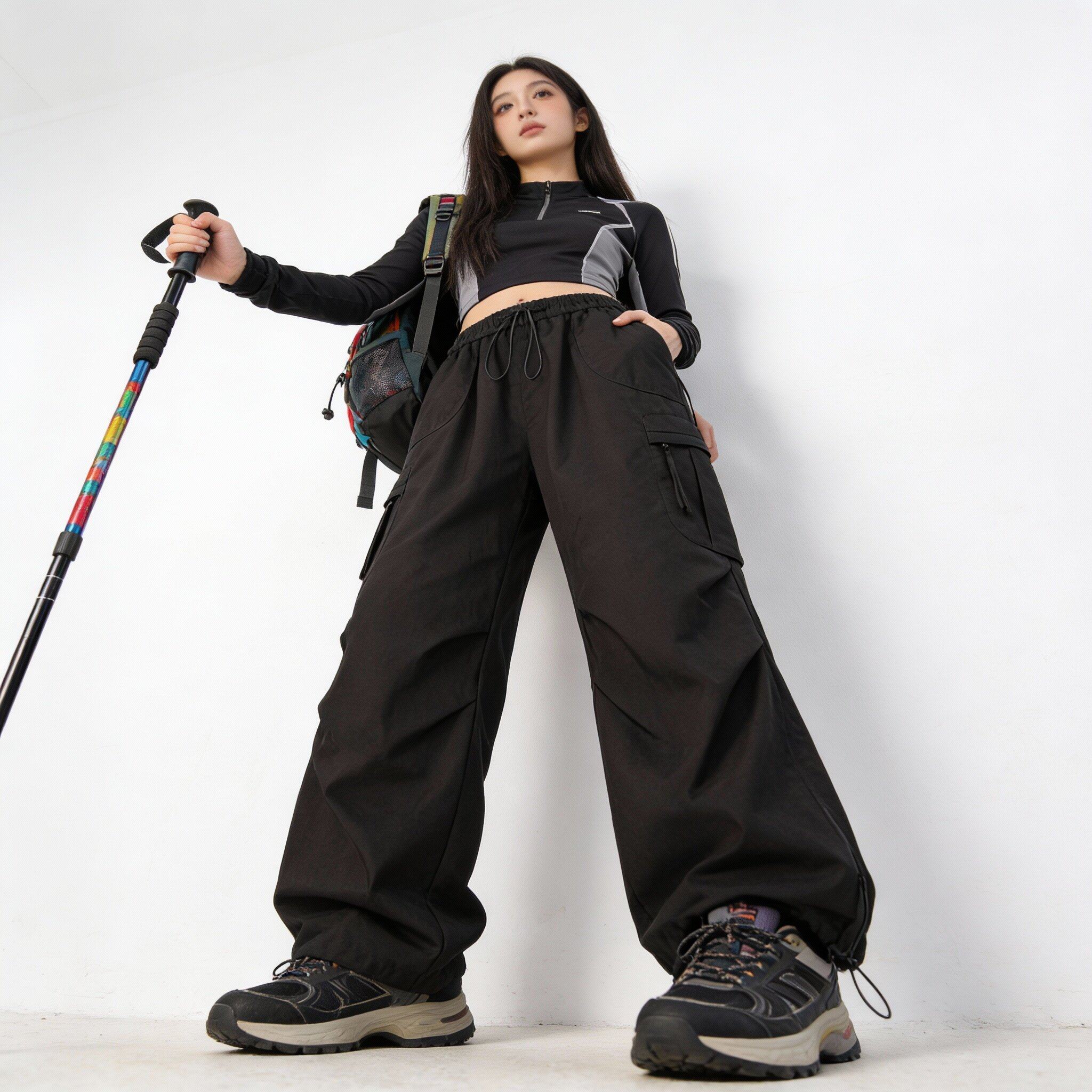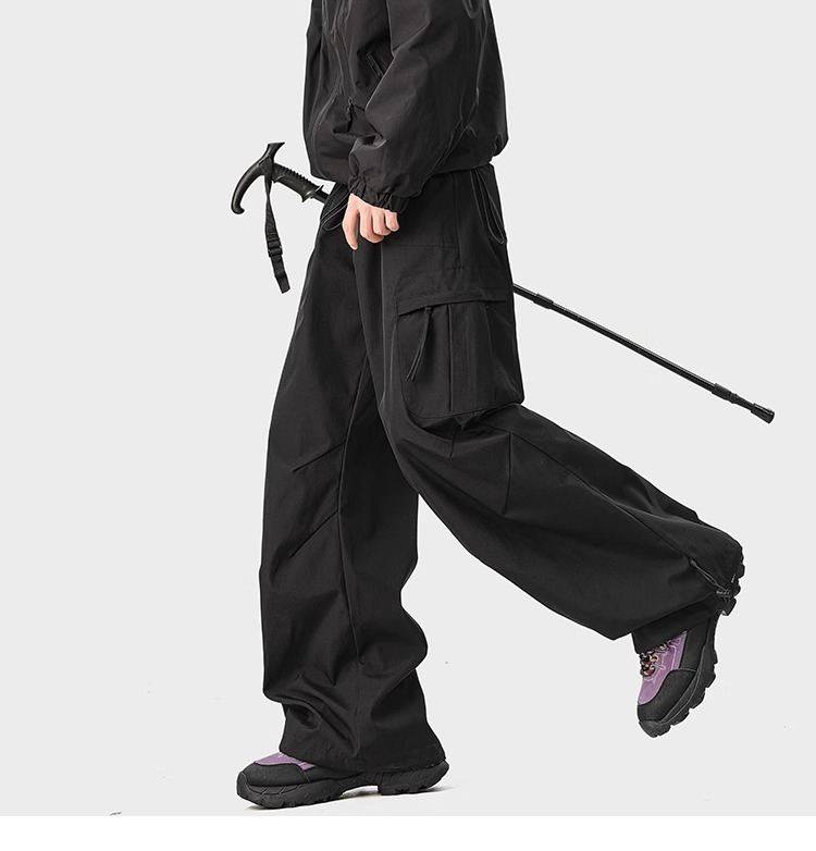 Outdoor Mountain-Style Water-Repellent Tactical Pants for Men and Women, Autumn Functional Wind-Resistant Pleated Paratrooper Pants, Hiking and Mountaineering Sports Long Pants