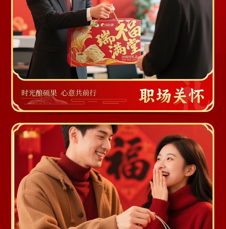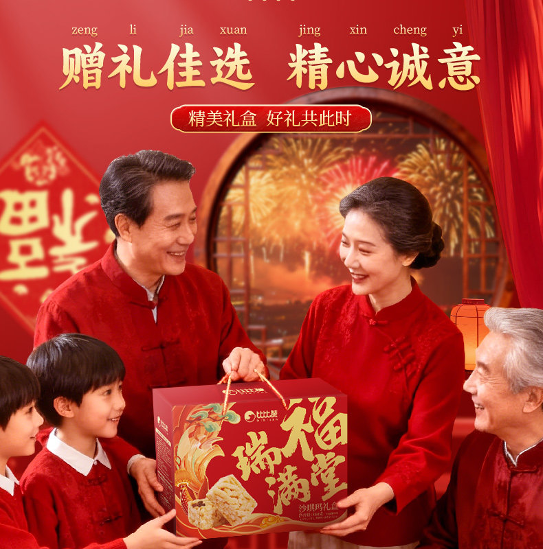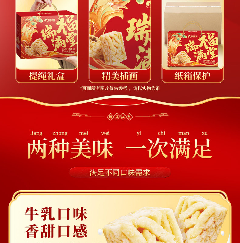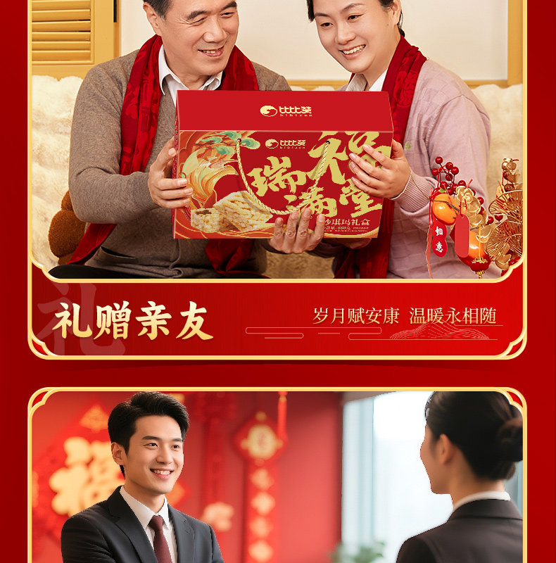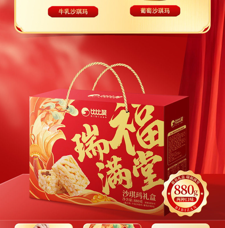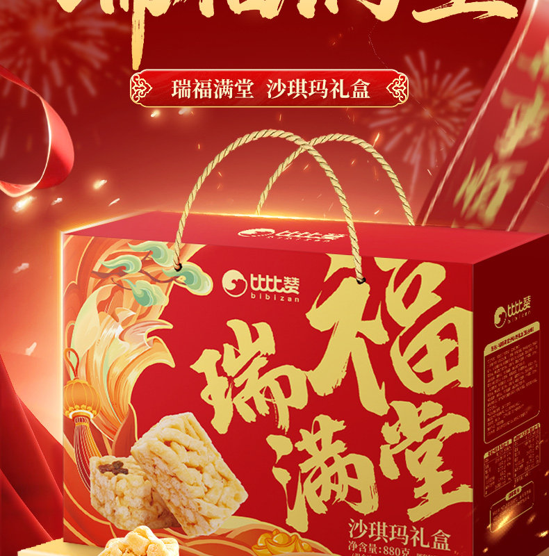 Bibizan Rui Fu Mantang Shaqima Gift Box Pastry Spring Festival New Year Gift Box Snacks Leisure Food