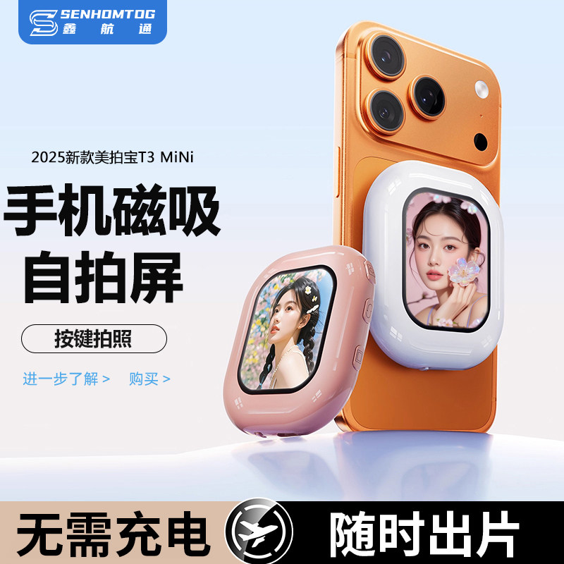 [2025 New Model]T3Mini Instant Camera Compatible with Apple iPhone 17, Magnetic Back Camera Selfie Display, Wireless Screen Mirroring, Photo Taking and Rear Camera Viewfinder, Portable Gift for Women