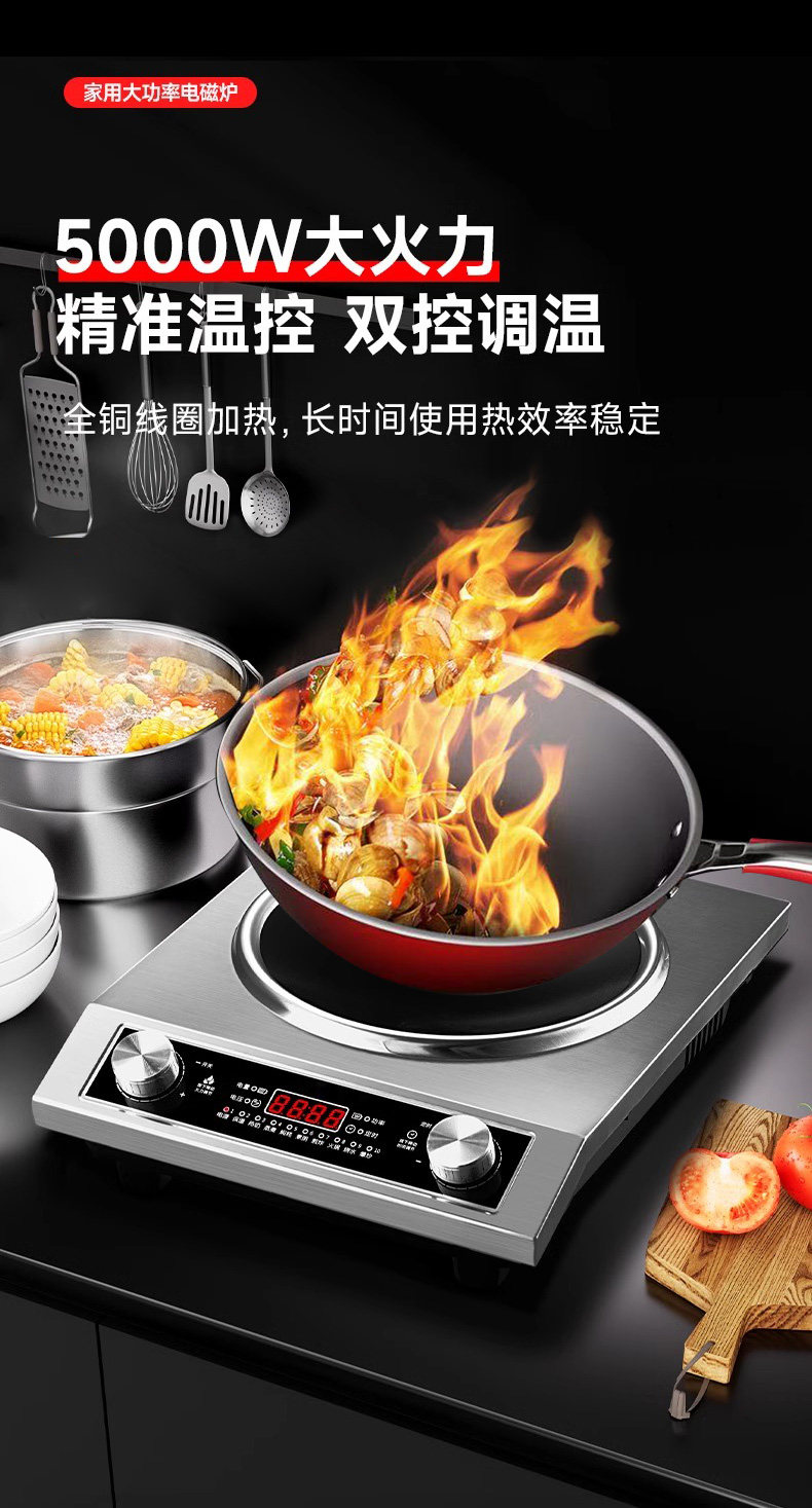 Wanlida Household Induction Cooker with Concave Surface, 5000W High Power, Commercial 3500W Smart Hot Pot Integrated High-Power Stove