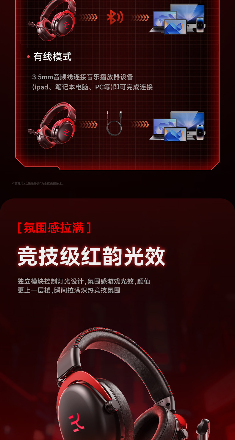 | Connection Method of Headphones and Playback Devices | 2.4G |