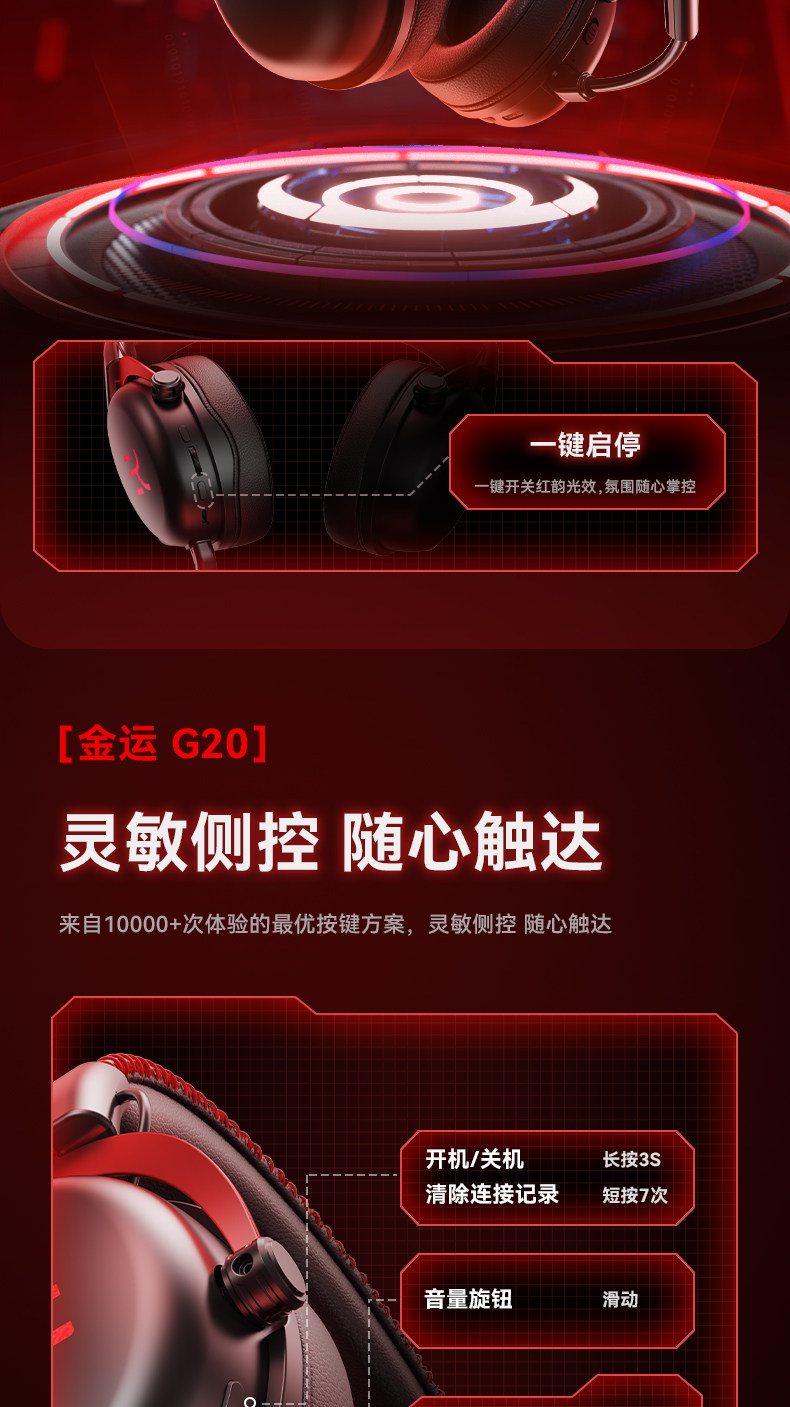 Jinyun G20 Over-Ear Headphones E-Sports Four-Mode Gaming 2.4g Wireless Bluetooth Headset 7.1 Computer Delta Cs