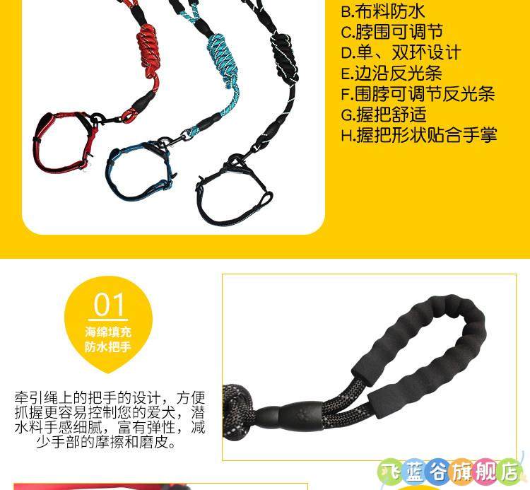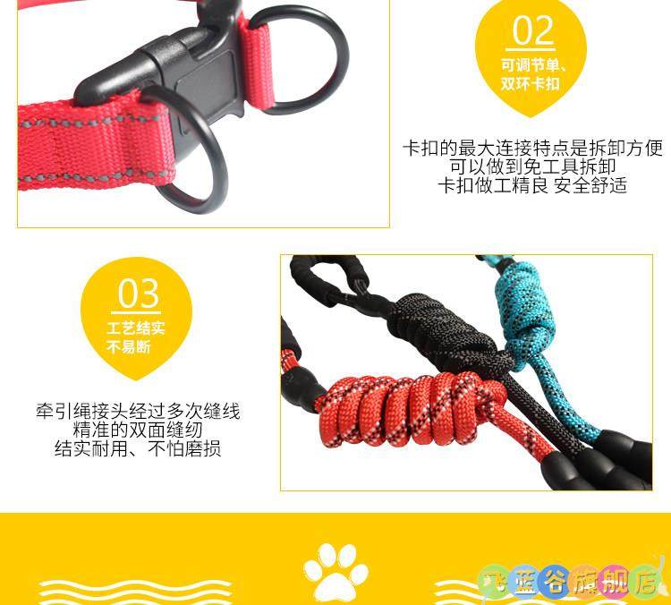 Dog Leash, Dog Collar, Pet Labrador Golden Retriever Anti-Explosion Chain, Small, Medium and Large Dog Collar
