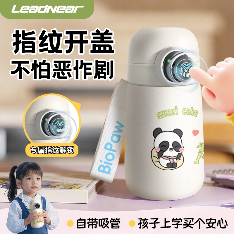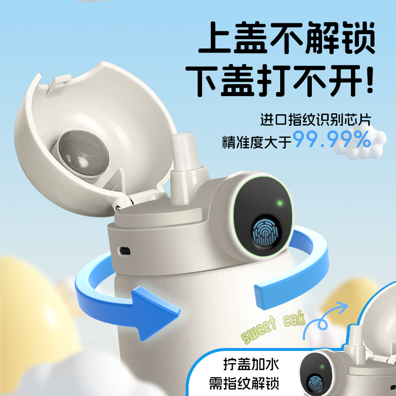 2025 New Model Fingerprint Password Thermos Cup for Primary School Students, Smart Fingerprint School-Specific Children's Straw Cup, Gift