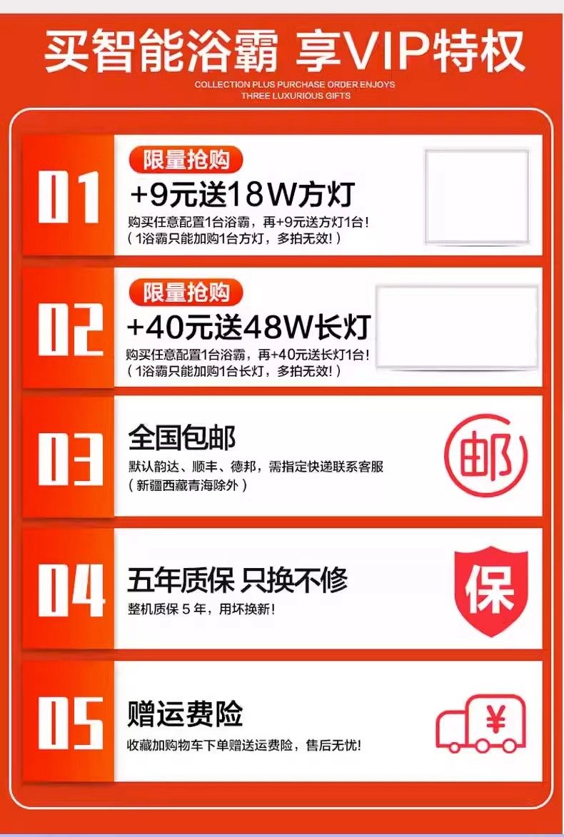| Color Classification | Dual Core Single Heating|Flame Retardant Body|Key Switch,Dual Core Single Heating|Flame Retardant Body|Touch Switch,Dual Core Single Heating|Flame Retardant Body|Wireless Switch,Dual Core Single Heating|Flame Retardant Body|2-Wire Voice Switch,Dual Core Single Heating|All Aluminum Body|Key Switch,Dual Core Single Heating|All Aluminum Body|Touch Switch,Dual Core Single Heating|All Aluminum Body|Wireless Switch,Dual Core Single Heating|All Aluminum Body|2-Wire Voice Switch,Triple Core and Double Heating|Flame Retardant Body|Key Switch-Medium Display,Triple Core and Double Heating|Flame Retardant Body|Touch Switch-Medium Display,Triple Core and Double Heating|Flame Retardant Body|Wireless Switch - Center Display,Triple Core and Double Heating|Flame Retardant Body|2-Wire Voice Switch - Center Display,Triple Core and Double Heating|All Aluminum Body|Key Switch-Medium Display,Triple Core and Double Heating|All Aluminum Body|Touch Switch-Medium Display,Triple Core and Double Heating|All Aluminum Body|Wireless Switch - Center Display,Triple Core and Double Heating|All Aluminum Body|2-Wire Voice Switch - Center Display,Dual Core Single Heating|All Aluminum Body|Key Switch + 48W Long Light,Dual Core Single Heating|All Aluminum Body|Touch Switch + 48W Long Light,Dual Core Single Heating|All Aluminum Body|Wireless Switch + 48W Long Light,Zhongxian - Triple Core Dual Heating|All Aluminum Body|Key Switch + 48W Long Light,Zhongxian - Triple Core Dual Heating|All Aluminum Body|Touch Switch + 48W Long Light,Zhongxian - Triple Core Dual Heating|All Aluminum Body|Wireless Switch + 48W Long Light,Activity Model/Flame Retardant Body/No Ventilation |