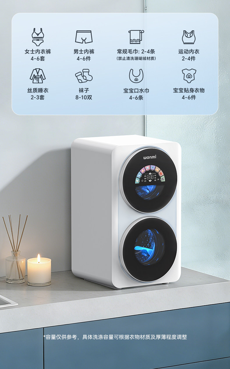Wanmi Underwear, Socks, Washing Machine, Double Drum, Desktop, Small, Washing, Drying, and Spinning All-In-One, Automatic, for Lazy People