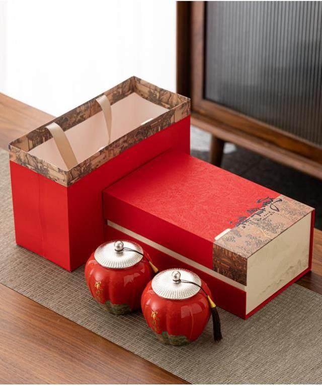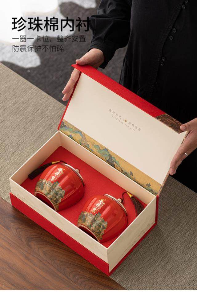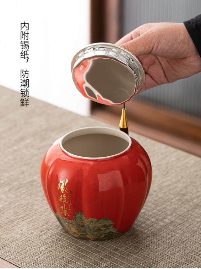 Tea Canister with a High-End Feel, Chinese-Style Ceramic Tea Canister Gift Box, Premium Tea Storage Canister, Sealed Moisture-Proof Canister for Black Tea, Green Tea, and White Tea