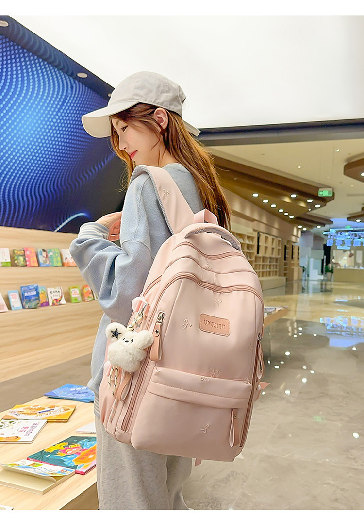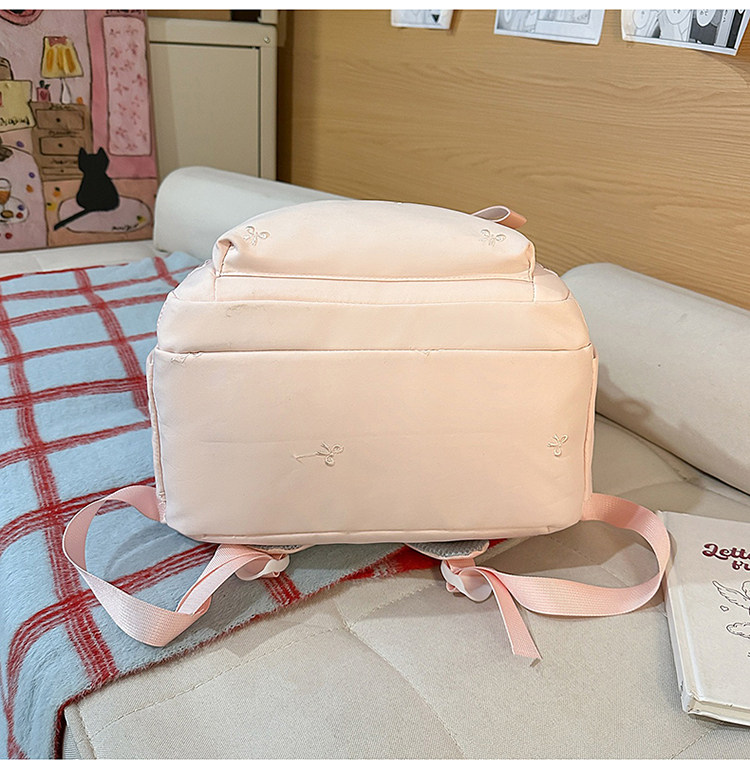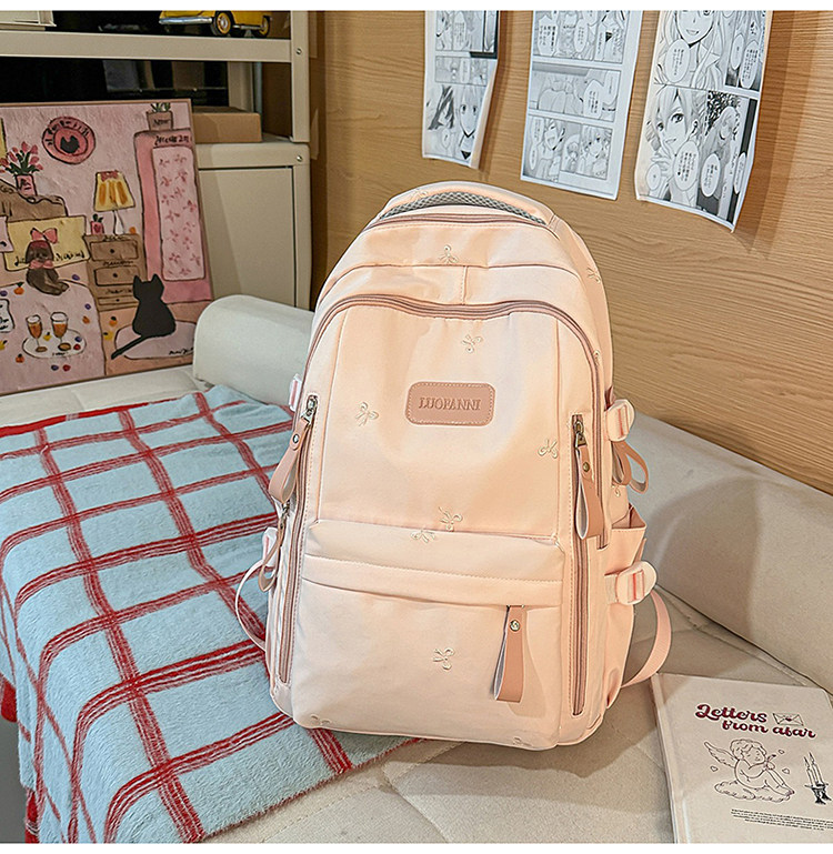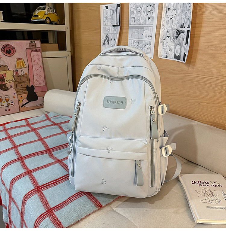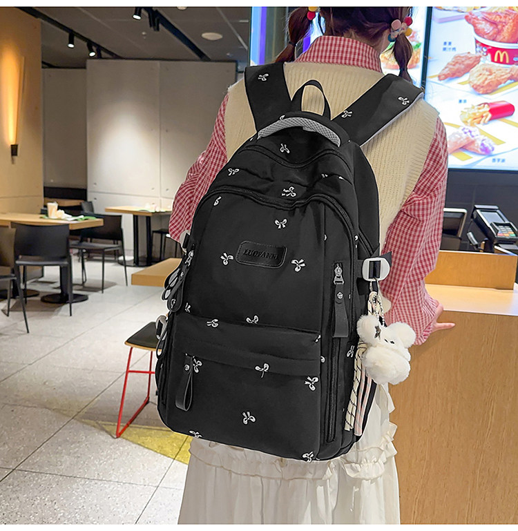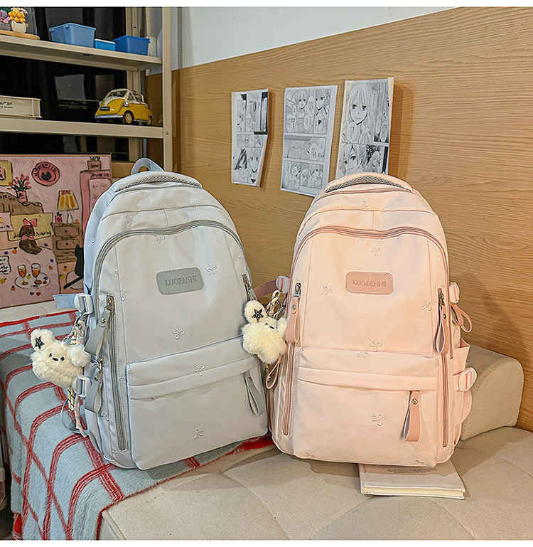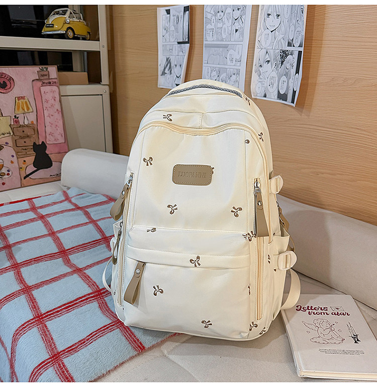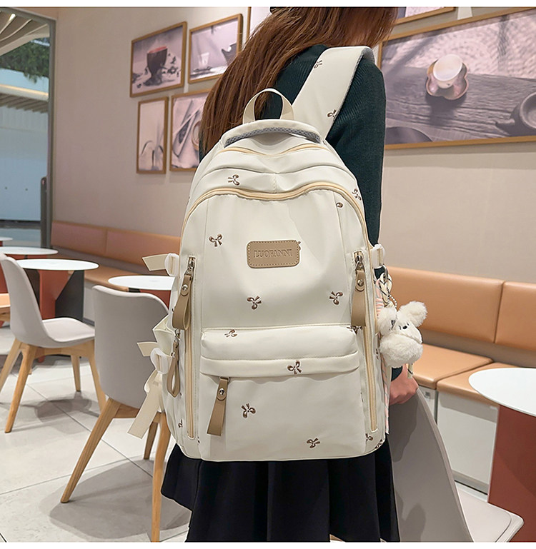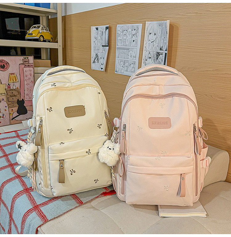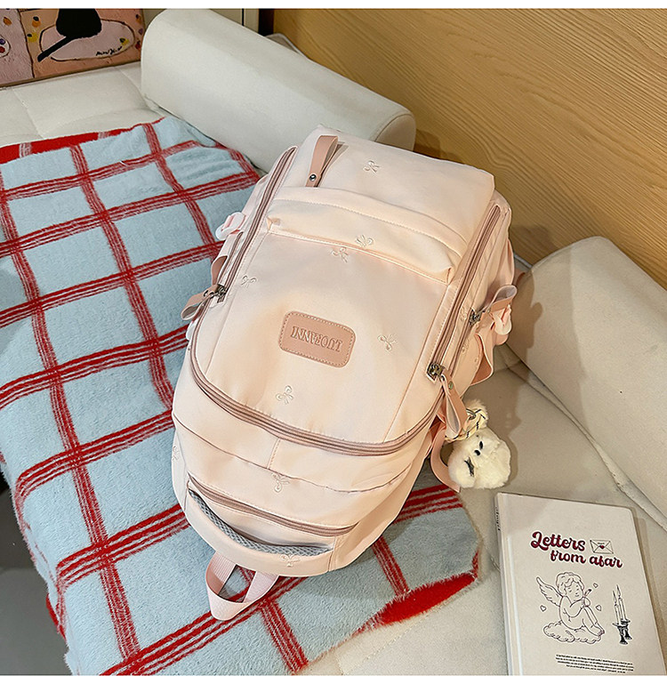 School Bag with Large Capacity, Multi-Layered, Unique Design, Embroidered Bow, Backpack for Middle School and College Students, Computer Bag