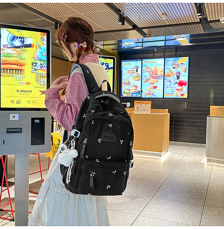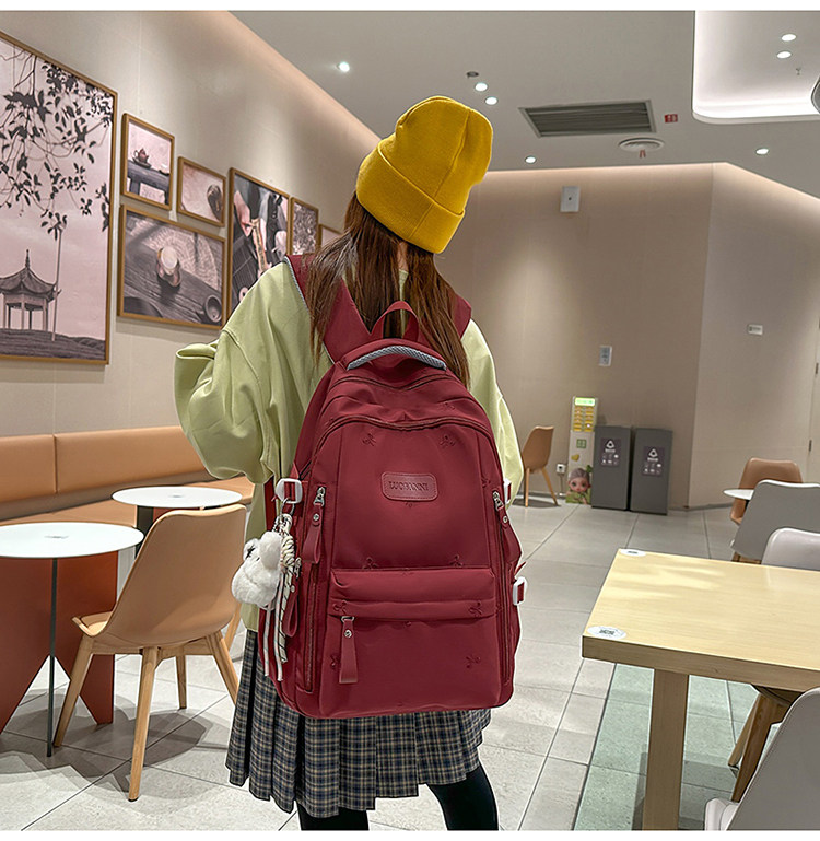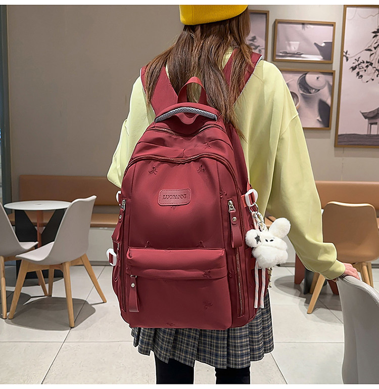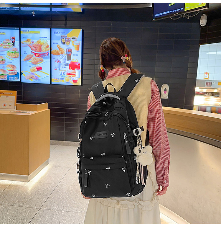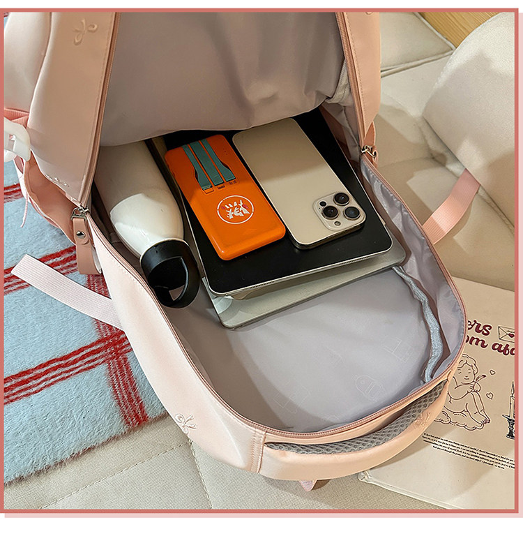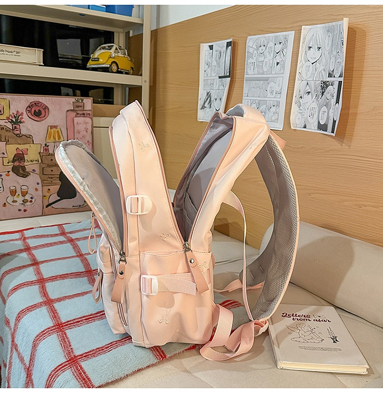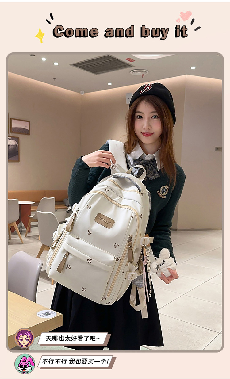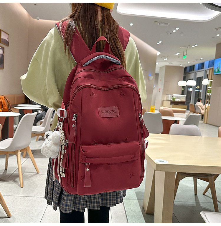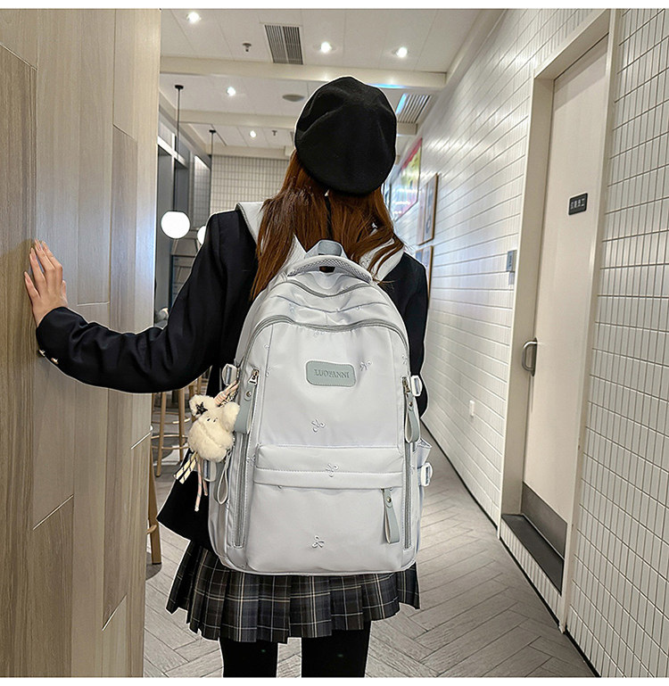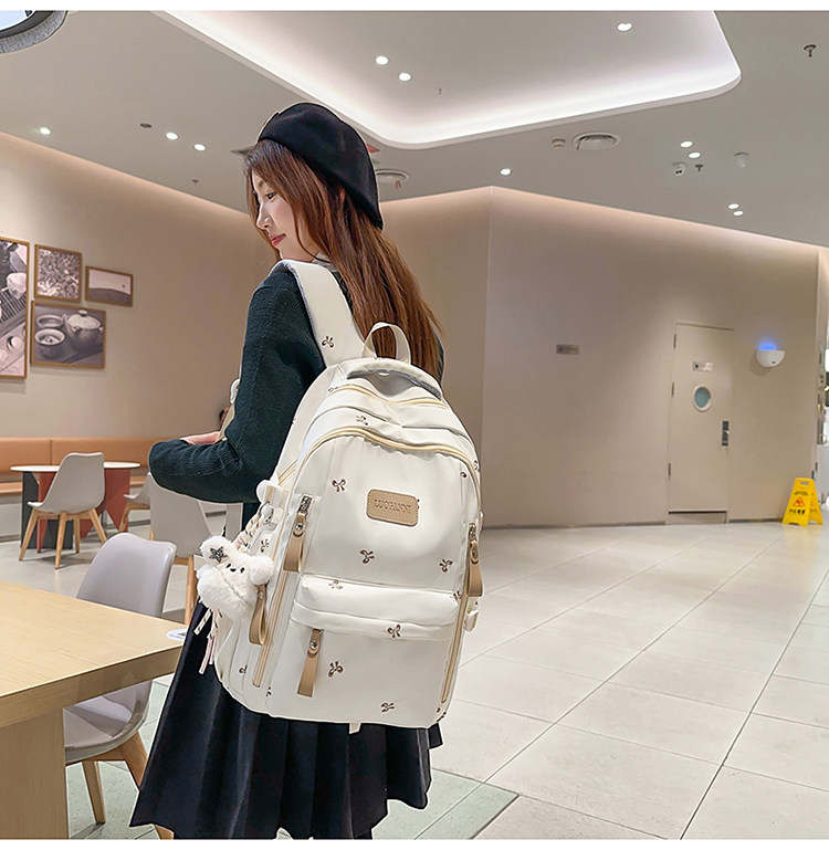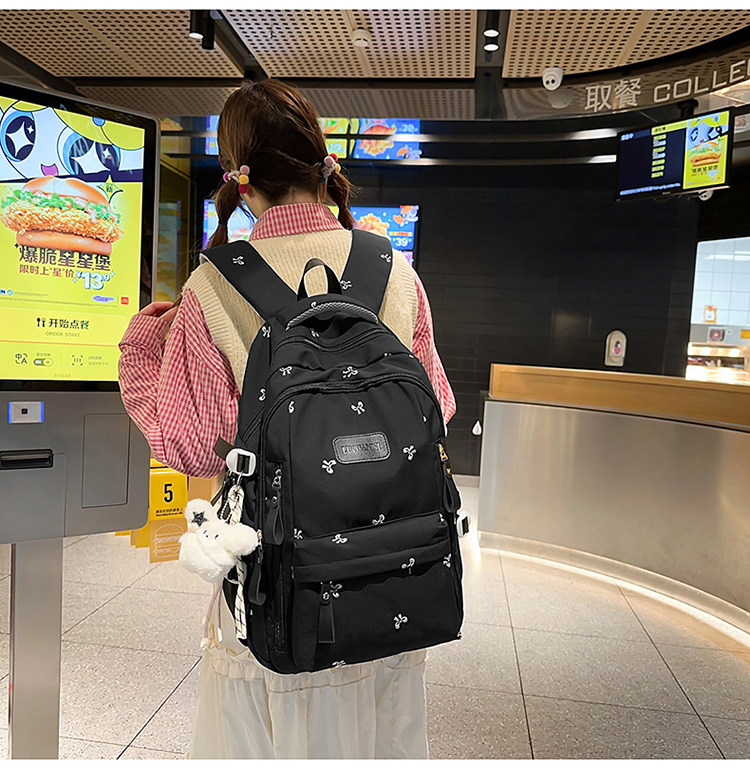 School Bag with Large Capacity, Multi-Layered, Unique Design, Embroidered Bow, Backpack for Middle School and College Students, Computer Bag