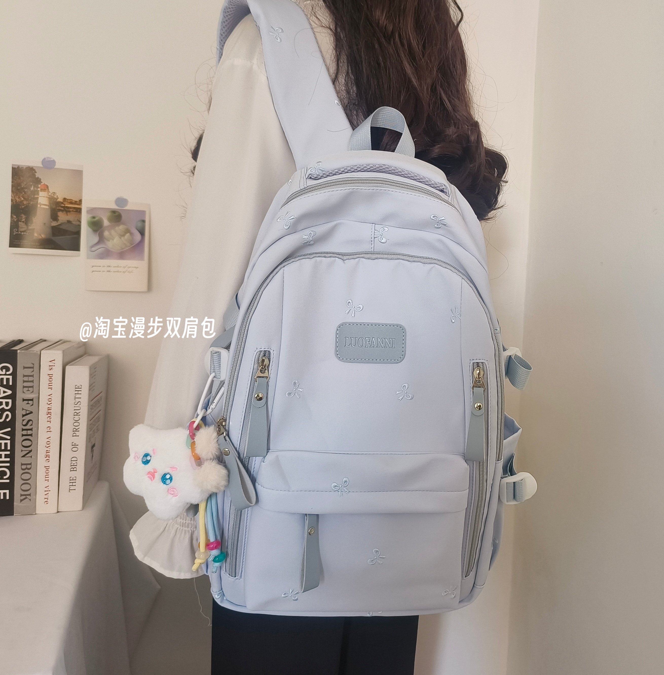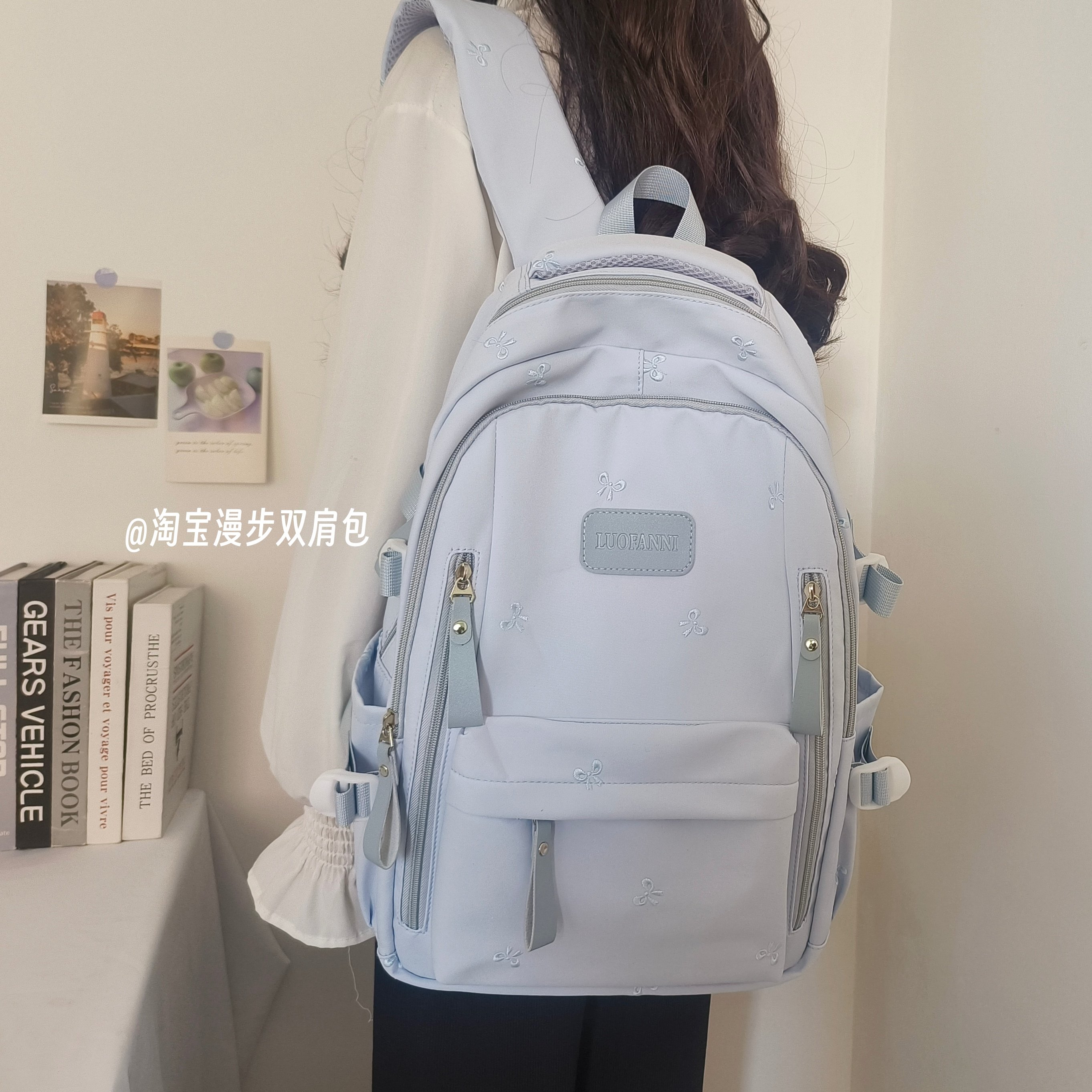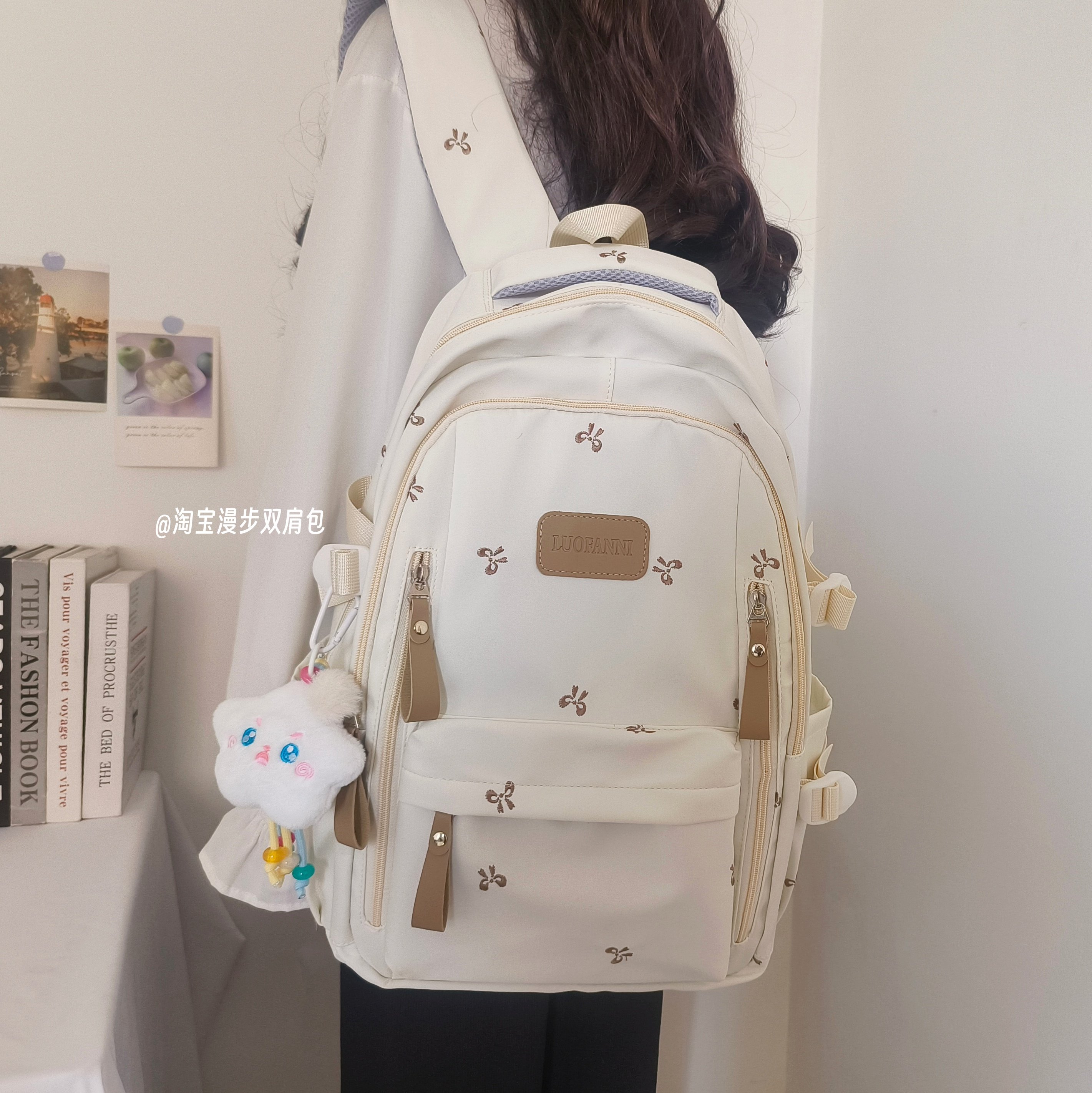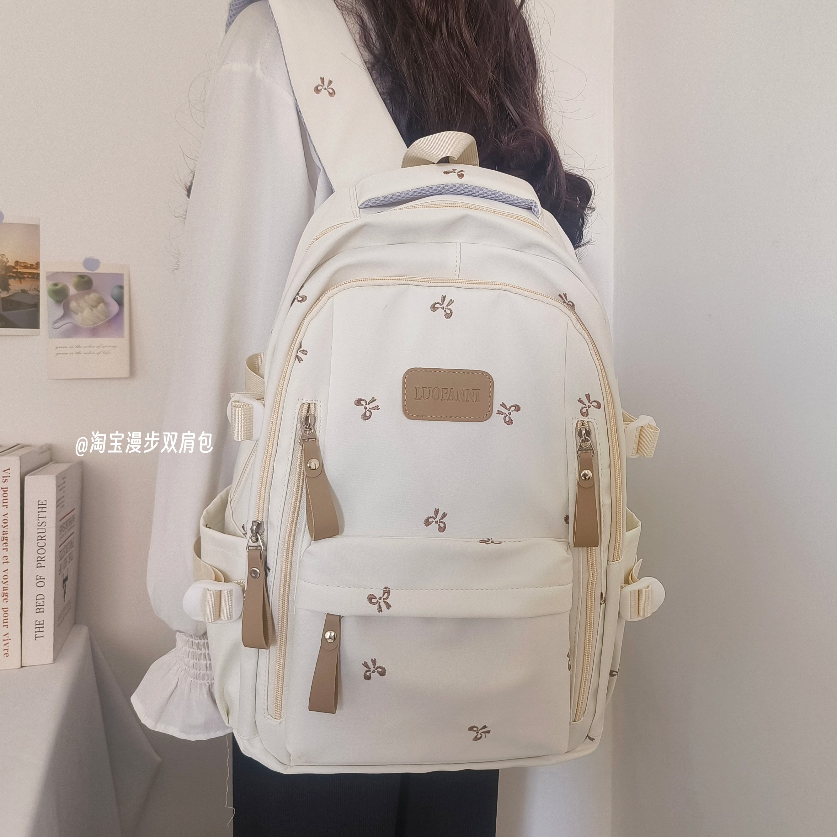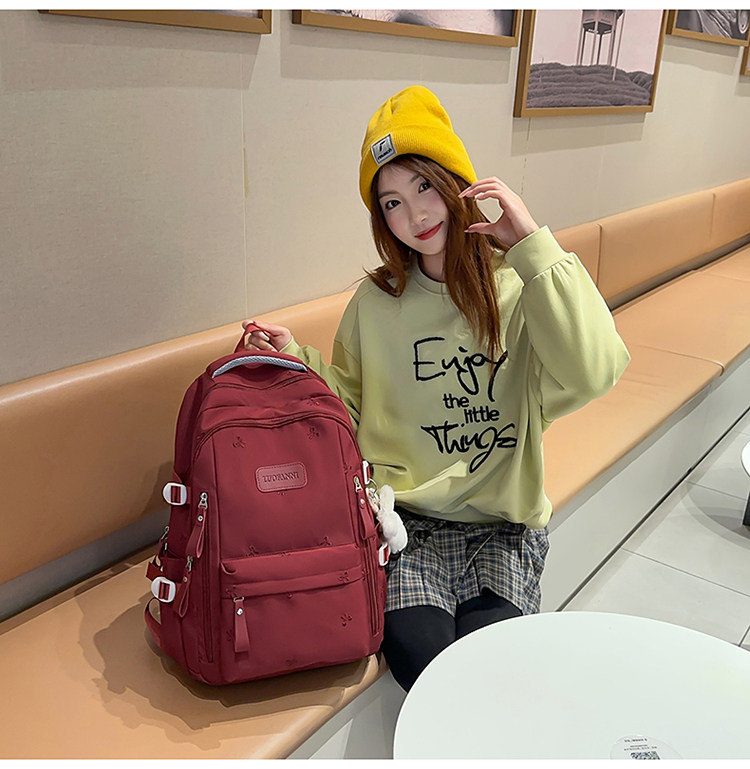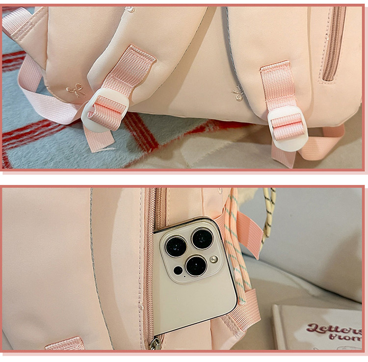 School Bag with Large Capacity, Multi-Layered, Unique Design, Embroidered Bow, Backpack for Middle School and College Students, Computer Bag