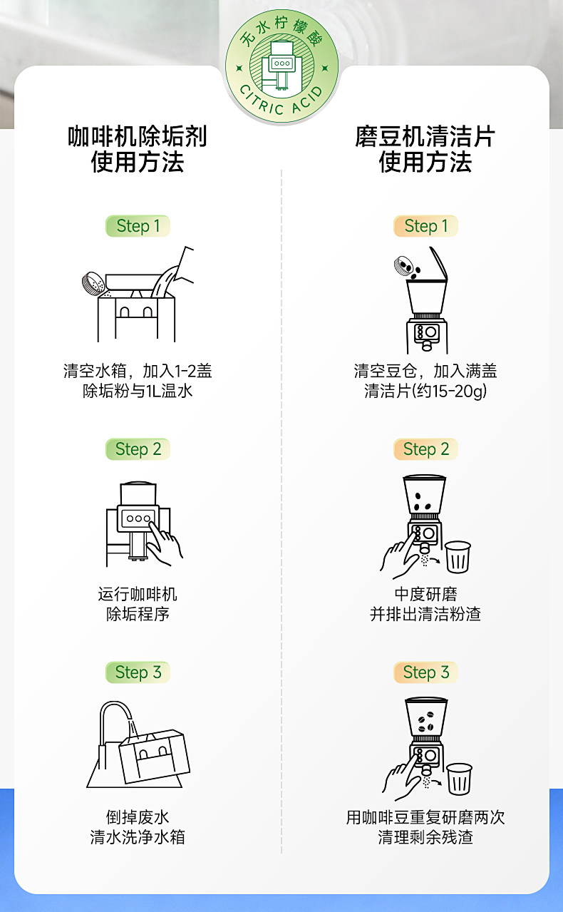 Cleaning Tablets, Descaling Powder, Brew Head and Water Tank Maintenance Cleaner, Coffee Machine and Grinder Special-Purpose Decontamination Universal Cleaner