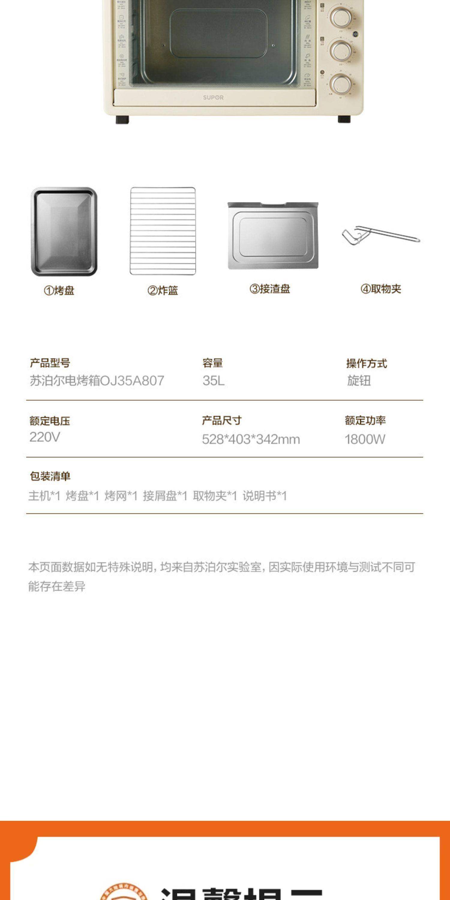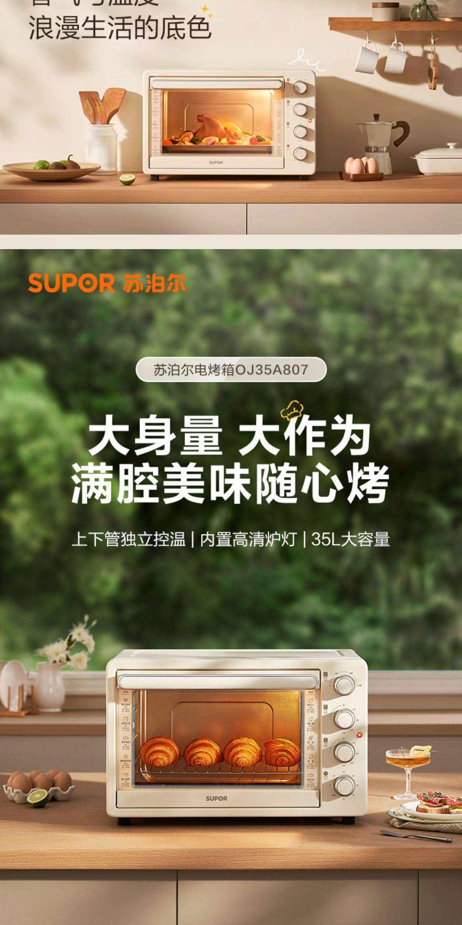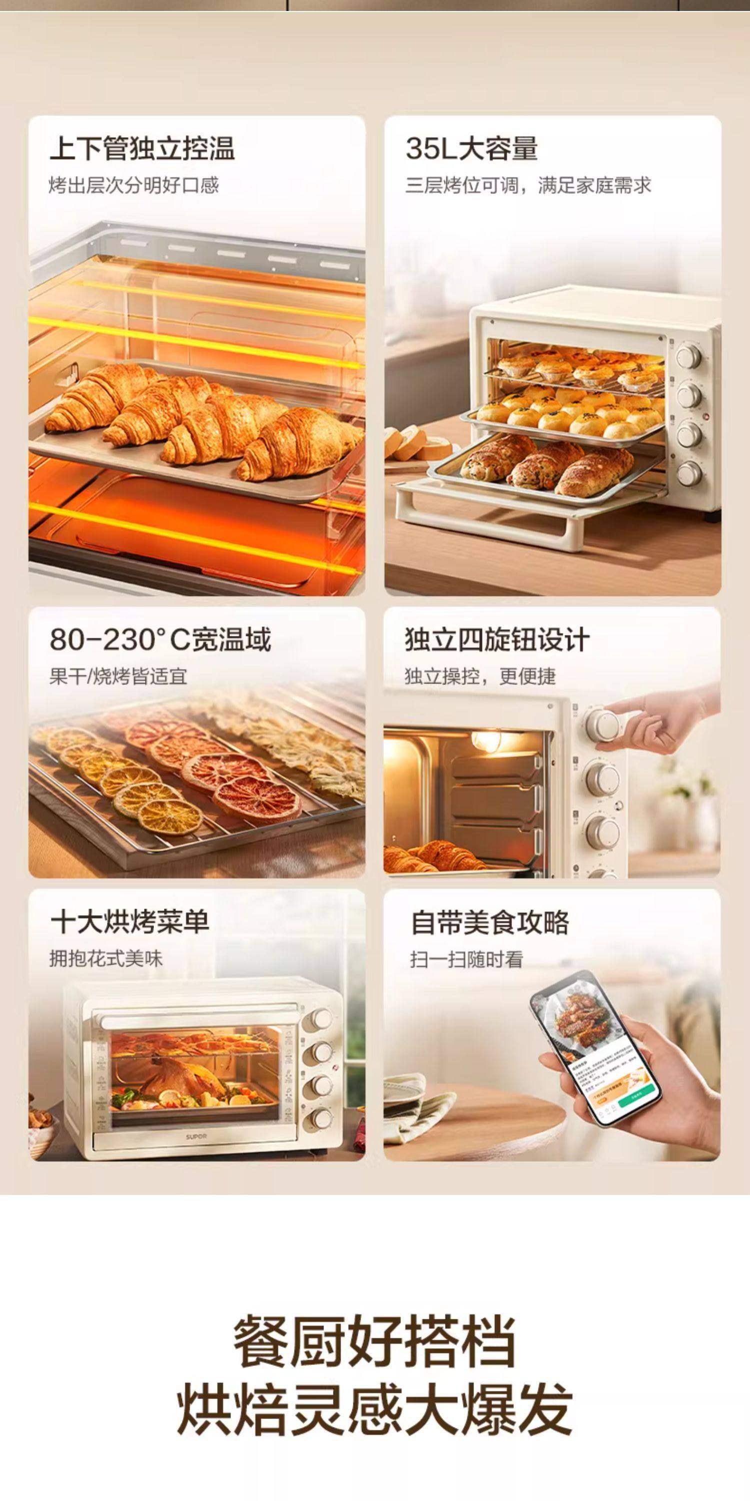 Supor Electric Oven for Home Use, Multi-Layer, 35L Large Capacity, Multi-Functional, Independent Upper and Lower Heating Elements, Intelligent Temperature Control, Smart Baking Machine