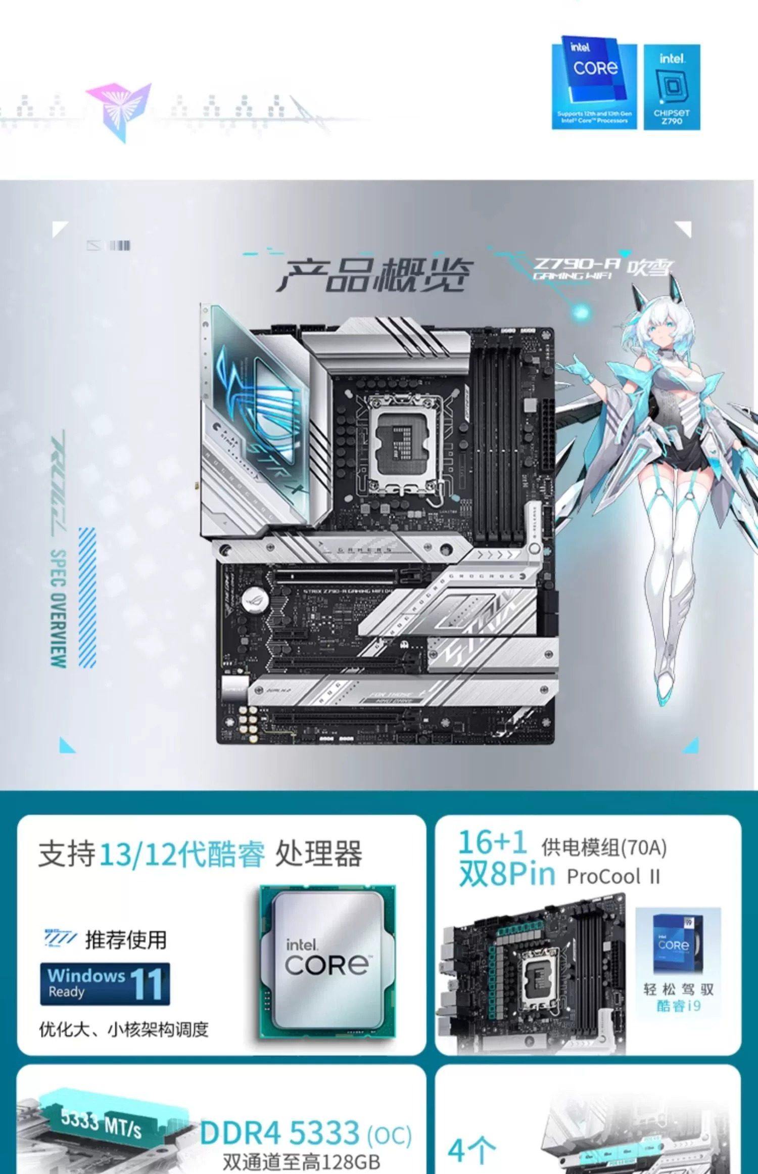 Asus Cpu Motherboard Set Z790 Motherboard Heavy Artillery Snow Rog Intel 14Th Generation Core I9/I7/I5