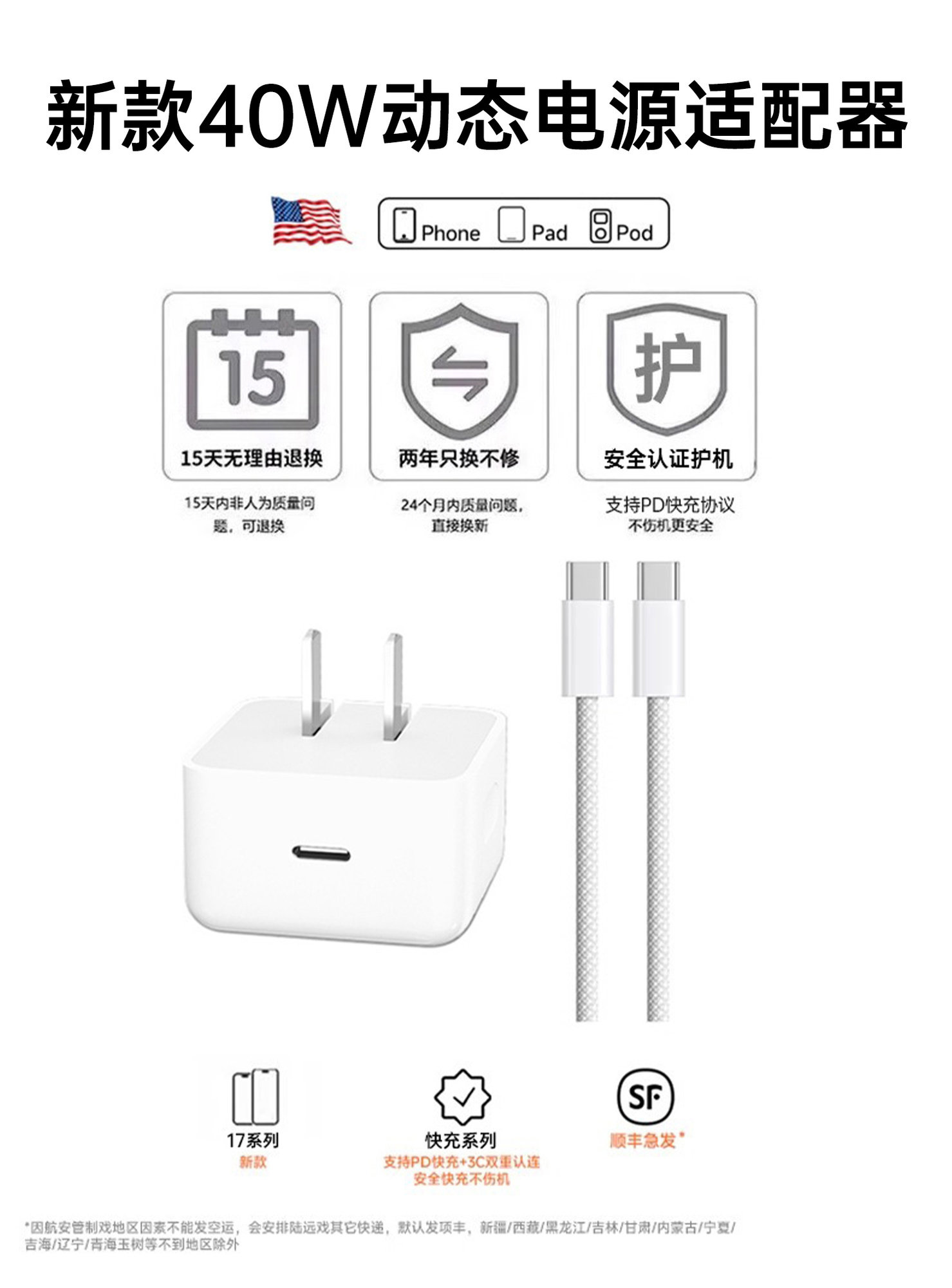 [Official Genuine Product] [Original 40W Fast Charger] Compatible with Apple 17 Charger Head, iPhone 16 Pro Max, Mobile Phone 15/14 Plug, Pd Data Cable, iPad 13/12 Set, Type-C