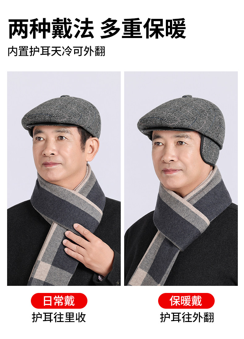 Hats for Middle-Aged and Elderly Men, Winter Baseball Caps for Dad and Grandpa, Outdoor Thickened Ear-Protecting Cold-Proof Warm Cotton Hats
