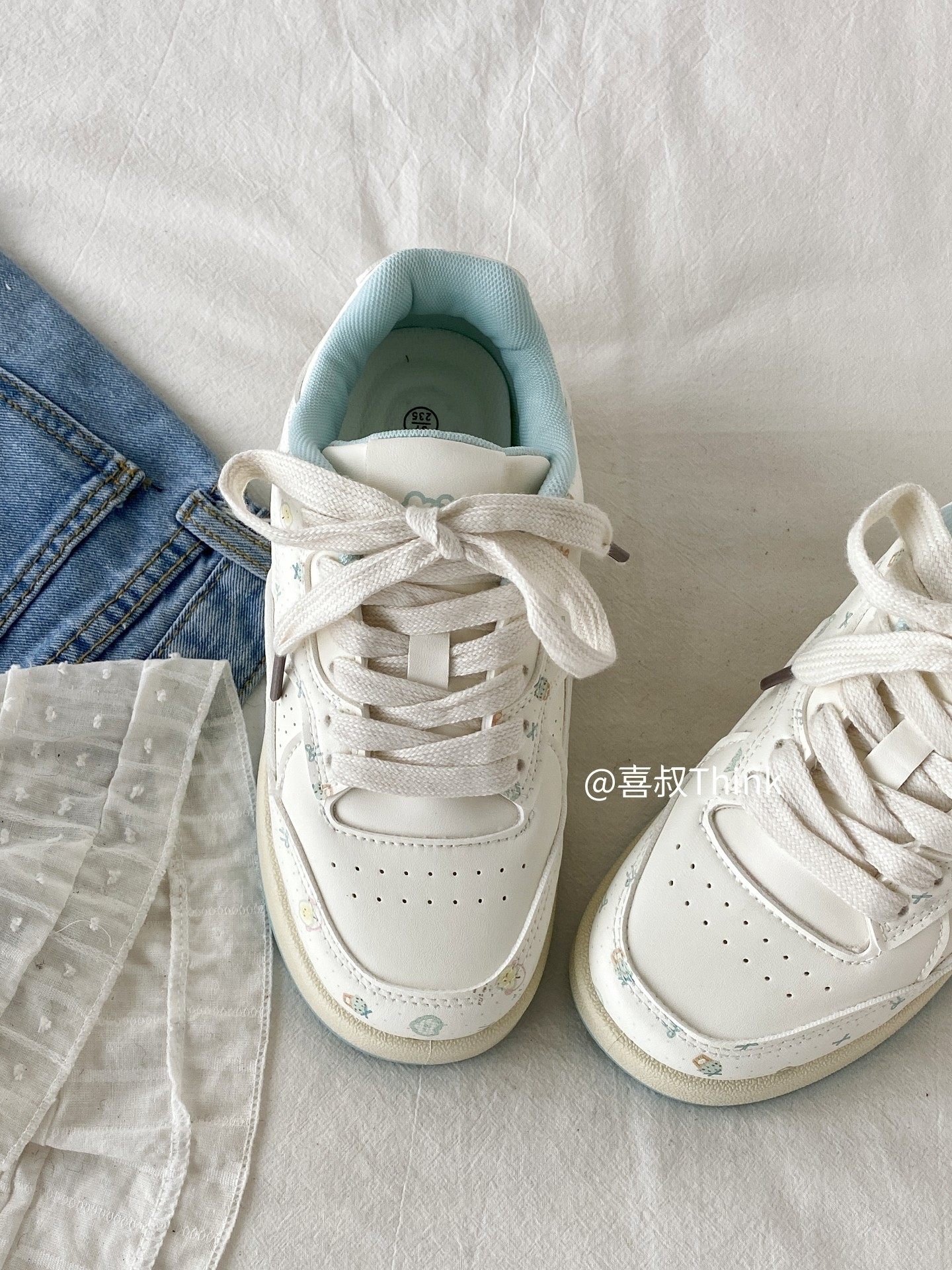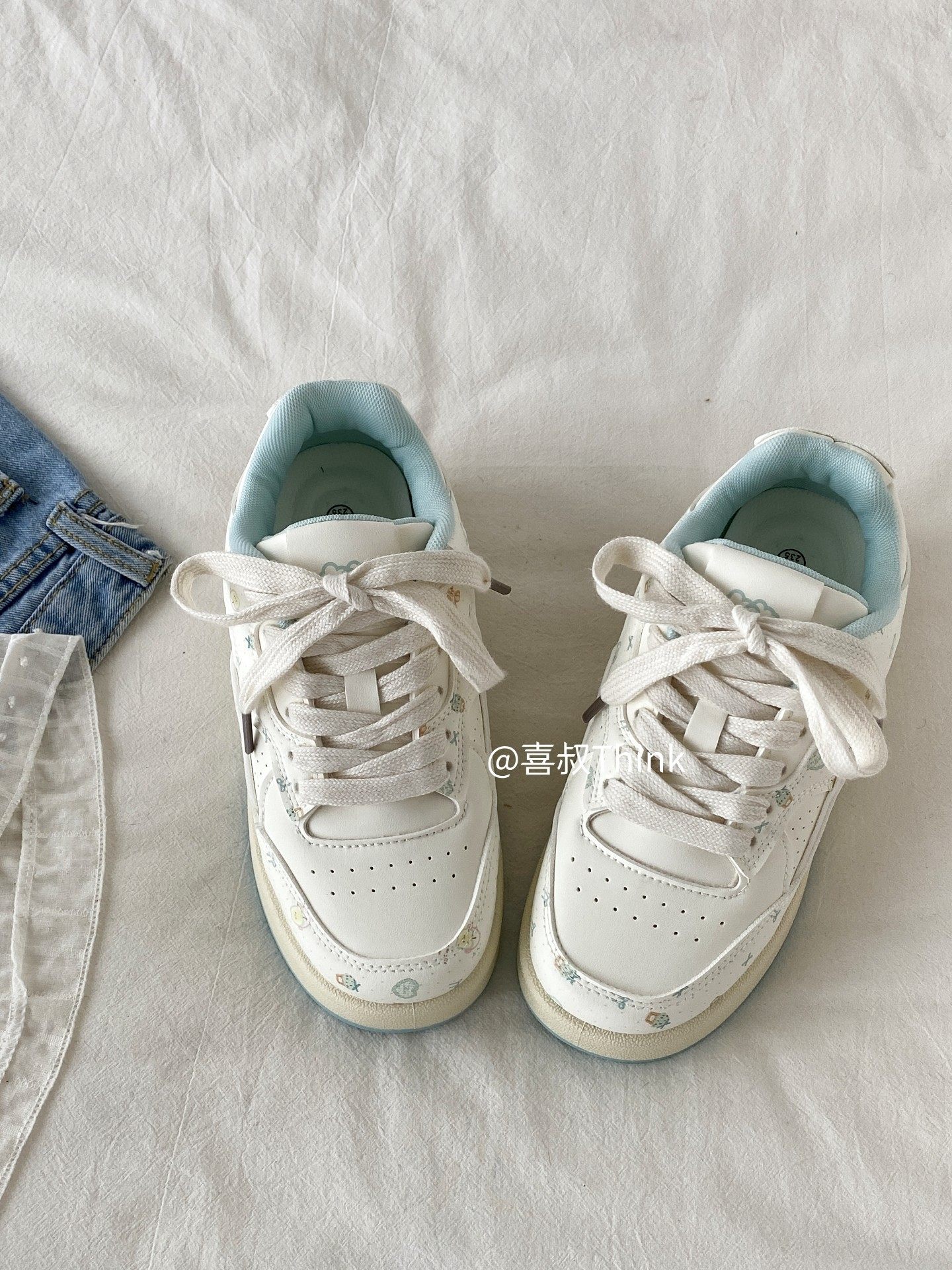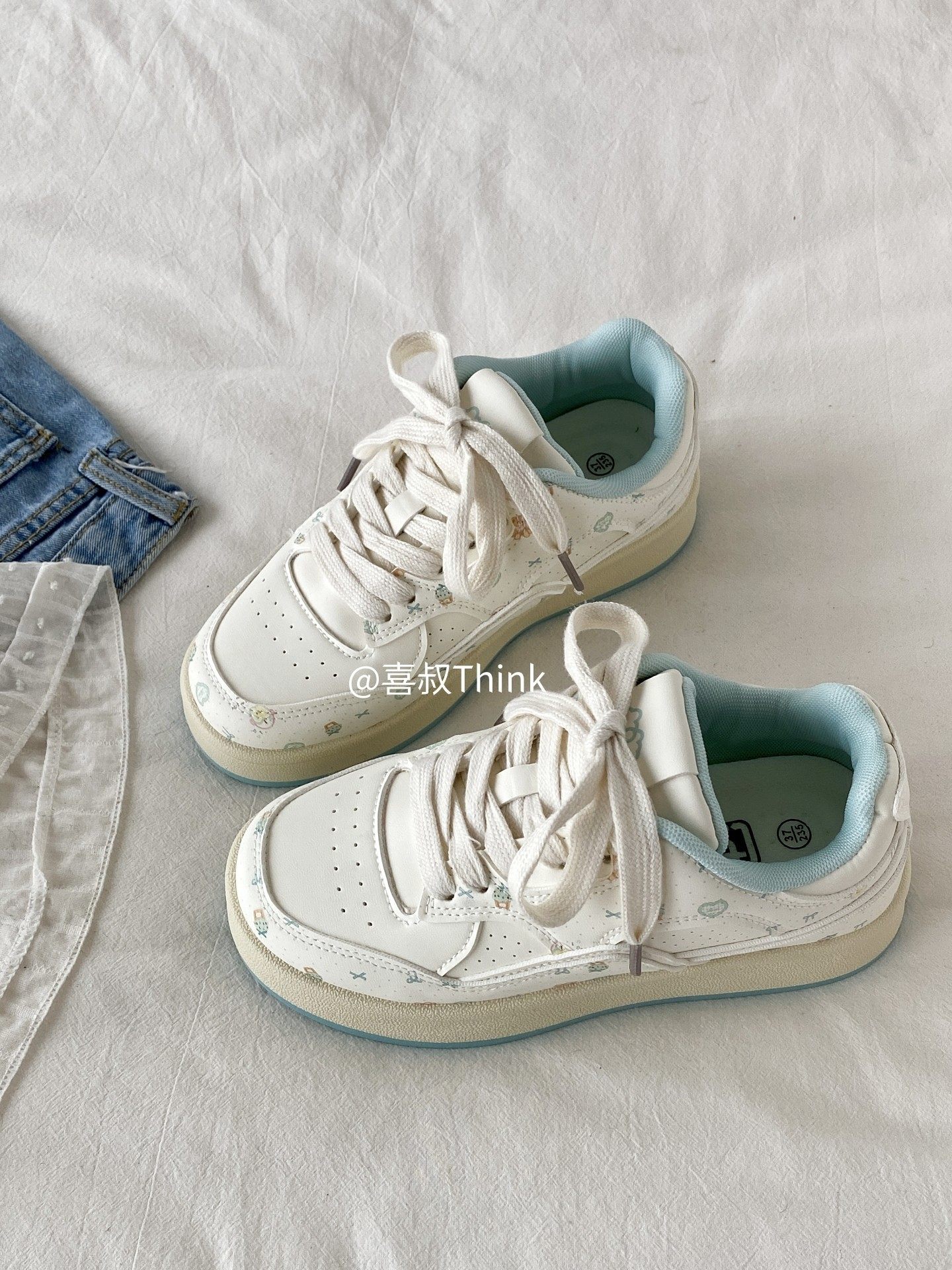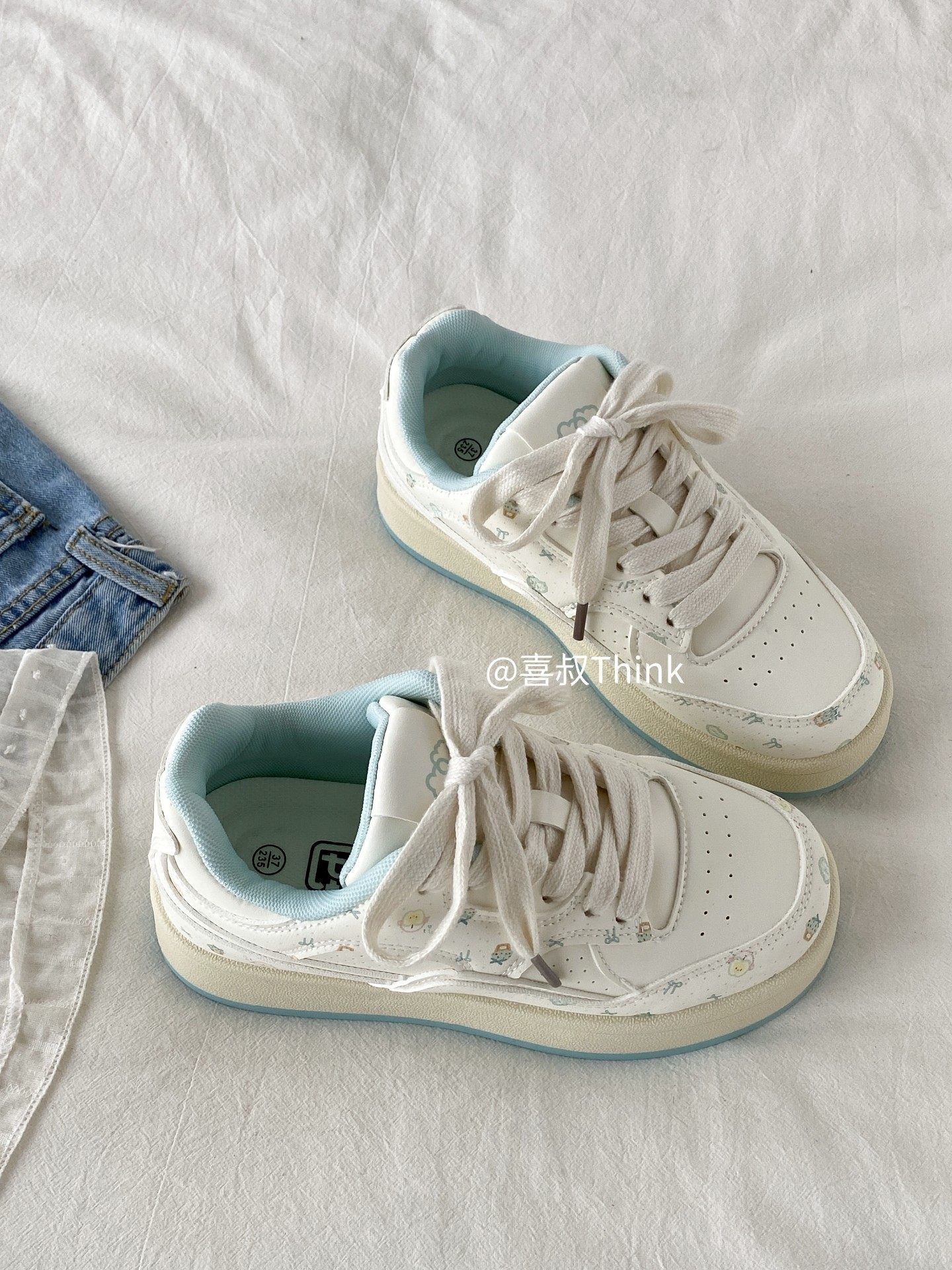 Spring Niche Cartoon Print White Sneakers for Women 2026 New Thick-Soled Sneakers Student Sports Casual Loafers Trendy