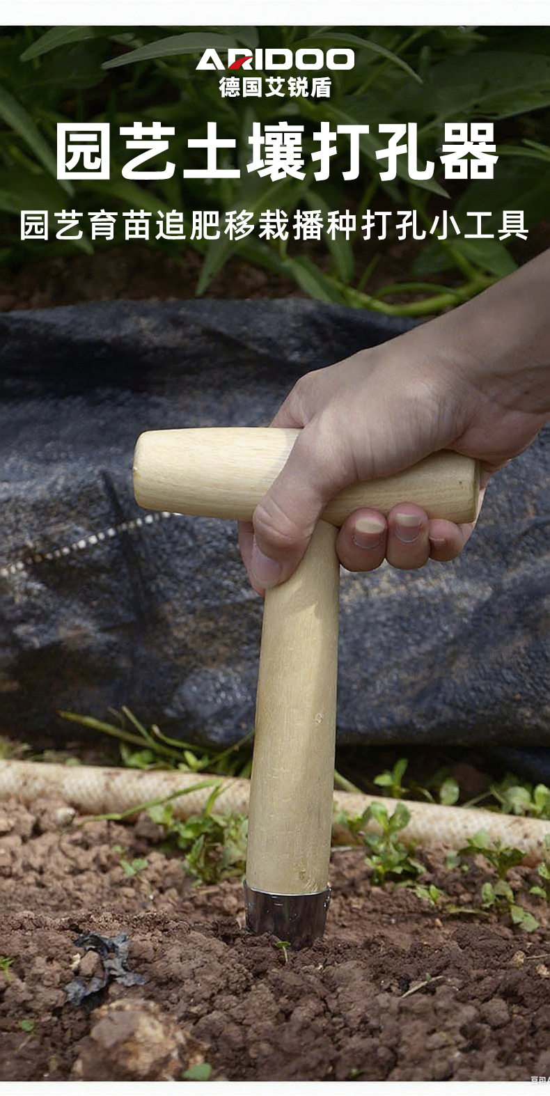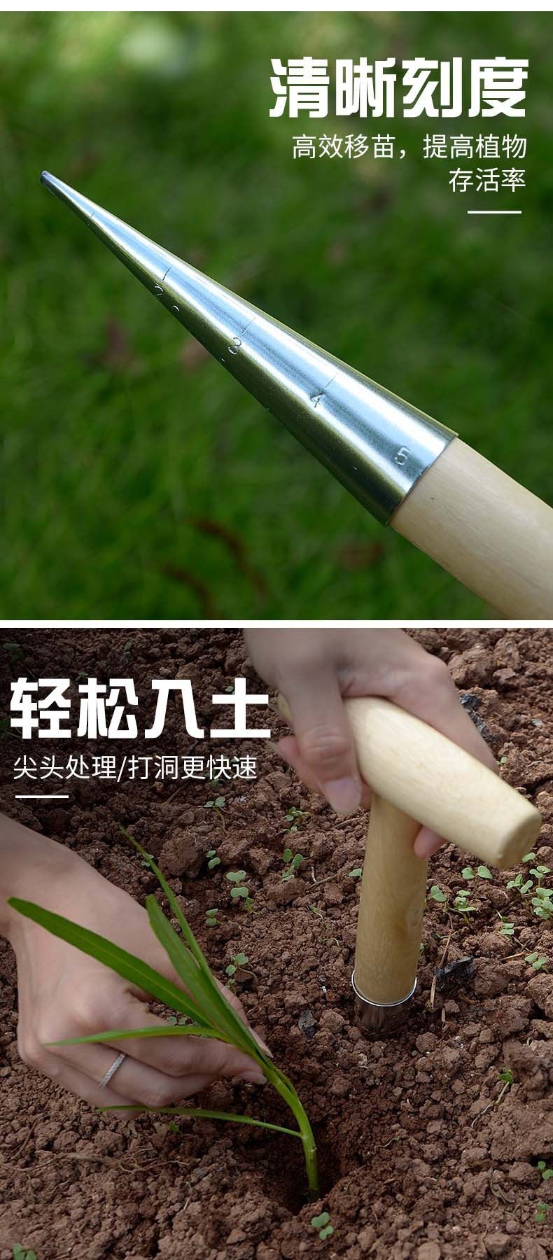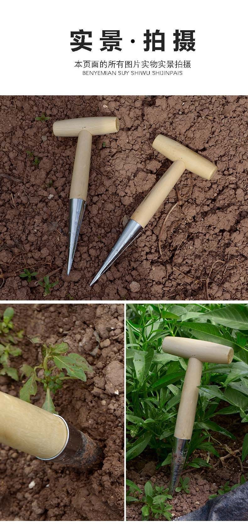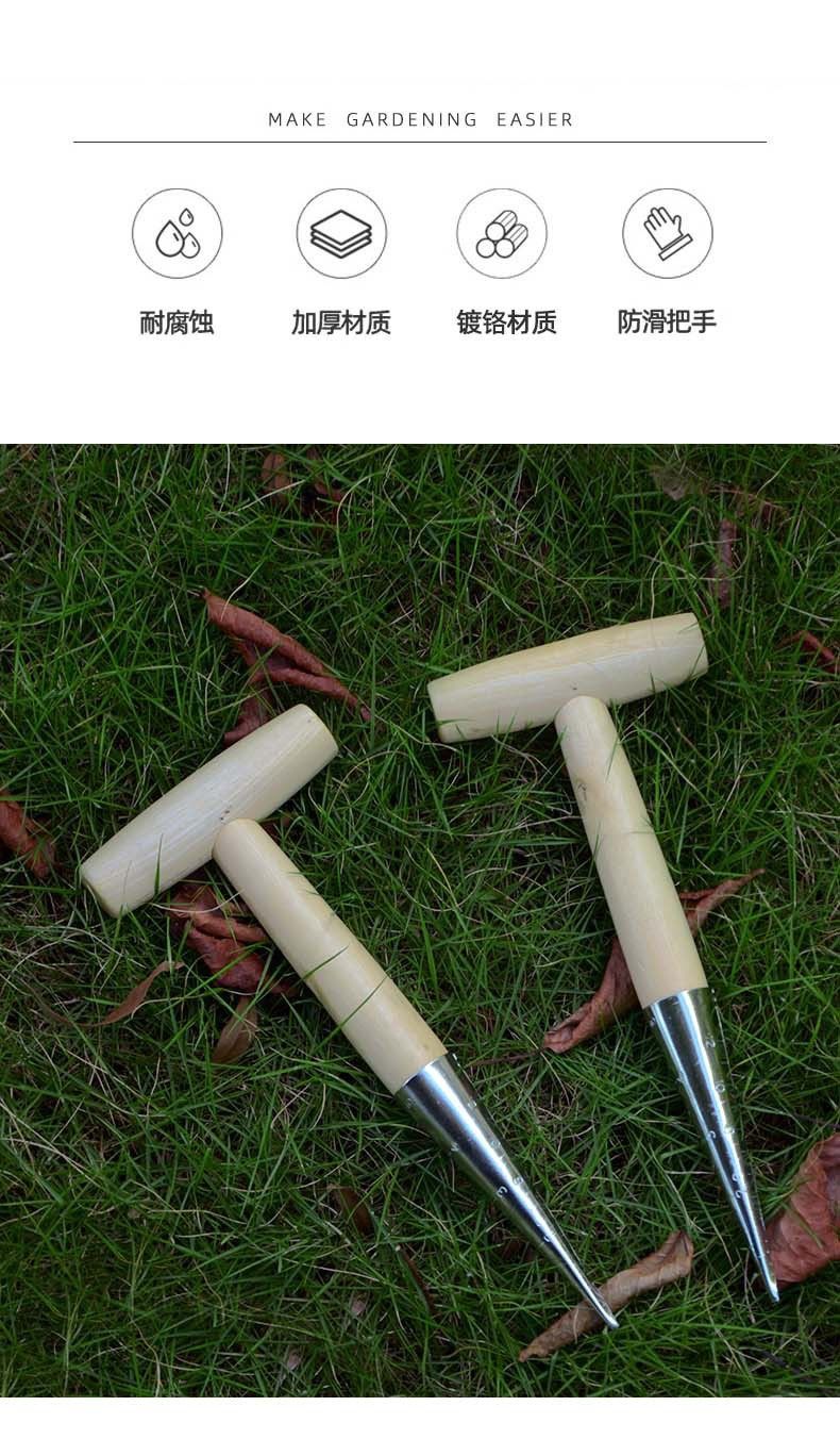 Garden Tool for Home Gardening, Small Tool for Making Holes in Soil with Wooden Handle and Pointed Tip, for Planting Vegetables and Flowers, Fertilizing, Seedling Cultivation, Transplanting, Soil Drilling Machine