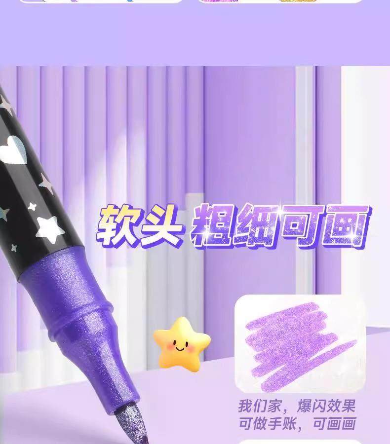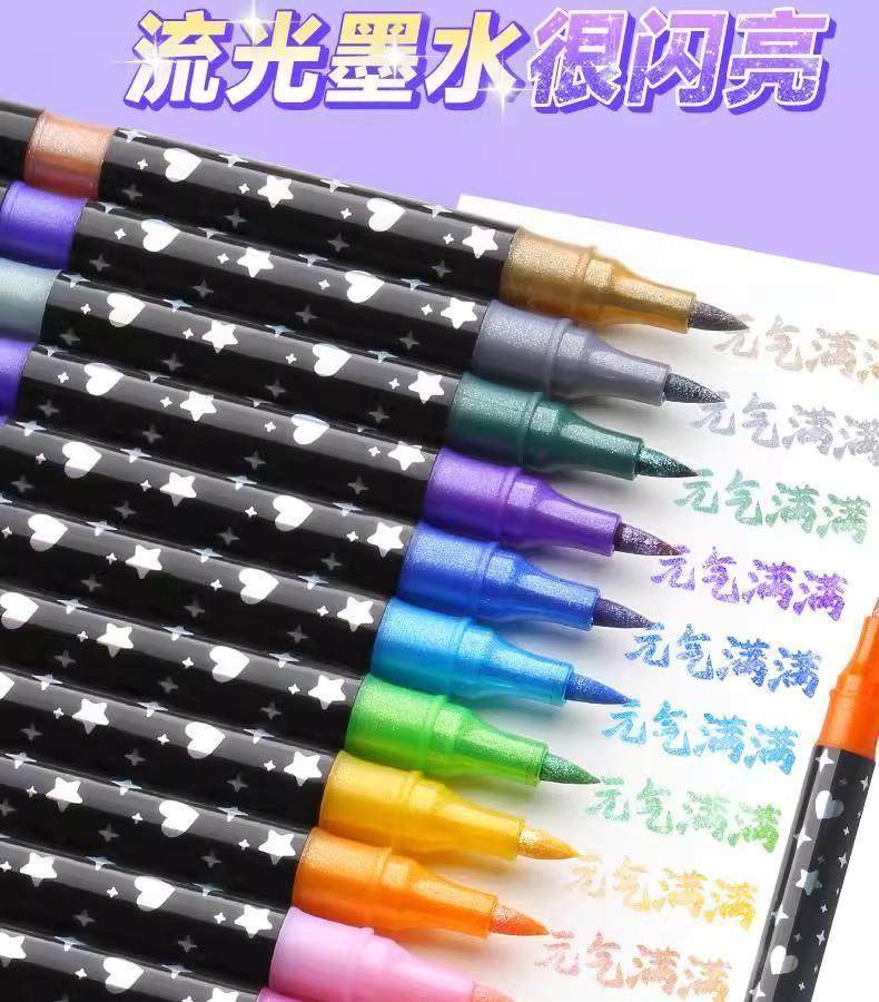 Double-Ended Glitter Marker Pen, Soft Tip Pearlescent Drawing Pen, Student Planner Gel Highlighter, Glitter Watercolor Pen, Acrylic
