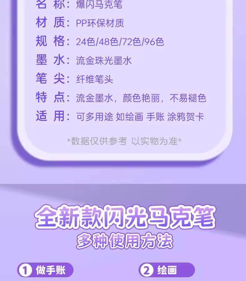 | Color Classification | 【96 Colors? Dual Tip, Dual Color】48 Marker Pens? 100% Extra Glitter Ink? Safe and Odorless,[72 Colors? Double-Headed and Two-Color] 36 Markers? 100% Added Glitter Ink? Safe and Odorless,【48 Colors? Dual Tip, Dual Color】24 Marker Pens? 100% Extra Glitter Ink? Safe and Odorless,【24 Colors? Dual Tip, Dual Color】12 Marker Pens? 100% Extra Glitter Ink? Safe and Odorless,【96 Colors? Dual Tip, Dual Color】48 Marker Pens + 24 Free Gifts? 100% Extra Glitter Ink? Safe and Odorless,[72 Colors? Double-Headed and Two-Color] 36 Markers + 24 Gifts? 100% Extra Glitter Ink? Safe and Odorless,【48 Colors? Dual Tip, Dual Color】24 Marker Pens + 24 Free Gifts? 100% Extra Glitter Ink? Safe and Odorless,【24 Colors? Dual Tip, Dual Color】12 Marker Pens + 24 Free Gifts? 100% More Glitter Ink? Safe and Odorless |