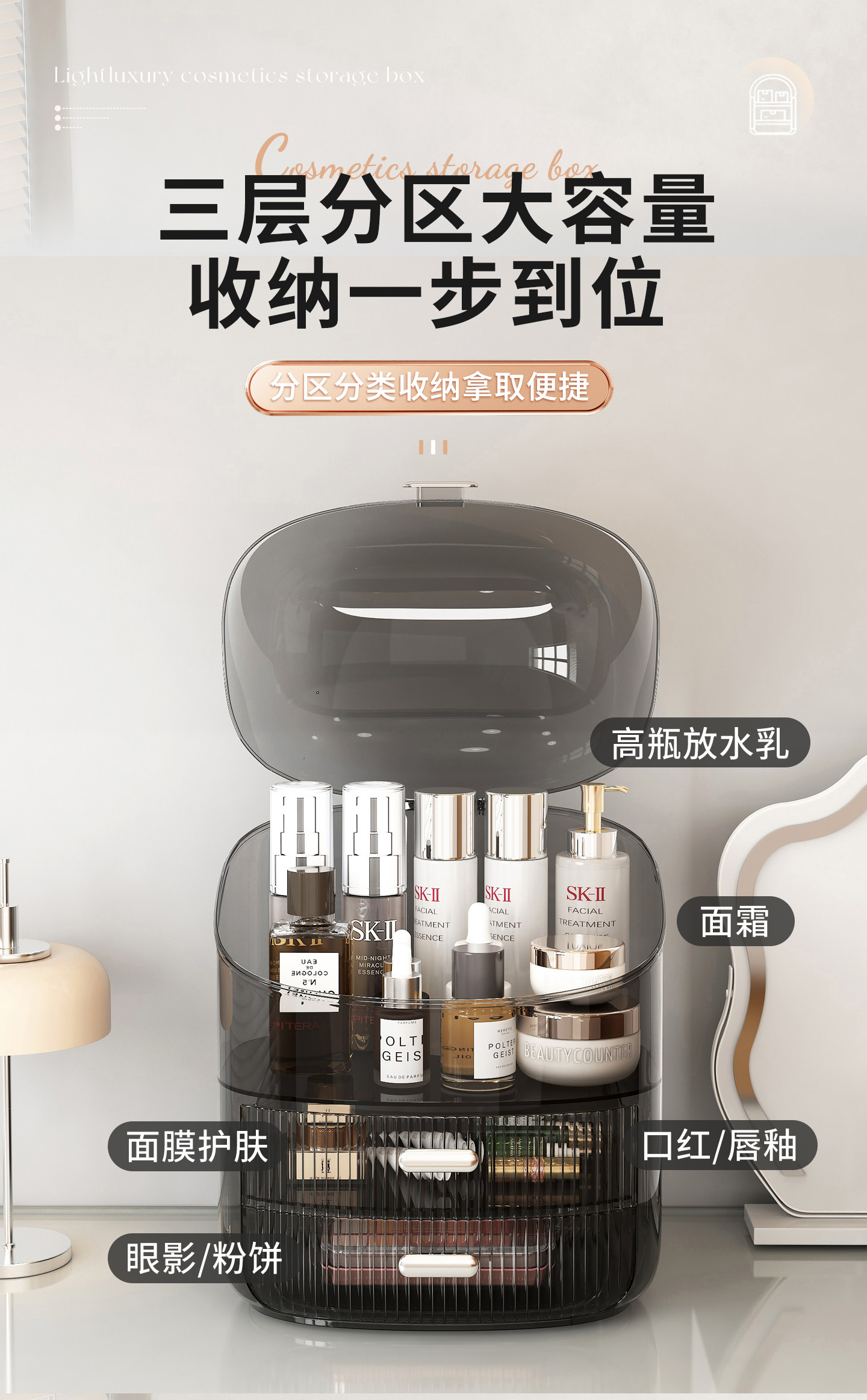 Transparent Organizing Box, Transparent Desktop Storage Box, Organizing Basket, Cosmetics, Facial Masks, Snacks, Dormitory Drawers, Multi-Layer Storage