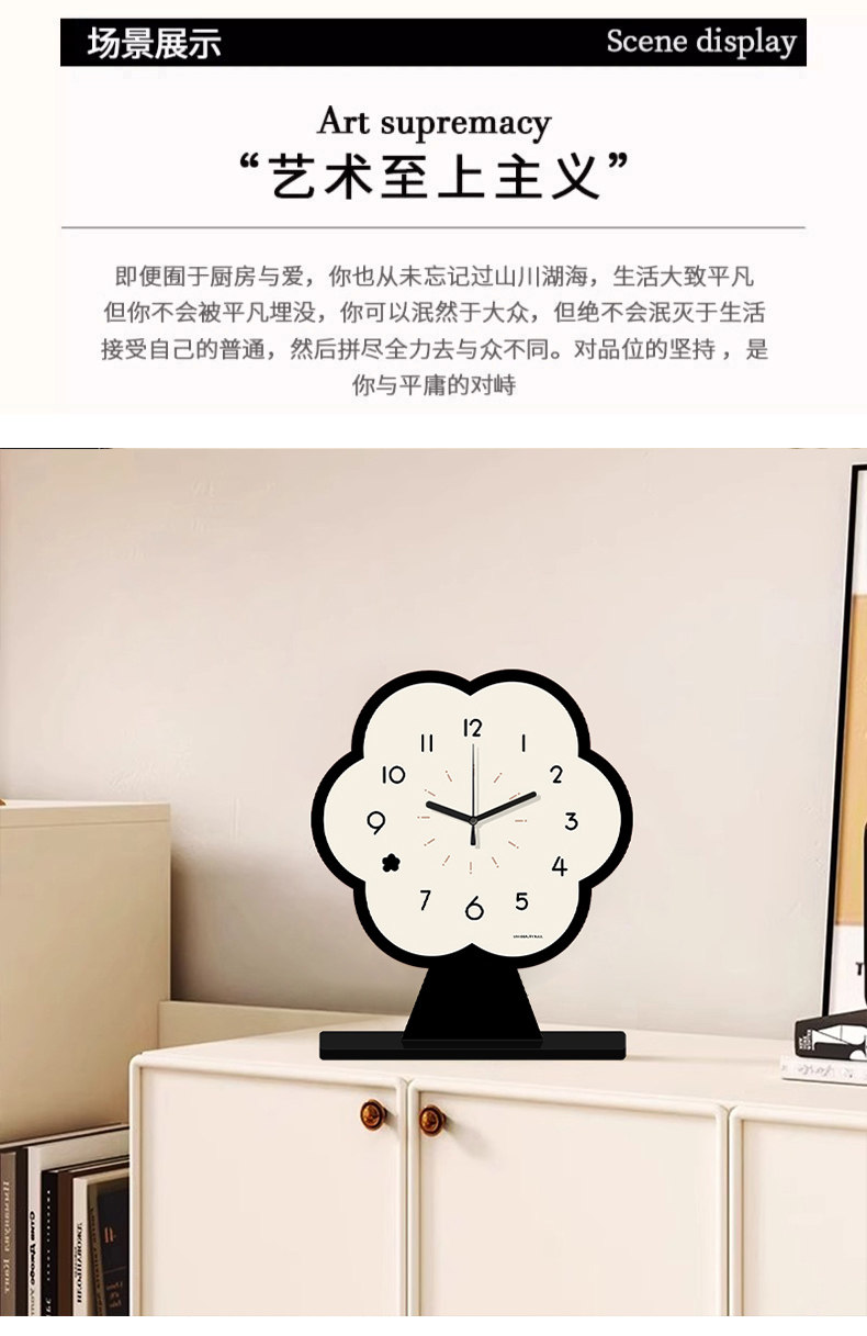2026 New Creative Flower-Shaped Desk Clock, Simple and Stylish Desktop Clock, Black and White Clock, Pendulum Clock
