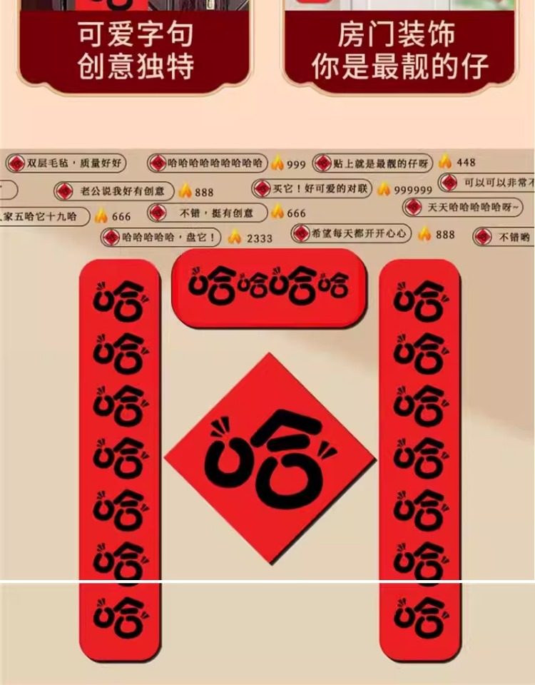 | Color Classification | Year of the Horse Creative Riddle Couplets [Pp Paper Material] - Includes Adhesive,Hahahaha Creative Couplets 01 [Pp Paper Material] - Includes Adhesive,Hahahaha Creative Couplets 02 [Pp Paper Material] Free Glue,Langli Lang Couplet Set [Pp Paper Material] Glue Included,"The World Is Worth It" Couplets Set [Pp Paper Material] - Includes Adhesive,Guanjing a Couplet Set [Pp Paper Material] Glue Included,Guanjing B Couplet Set [Pp Paper Material] Glue Included,Happy First Couplets Set [Pp Paper Material] - Includes Adhesive,"Captivated by You" Couplets Set [Pp Paper Material] - Includes Adhesive,Hahahaha Couplet Set [Felt] Comes with Glue,Wangwangwangwang Couplet Set [Felt] Comes with Glue,Hee Hee Hee Couplet Set [Felt] Comes with Glue,Do Whatever You Want Couplet Set [Felt] Free Glue,Hip-Hop Hair 6-Pair Set [Felt] - Includes Adhesive,Fa Fa Fa Fa Couplet Set [Felt] Comes with Glue,Smooth and Smooth Couplet Set [Felt] Comes with Glue |