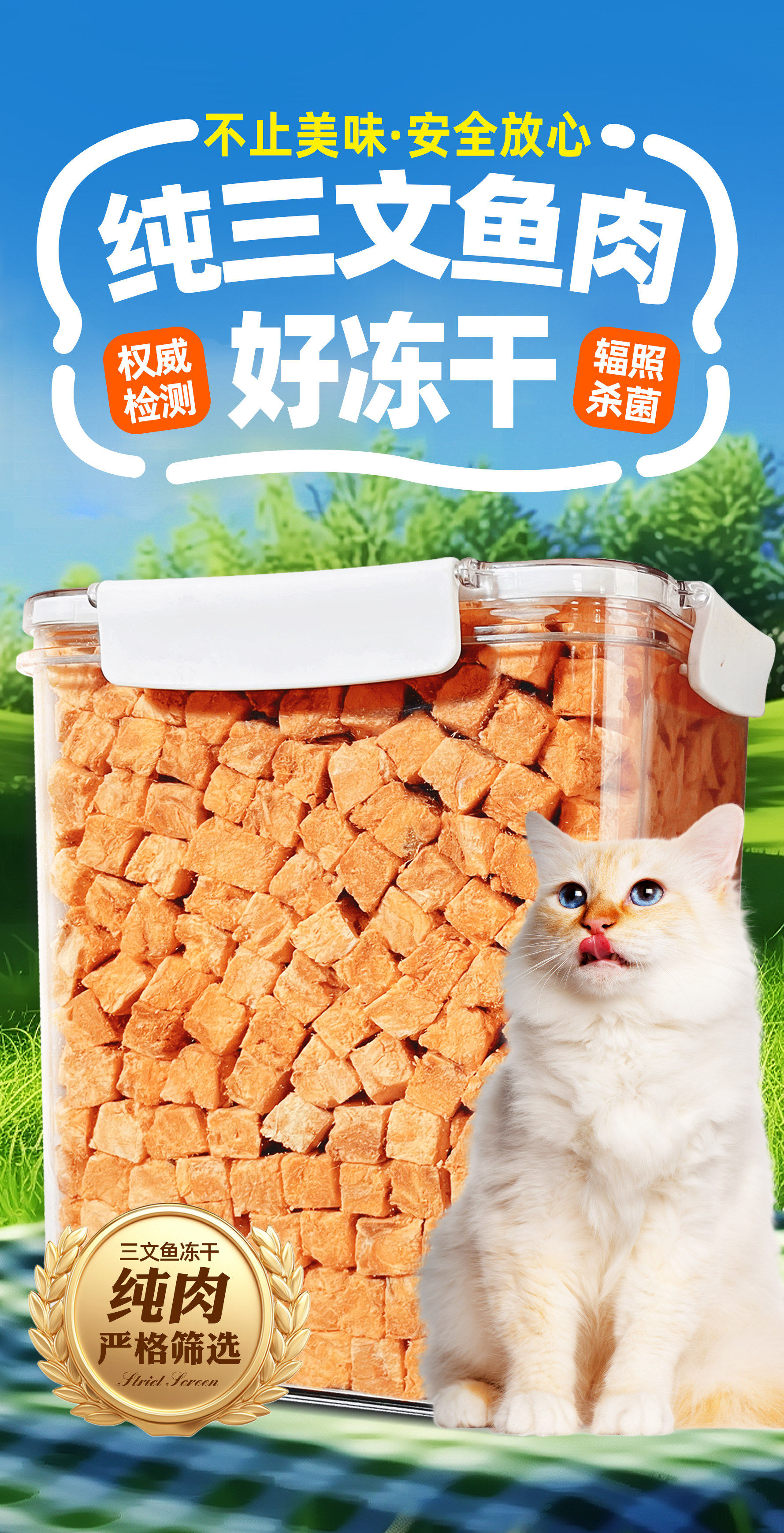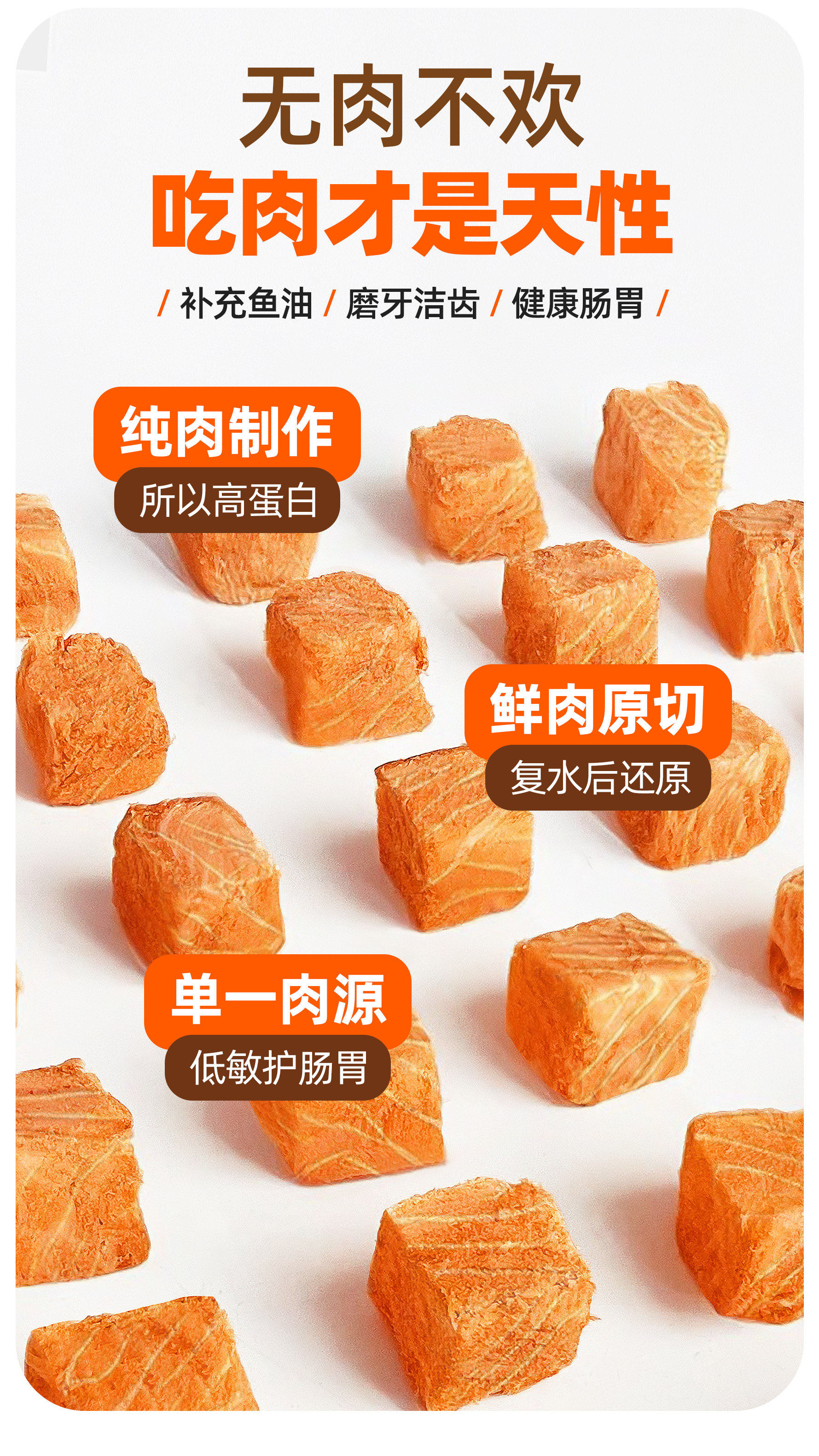Freeze-Dried Salmon Chunks, Nutritional Supplement Fish Bites with Fish Oil, Air-Dried Training Food Mix, Cat Food Companion, Pet Cat Snacks