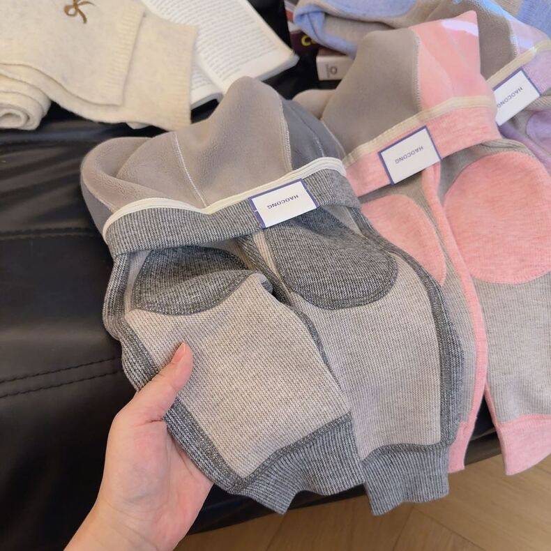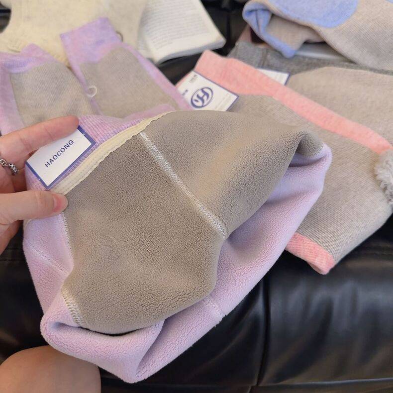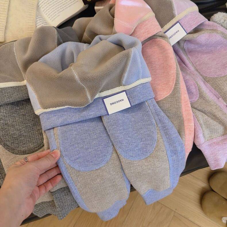 New School Uniform Magic Item for Autumn and Winter, Unisex Knee Patch Fleece-Lined Warm Pants, Thickened Deep-Cut Version