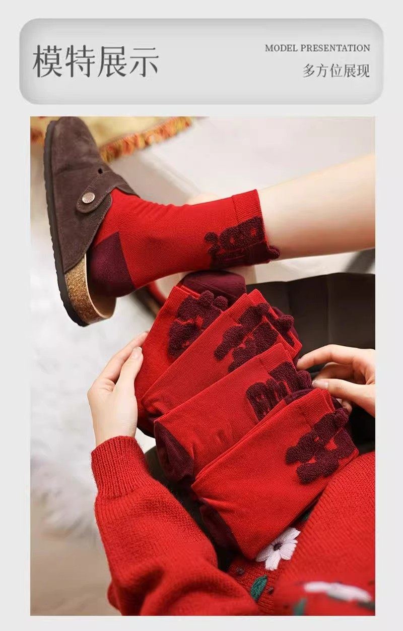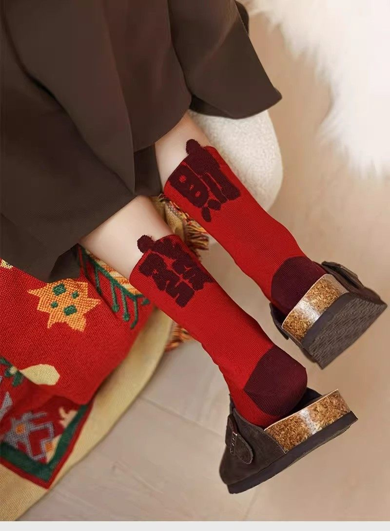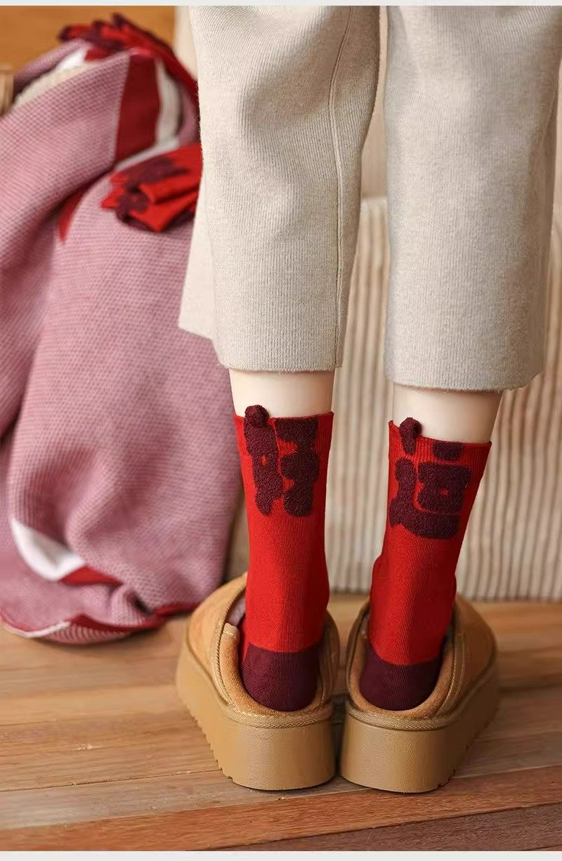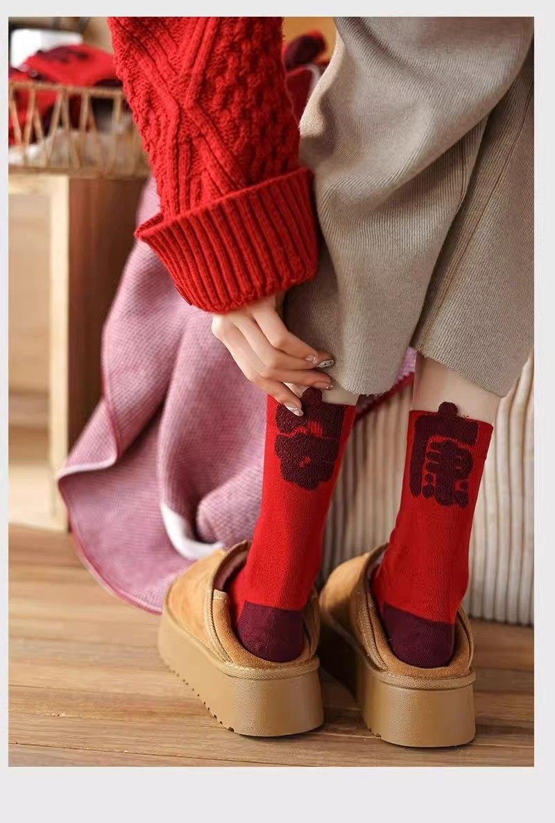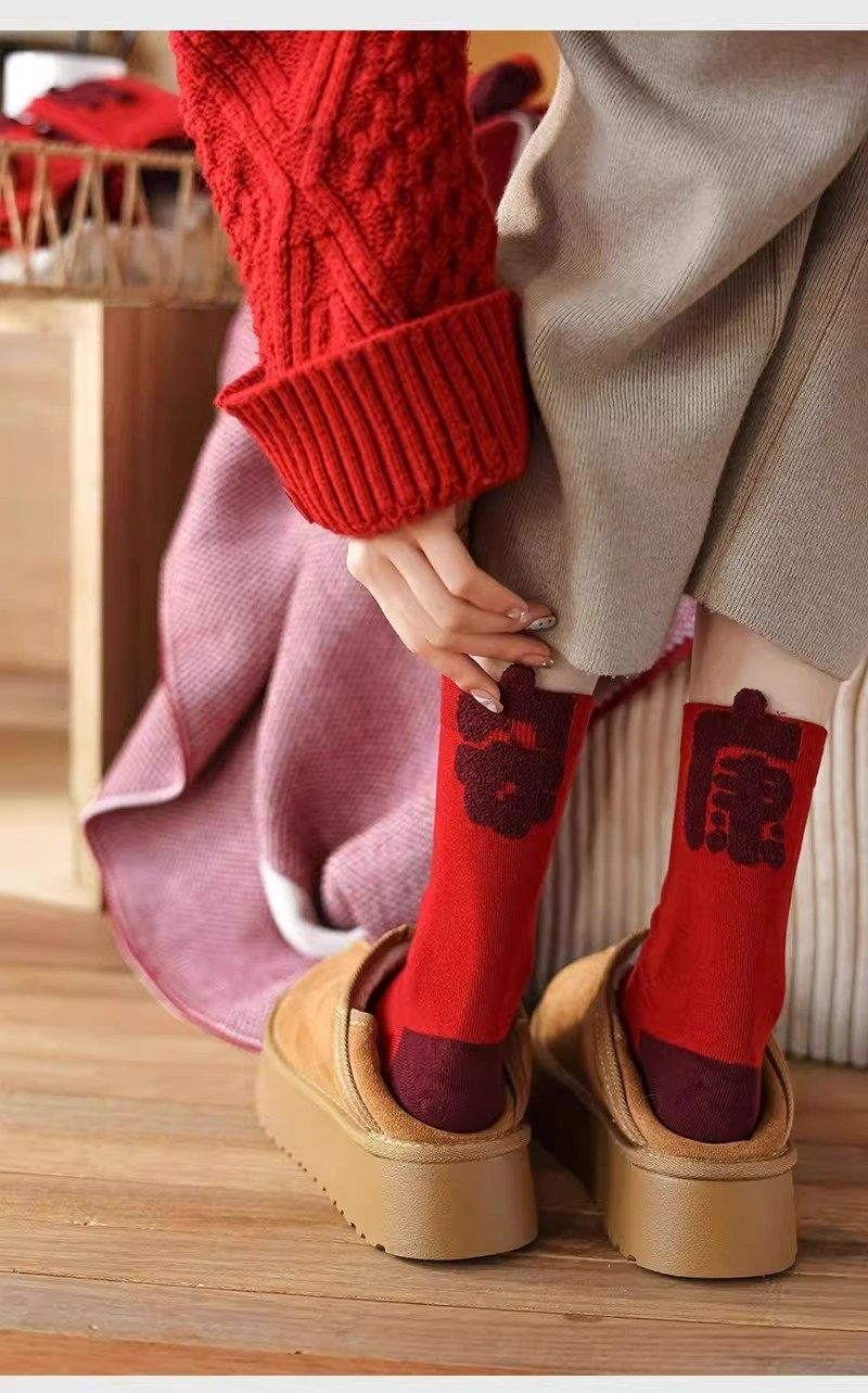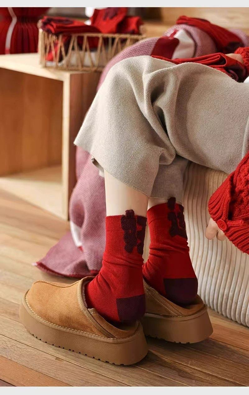 2026 New Zodiac Year Red Socks for Women, Mid-Calf Socks for the New Year, Good Luck and Fortune Gift, Year of the Horse Red Long Socks for Men