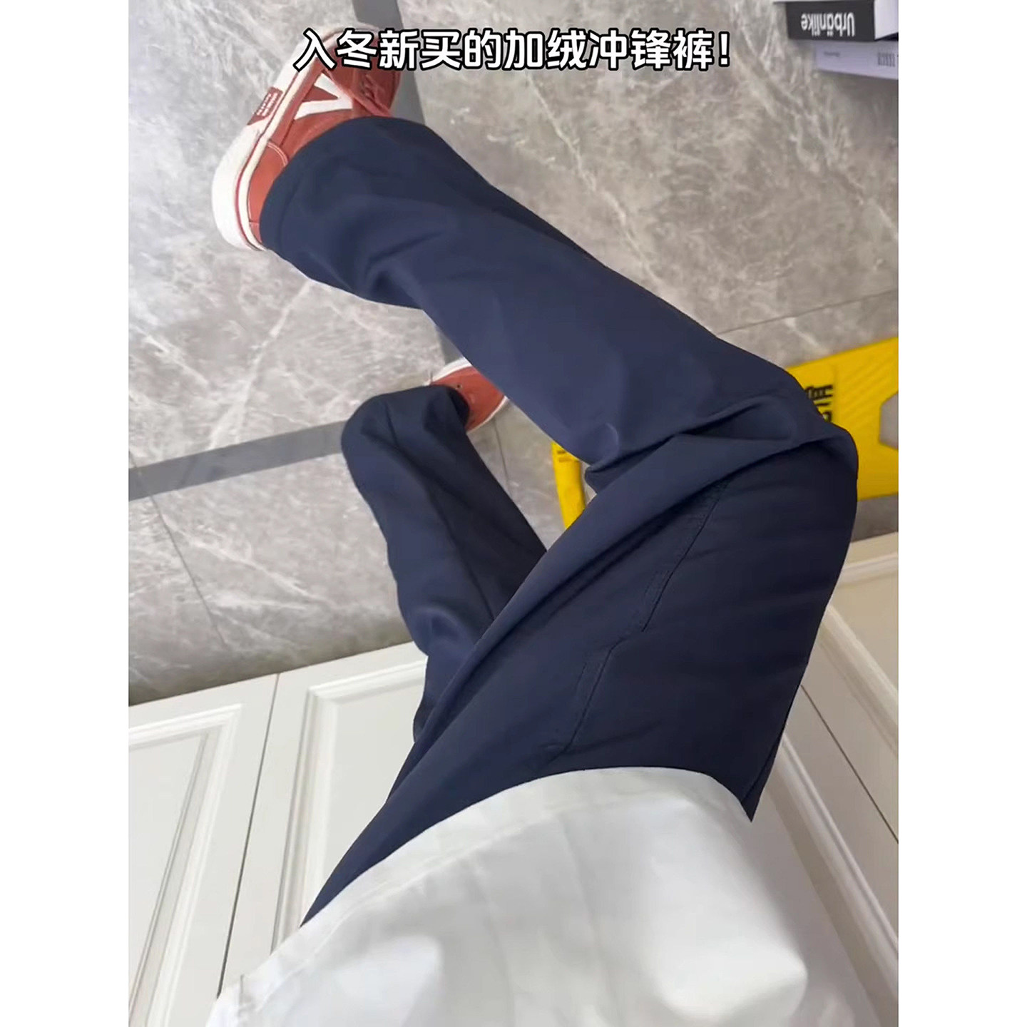 American-Style Navy Blue Diagonal-Cut Sweatpants for Men, Winter Functional Softshell Fleece-Lined Assault Pants, Three-Proof Warm Ski Pants