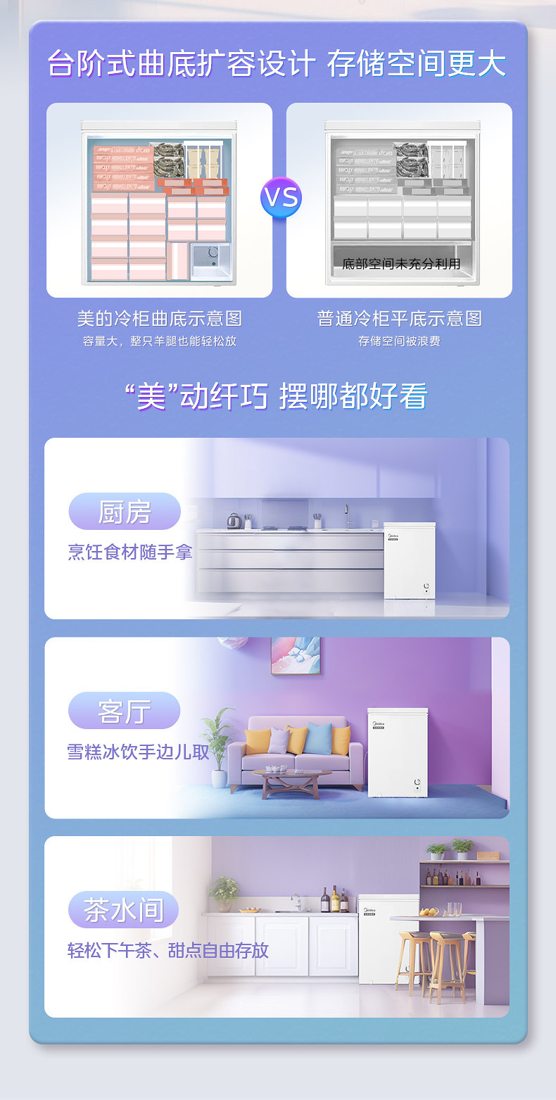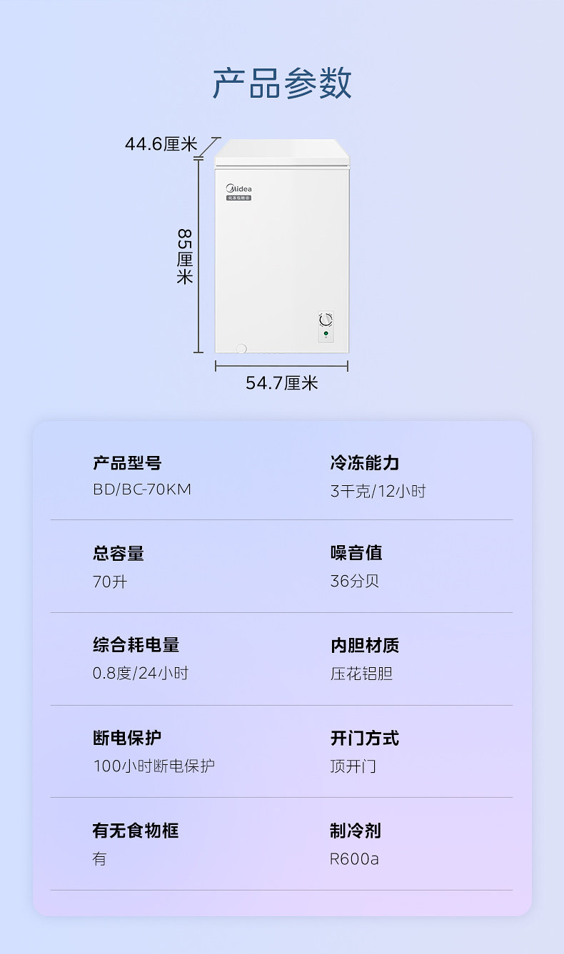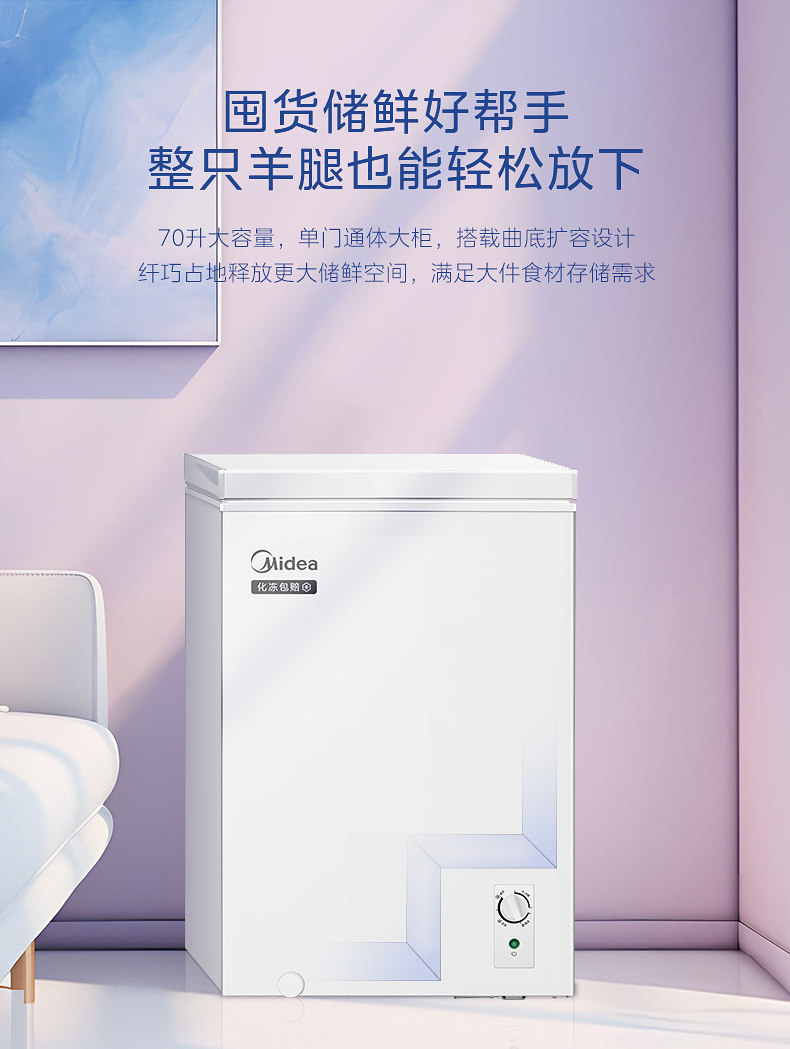 Midea 70-Liter Freezer for Home Use, Small Commercial Dual-Purpose Freezer and Refrigerator, Bedroom Refrigerator, Official Flagship Store