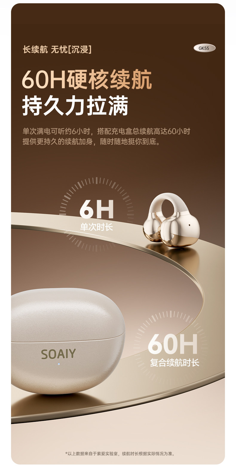 Sony Ericsson Gk55 Ear Clip Bluetooth Headset Wireless Heavy Bass 2026 New Model Non-In-Ear Open Air Conduction Sports
