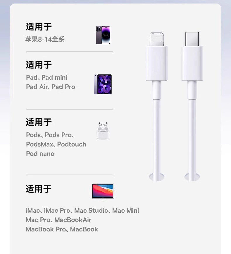 | Color Classification | [Applicable to 8-14 Series] Apple Pd Fast Charging Cable 1.0m,[Applicable to 8-14 Series] Apple Pd Fast Charging Cable 1.5m,[Applicable to 8-14 Series] Apple Pd Fast Charging Cable 2.0m |
