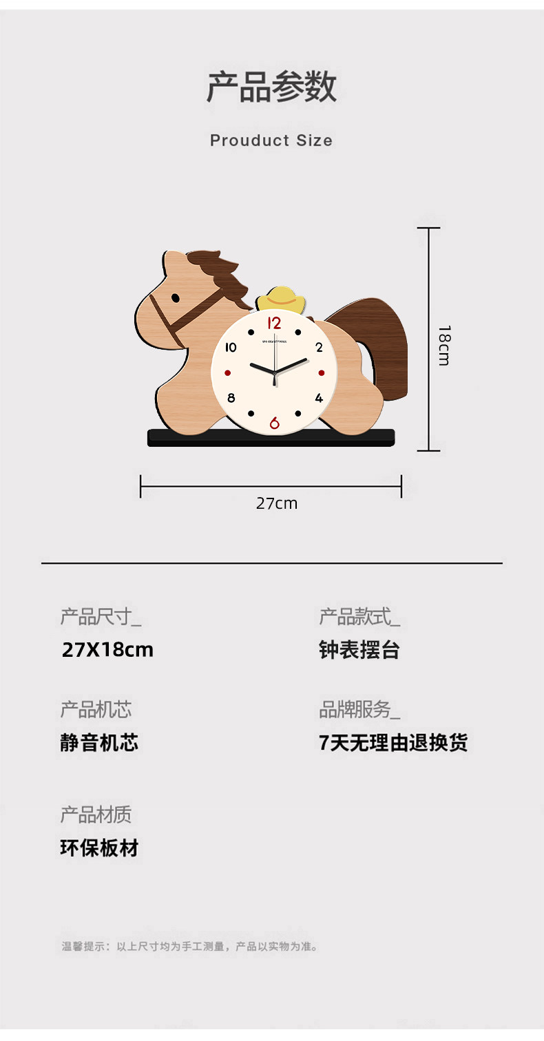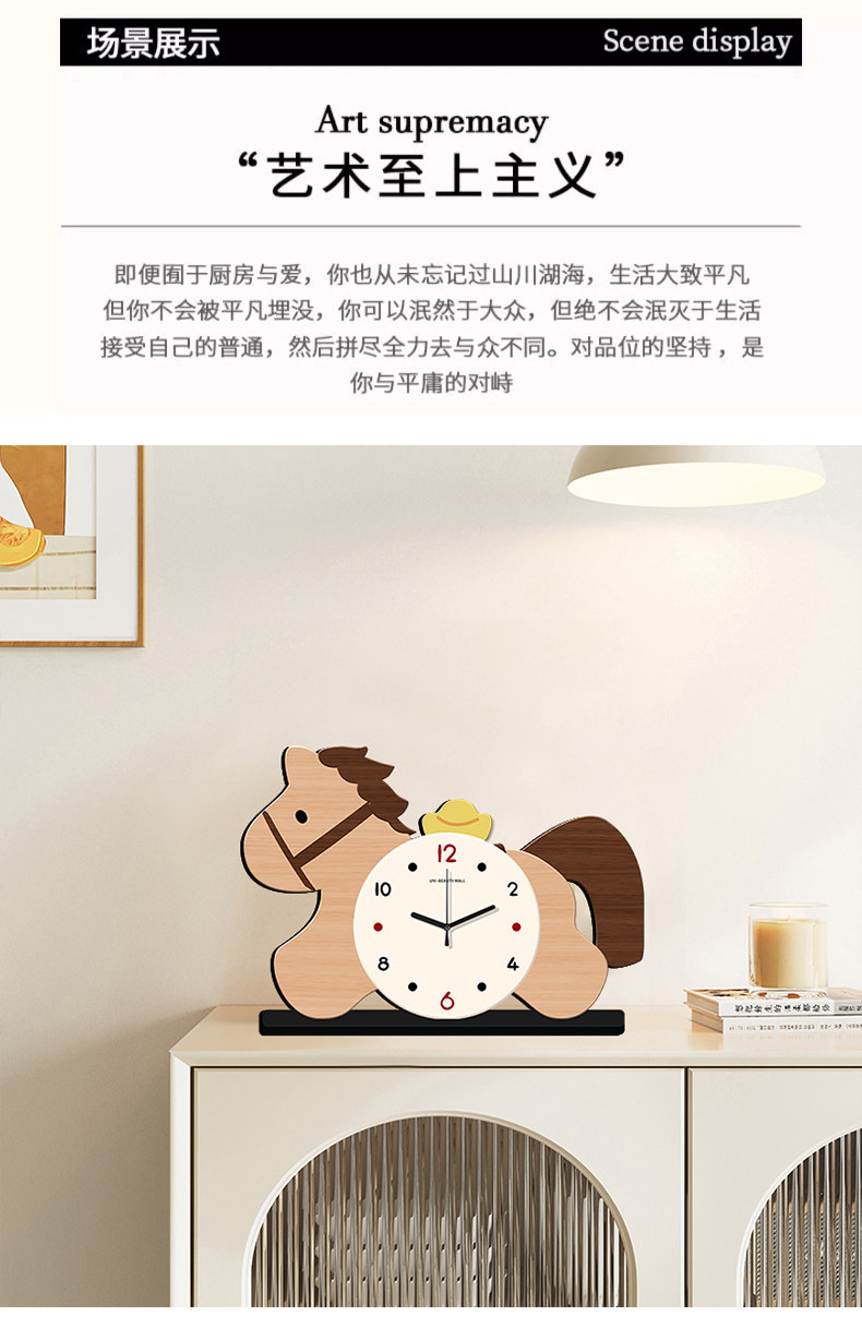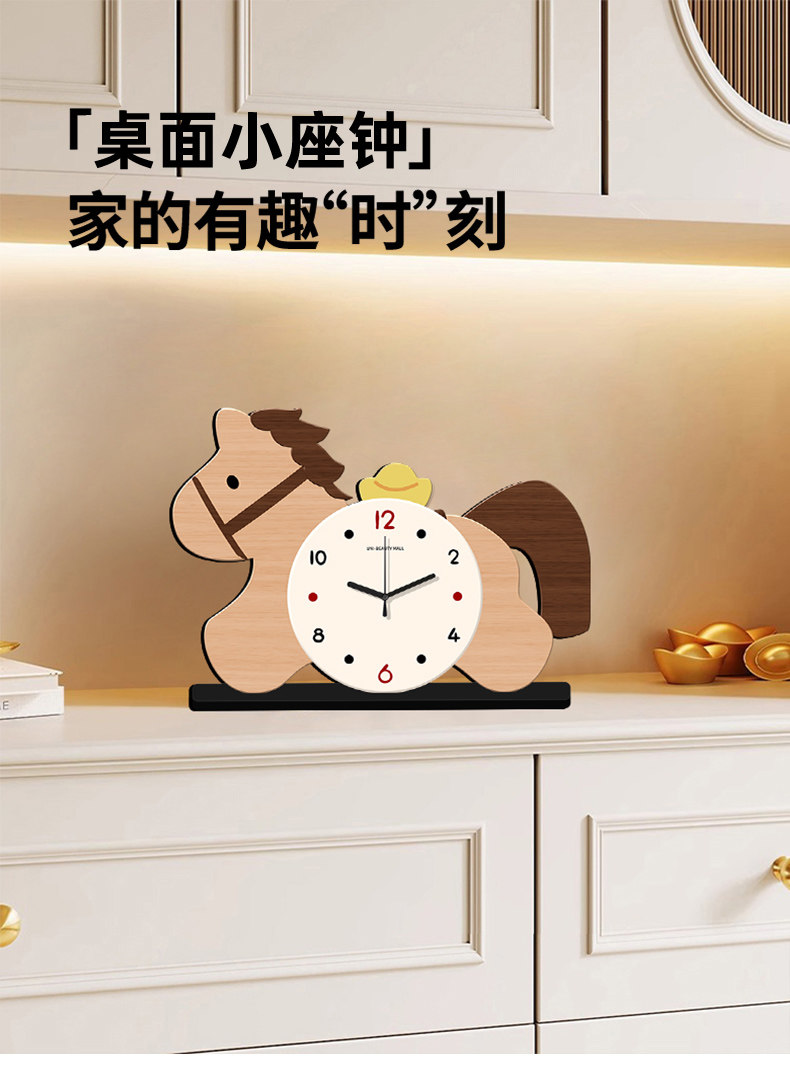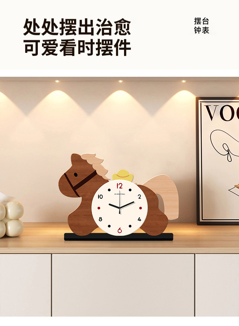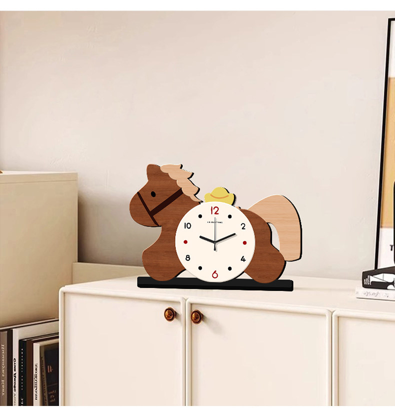 Cute Pony-Shaped Desk Clock Wooden Tabletop Clock Creative Ornament Decorative Pendulum Clock 2026 New Model Table Clock