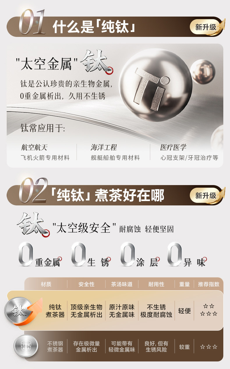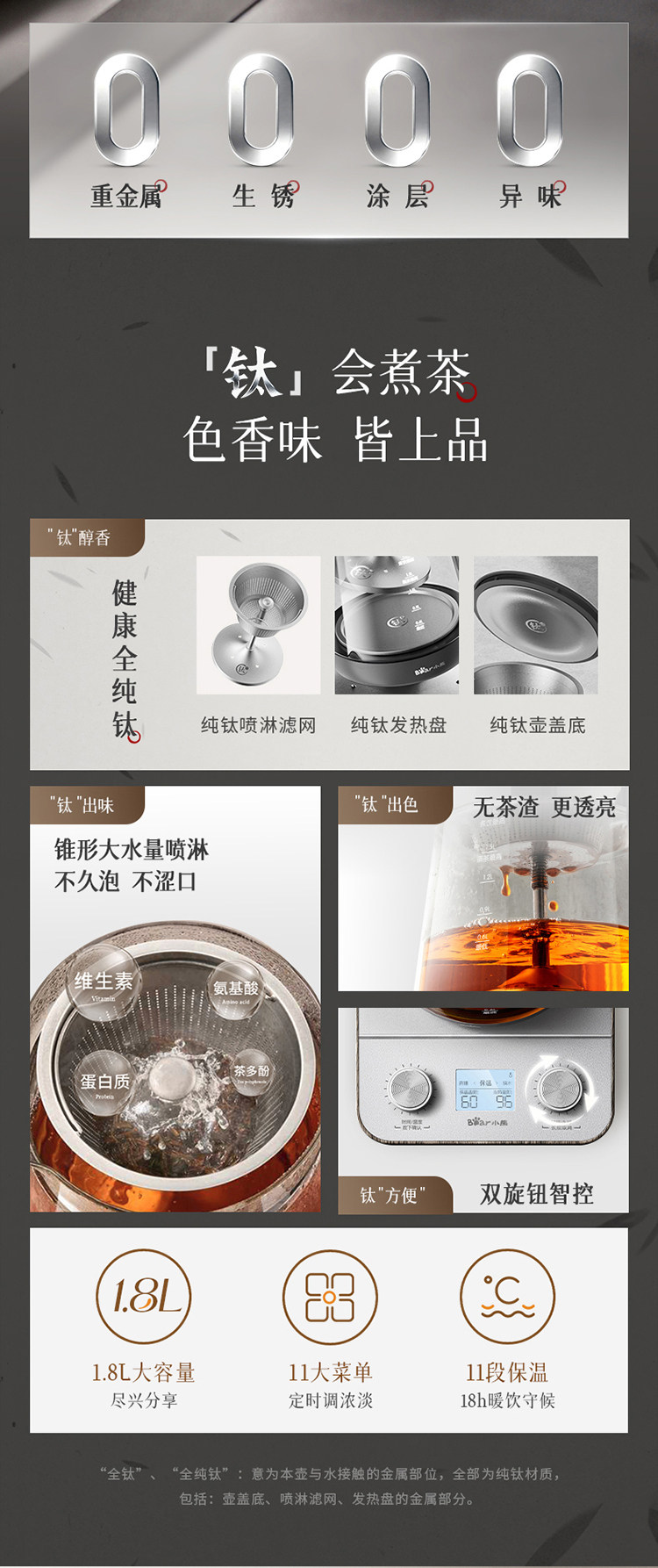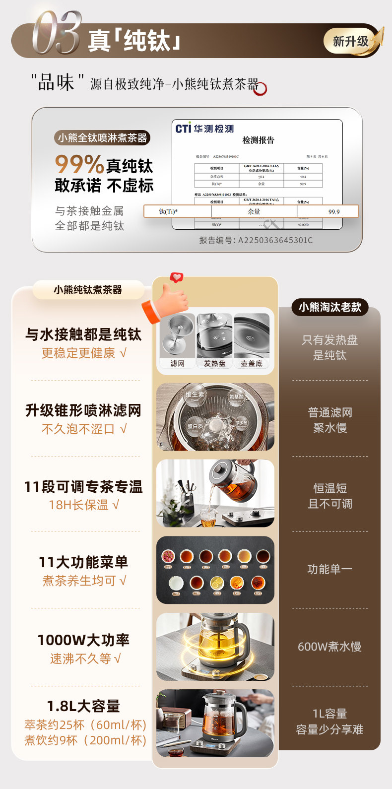 Bear Brand Pure Titanium Tea Maker, Large Capacity Health-Preserving Kettle, Spray-Type Tea Steaming and Brewing Kettle, Multifunctional 2025 New Model