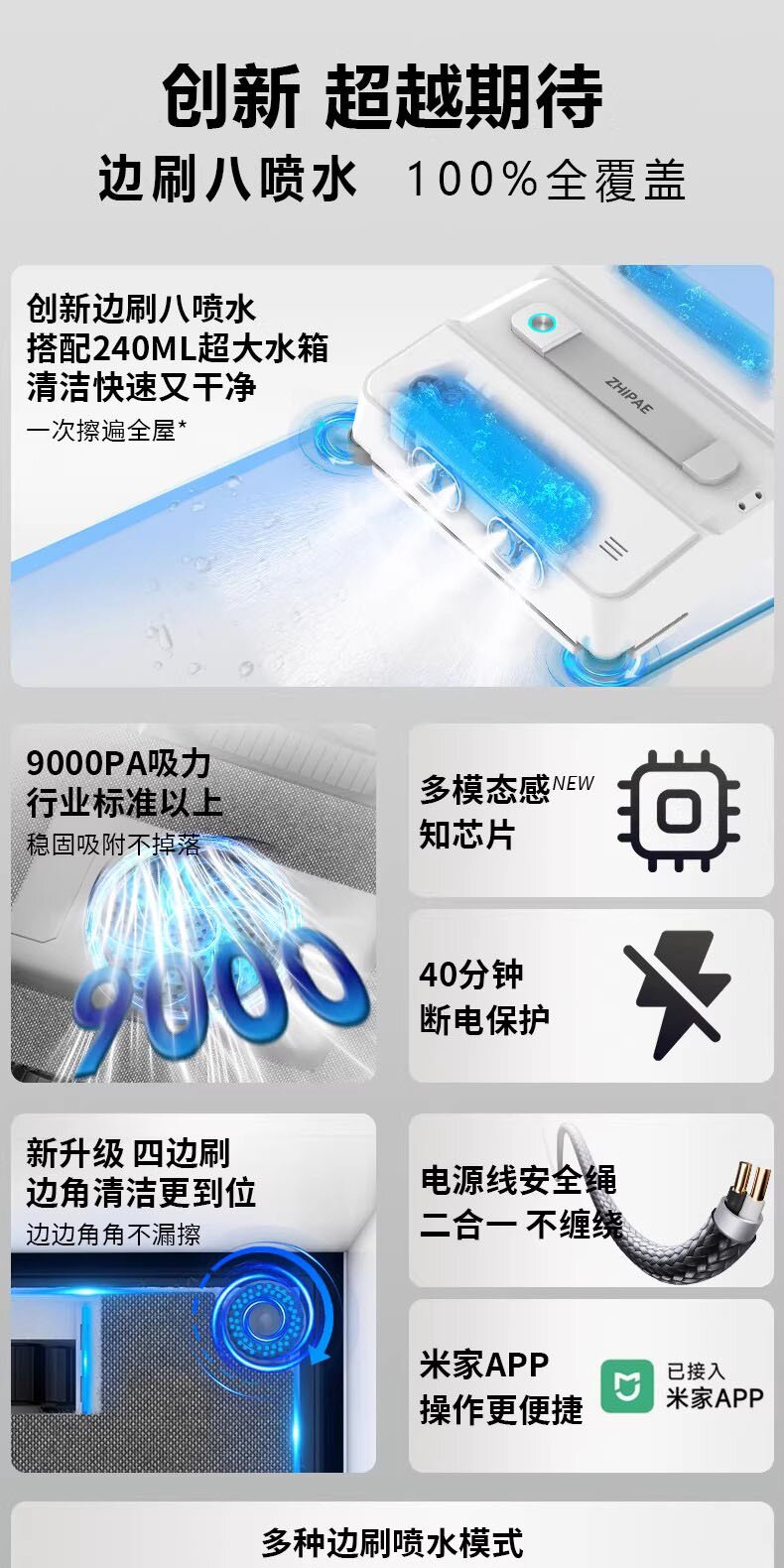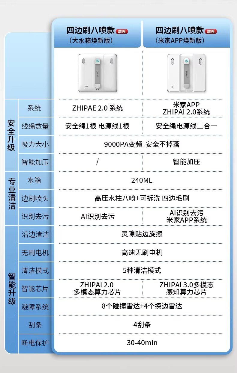 | Color Classification | 【Eight Spray Enhancements✅[Mi Home App Smart Path] 2K Price Point, Experience 2-in-1 Cables,[Eight Spray Enhancement + Side Brush] Water Column Type✅The Edges and Corners Are Seamless.,[Eight Sprays + Side Brush] 240ml Large Water Tank Battery Life,【Quad-Spray Performance + Side Brush】Suitable for Railings > Small Windows |