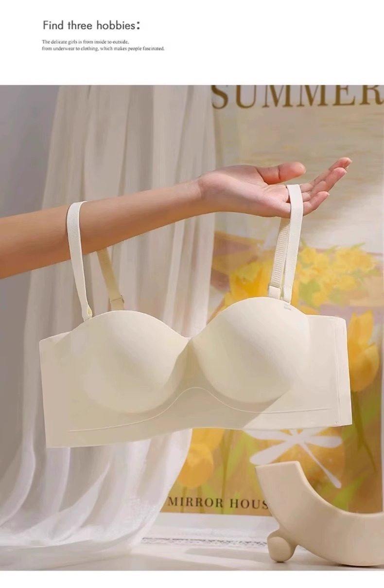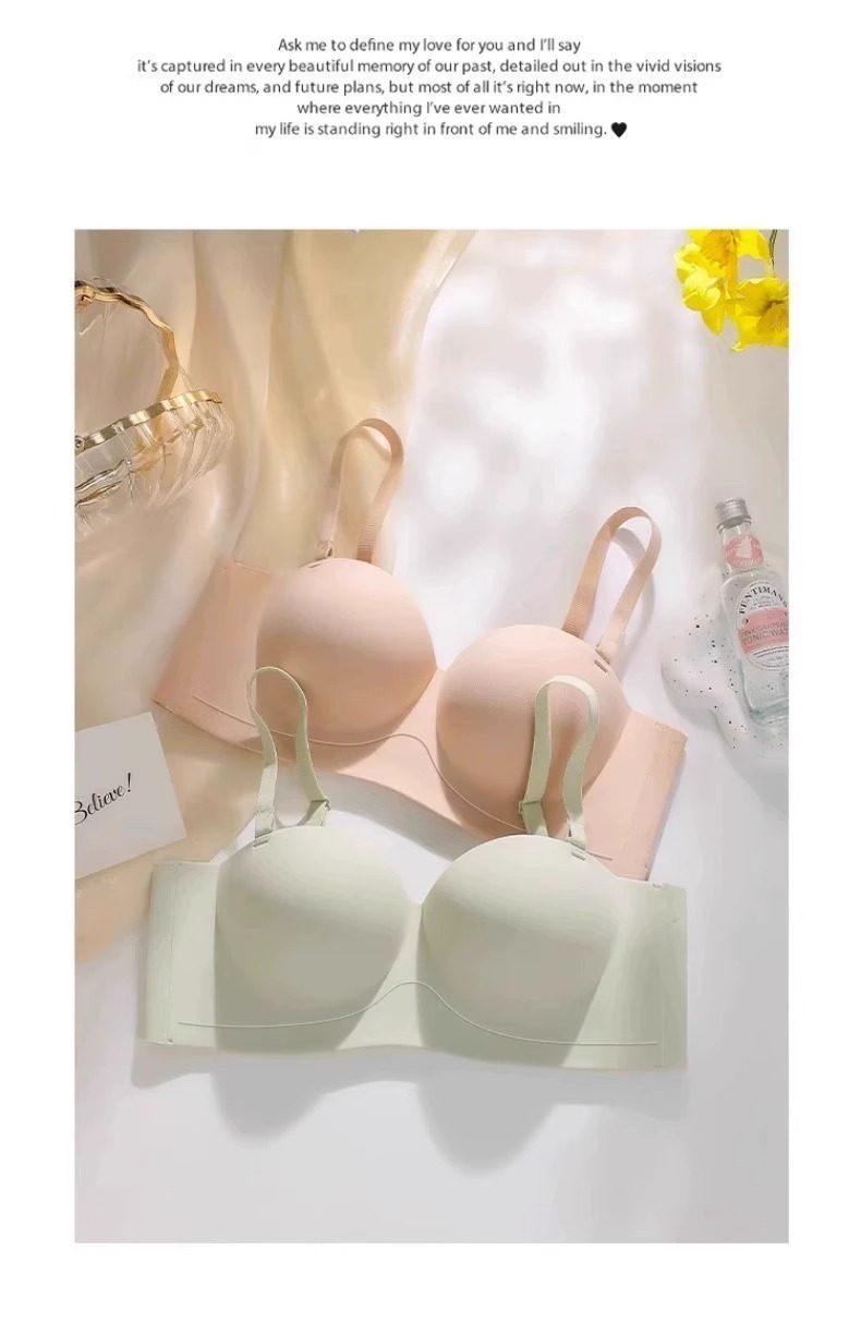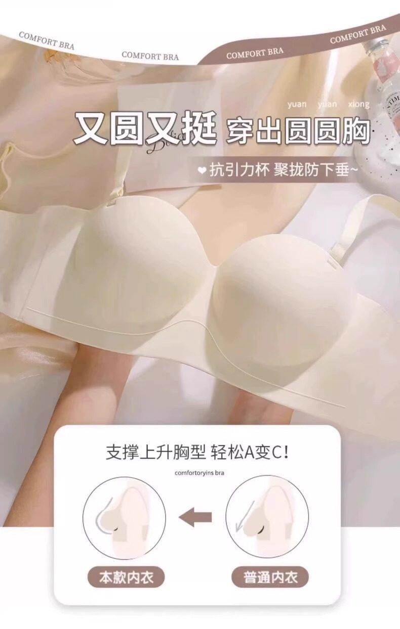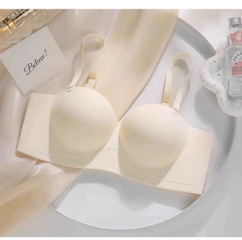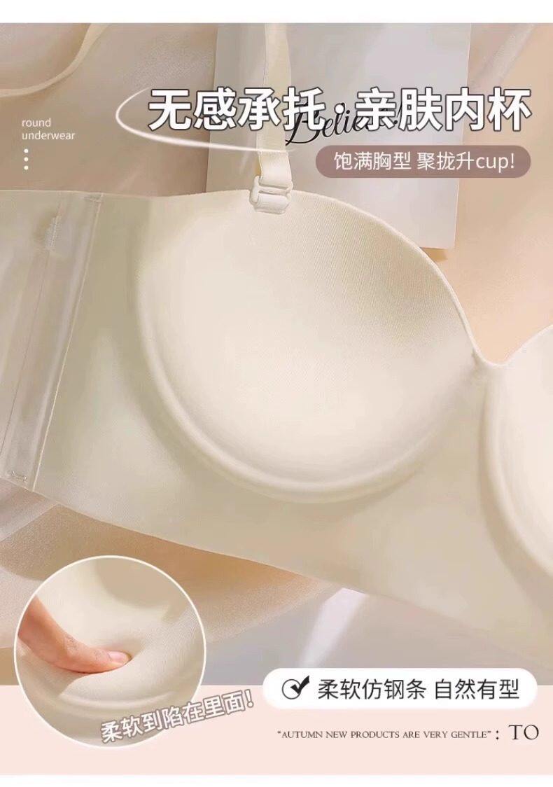 Round Cup Bra for Women, Push-Up for Small Breasts, Cartoon Style, Seamless Half-Cup, Outward Expansion Type, Makes Breasts Look Bigger, Strapless, Non-Slip Bra