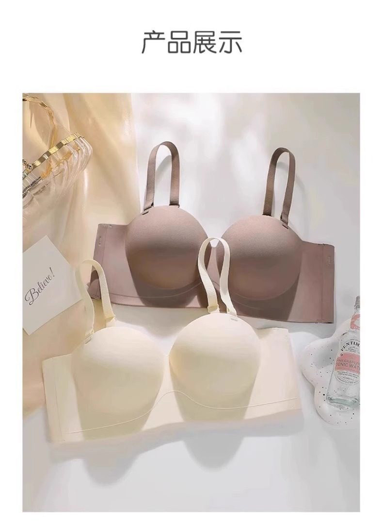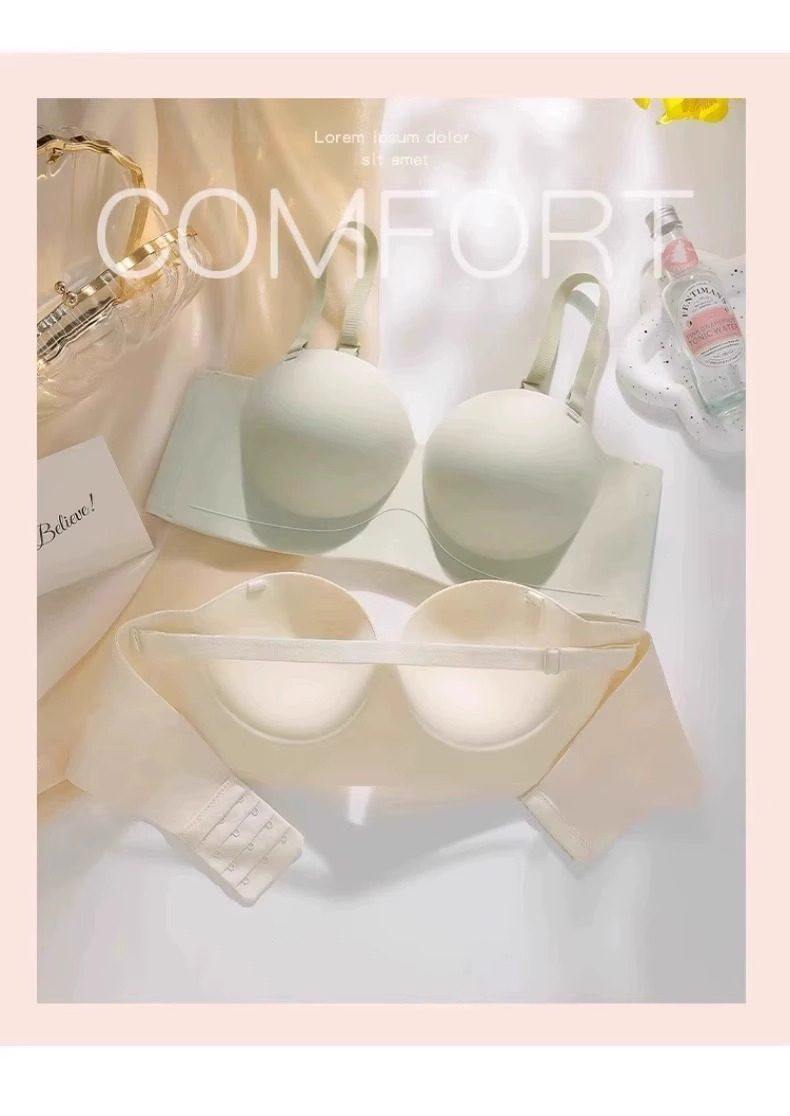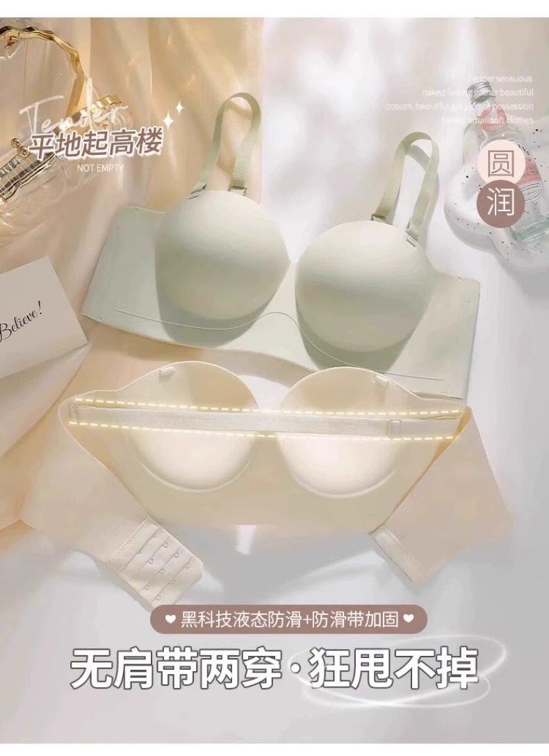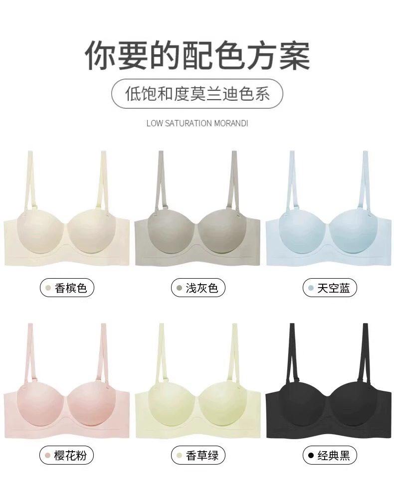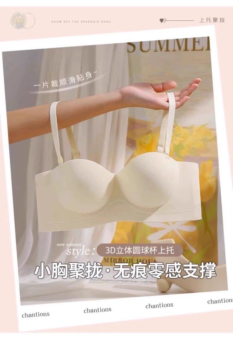 Round Cup Bra for Women, Push-Up for Small Breasts, Cartoon Style, Seamless Half-Cup, Outward Expansion Type, Makes Breasts Look Bigger, Strapless, Non-Slip Bra