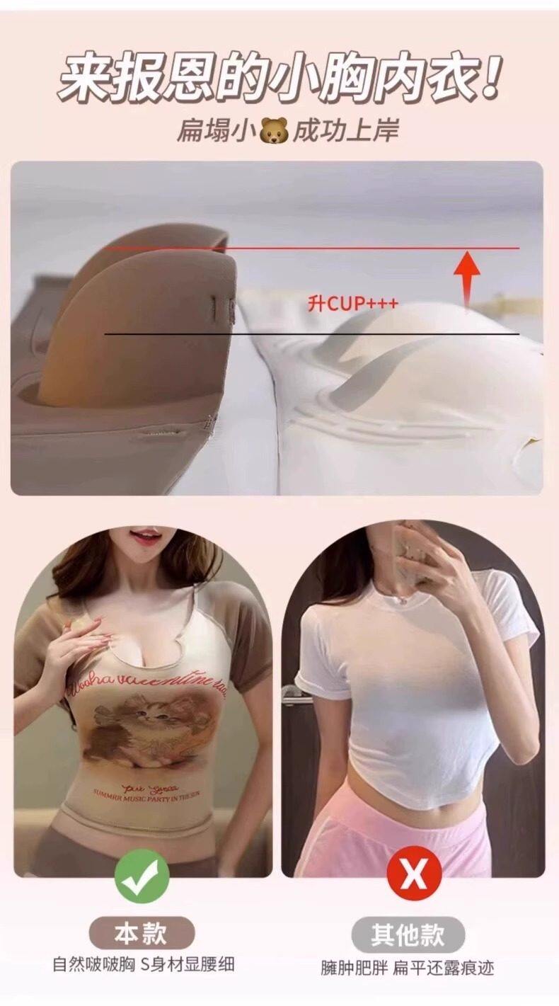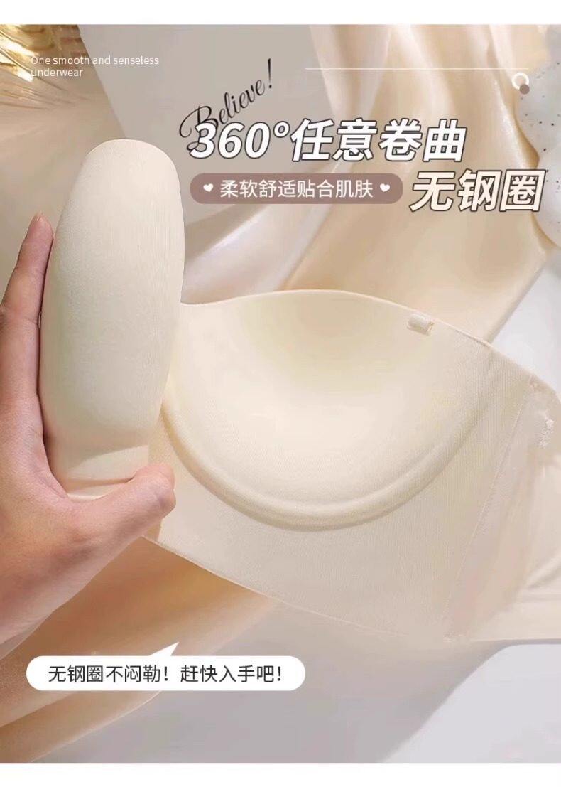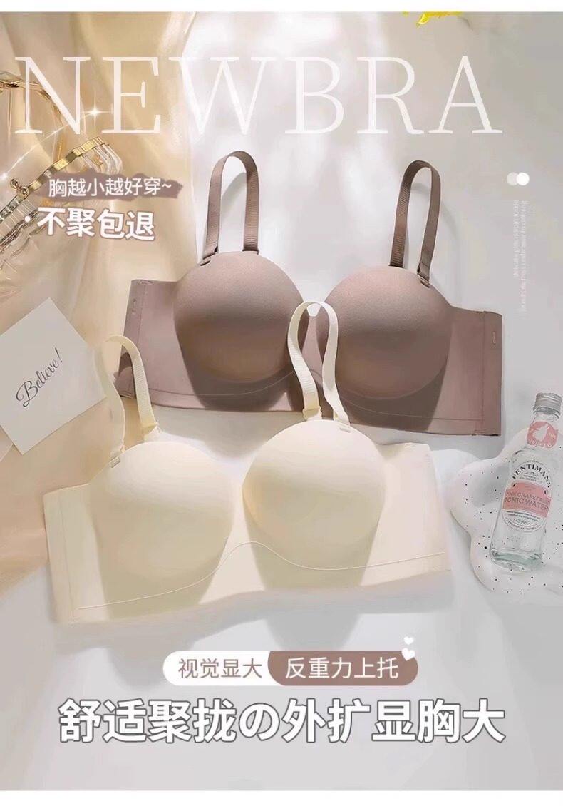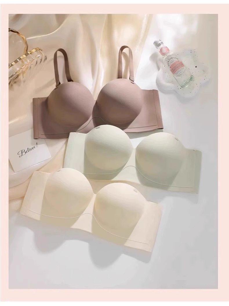 Round Cup Bra for Women, Push-Up for Small Breasts, Cartoon Style, Seamless Half-Cup, Outward Expansion Type, Makes Breasts Look Bigger, Strapless, Non-Slip Bra