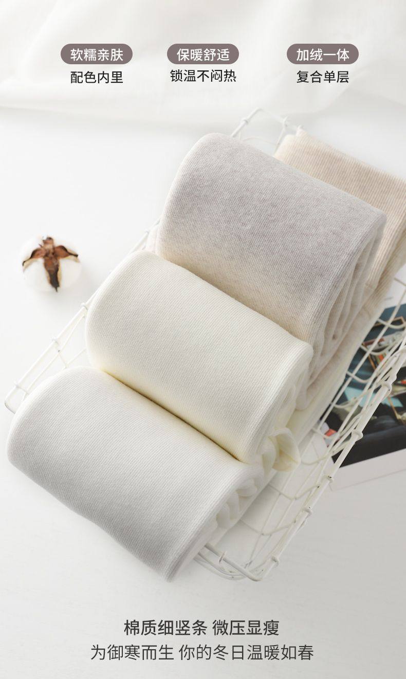 500g Women's Leggings for Outerwear, Cotton Pants, Tight-Fitting, Extra Thick, Off-White, Warm, Footed Tights for Autumn and Winter