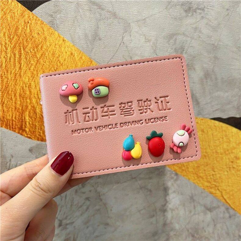 Cute Driver's License Protective Cover for Women, Motor Vehicle Document Leather Case, Trendy and Creative Two-In-One Driver's License and Vehicle Registration Cover