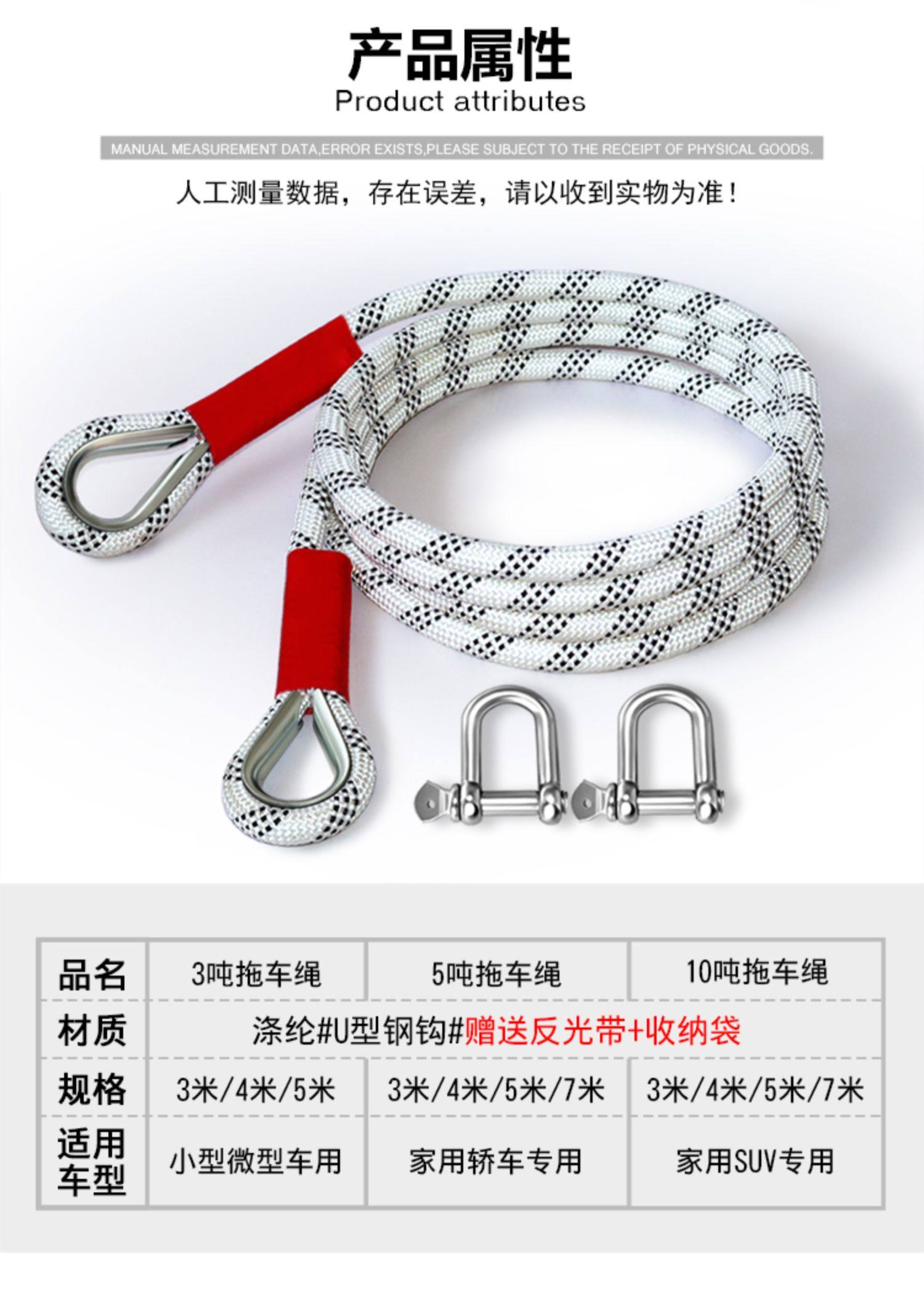| Color Classification | 3.3m Tons [Small U-Hook + Reflective Tape + Storage Bag] - Specifically for Small and Micro Cars,4.3m Tons [Small U-Hook + Reflective Tape + Storage Bag] - Specifically for Small and Micro Cars,5.3m Tons [Small U-Hook + Reflective Tape + Storage Bag] - Specifically for Small and Micro Cars,3.5m Tons [Small U-Hook + Reflective Tape + Storage Bag] - Specifically for Sedans,4.5m Tons [Small U-Hook + Reflective Tape + Storage Bag] - Specifically for Sedans,5.5m Tons [Small U-Hook + Reflective Tape + Storage Bag] - Specifically for Sedans,7.5m Tons [Small U-Hook + Reflective Tape + Storage Bag] - Specifically for Sedans,3.1m Tons [Medium-Sized American Steel Hook + Reflective Tape + Storage Bag] - Specifically for Home Use Suvs,4.1m Tons [Medium-Sized American Steel Hook + Reflective Tape + Storage Bag] - Specifically for Home Use Suvs,5.1m Tons [Medium-Sized American Steel Hook + Reflective Tape + Storage Bag] - Specifically for Home Use Suvs,7.1m Tons [Medium-Sized American Steel Hook + Reflective Tape + Storage Bag] - Specifically for Home Use Suvs,4.18m Tons [Large American Steel Hook + Reflective Tape + Storage Bag] Universal for All Vehicle Series,5.18m Tons [Large American Steel Hook + Reflective Tape + Storage Bag] Universal for All Vehicle Series,7.18m Tons [Large American Steel Hook + Reflective Tape + Storage Bag] Universal for All Vehicle Series,9.18m Tons [Large American Steel Hook + Reflective Tape + Storage Bag] Universal for All Vehicle Series,5.25m Tons [Large American-Style Steel Hook + Reflective Tape + Storage Bag] - Specifically for Medium Trucks,7.25m Tons [Large American-Style Steel Hook + Reflective Tape + Storage Bag] - Specifically for Medium Trucks,9.25m Tons [Large American-Style Steel Hook + Reflective Tape + Storage Bag] - Specifically for Medium Trucks,5.3m Tons [Large American Steel Hook + Reflective Tape + Storage Bag] for Large Trucks,7.3m Tons [Large American Steel Hook + Reflective Tape + Storage Bag] for Large Trucks,9.3m Tons [Large American Steel Hook + Reflective Tape + Storage Bag] for Large Trucks |
