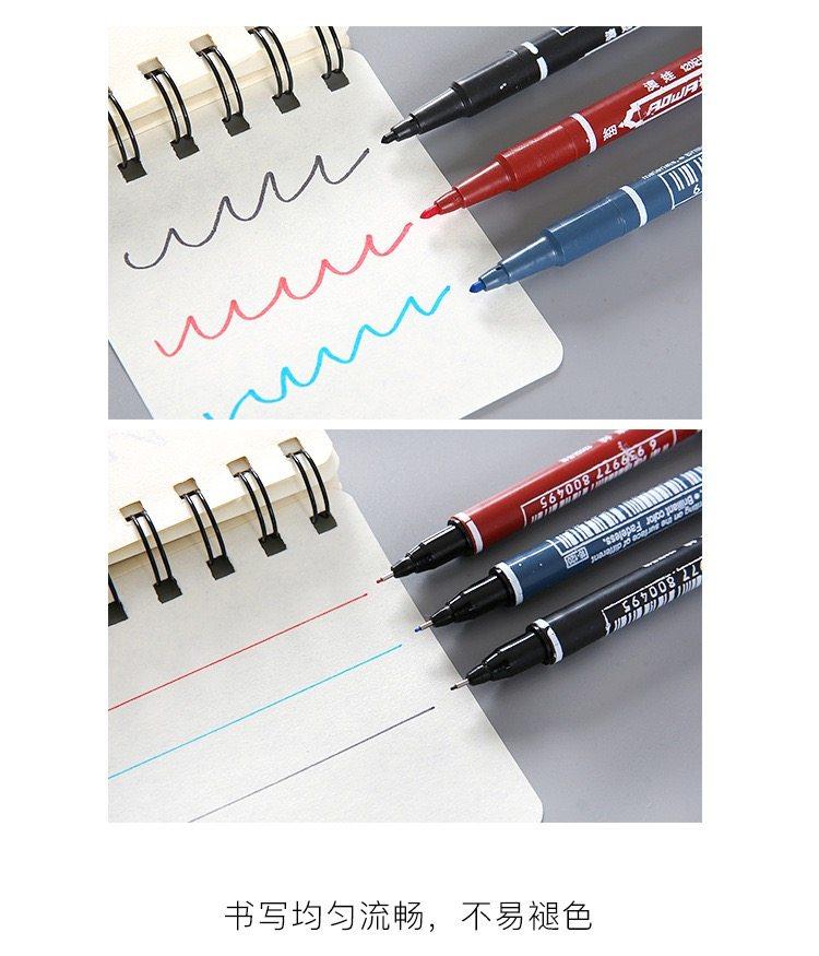Double-Ended Marker Pen, Waterproof, Oil-Proof, Non-Fading, Outline Pen, Art-Specific, Black Pen for Primary School Students, Oil-Based Pen, Signature Pen