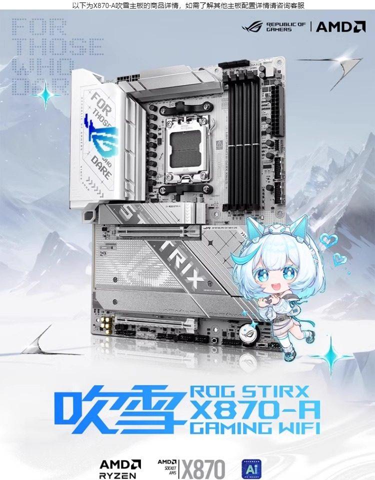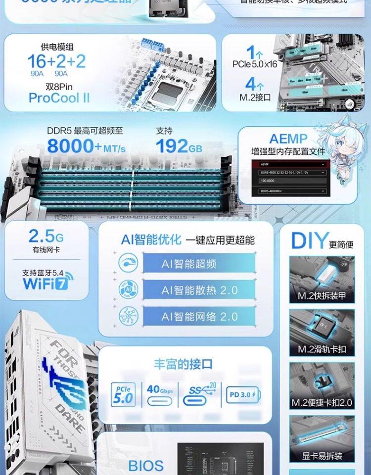 | Color Classification | [Faith Overclocking] Rog Crosshair X870E Apex (Only Supports Ddr5 Memory),[Rog Pure Blood] Rog Crosshair X870E Hero (Only Supports Ddr5 Memory),[Game Recommendation] Rog Strix X870E E Gaming Wifi (Only Supports Ddr5 Memory),[Good-Looking E-Sports] Rog Strix X870 F Gaming Wifi (Only Supports Ddr5 Memory),[Blizzard Ii] Rog Strix X870 a Gaming Wifi S (Only Supports Ddr5 Memory),[Black Blizzard] Rog Strix X870E H Gaming Wifi7 (Only Supports Ddr5 Memory),[Ro Ji] Rog Strix X870 H Gaming Wifi7 S Ro Ji (Only Supports Ddr5 Memory),[E-Sports Agent] Tuf Gaming X870E Plus Wifi7 (Only Supports Ddr5 Memory),[Heavy Gunner] Tuf Gaming X870 Plus Wifi (Only Supports Ddr5 Memory),[Master Wifi] Prime X870 P Wifi (Only Supports Ddr5 Memory),[Popular Master] Prime X870 P (Only Supports Ddr5 Memory),[Oops] X870 Ayw Gaming Wifi W (Only Supports Ddr5 Memory),[Performance Pioneer] X870 Max Gaming Wifi7 (Only Supports Ddr5 Memory),[Creative Country] Proart X870E Creator Wifi (Only Supports Ddr5 Memory),[E-Sports Itx] Rog Strix X870 I Gaming Wifi (Only Supports Ddr5 Memory) |